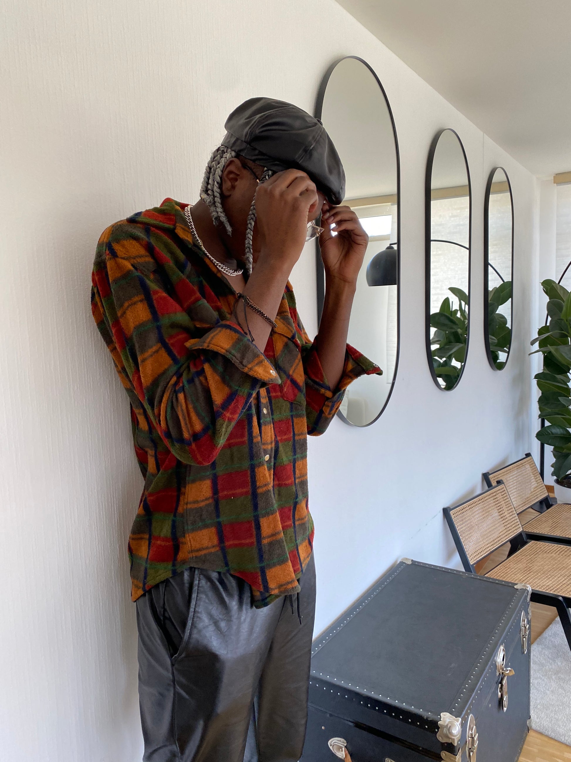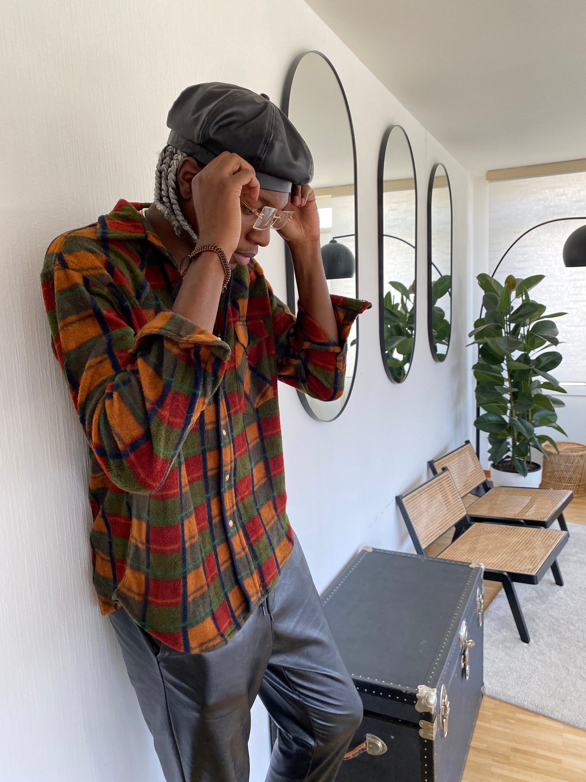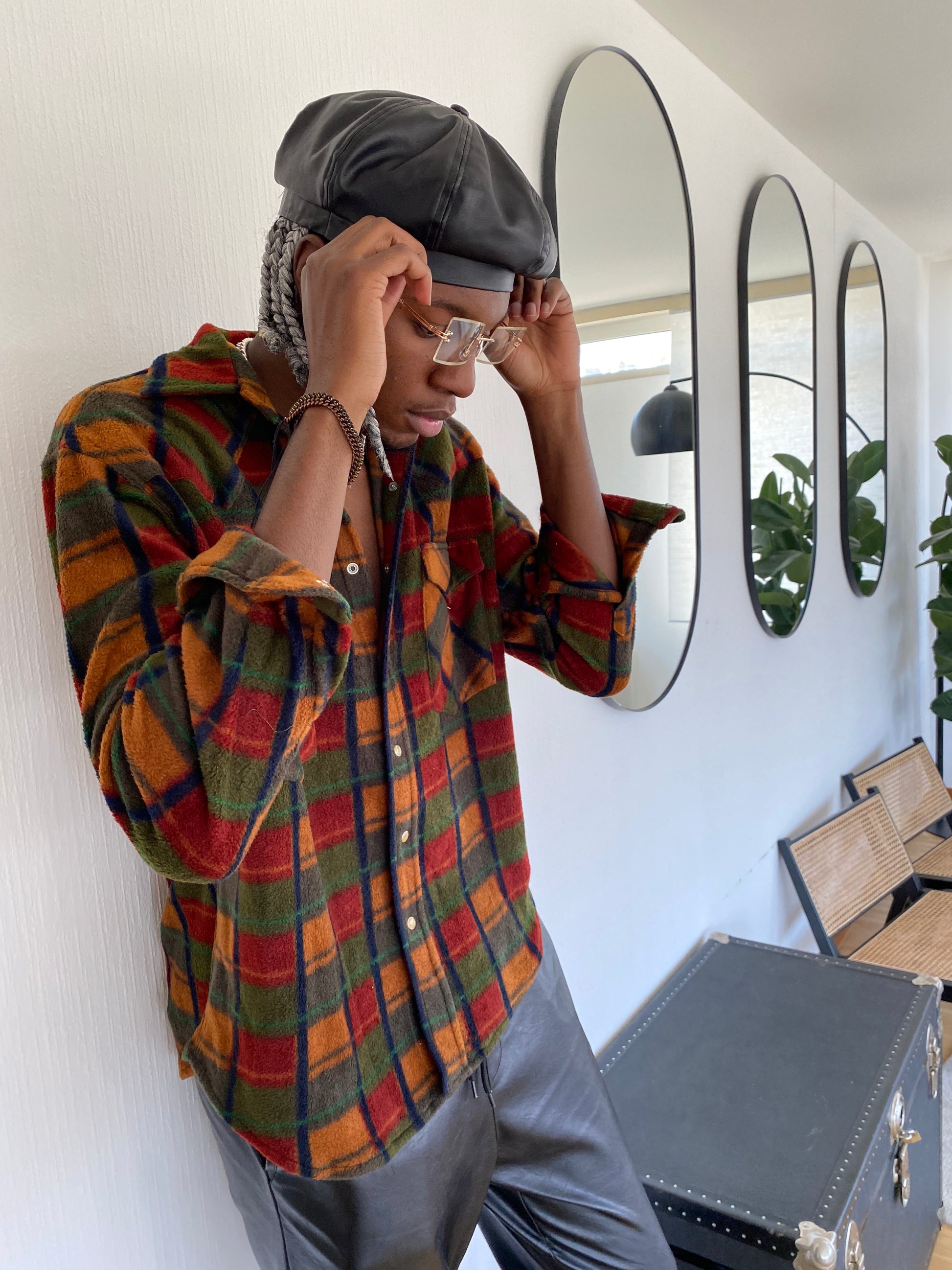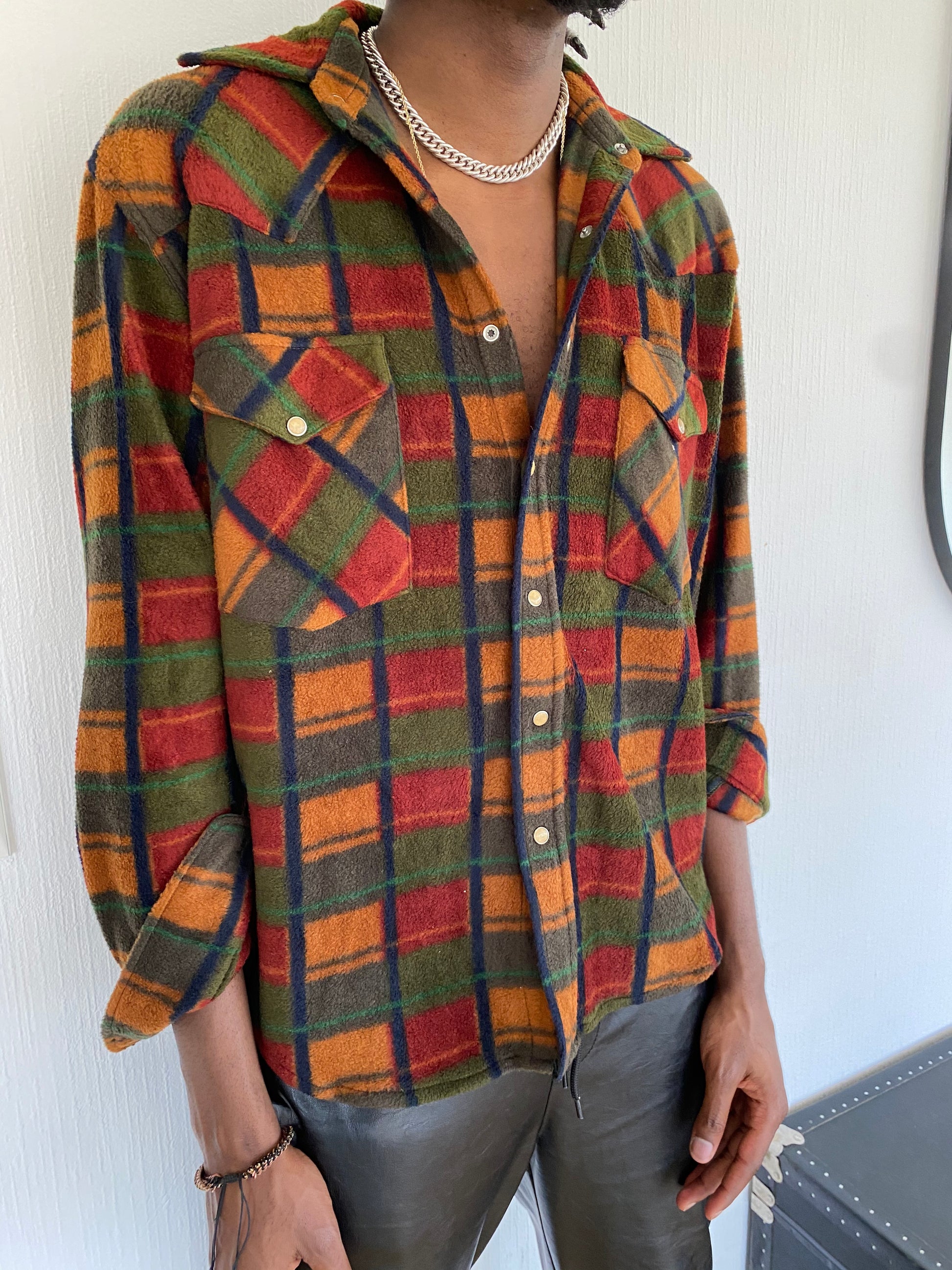 Vintage orange/khaki check shirt L