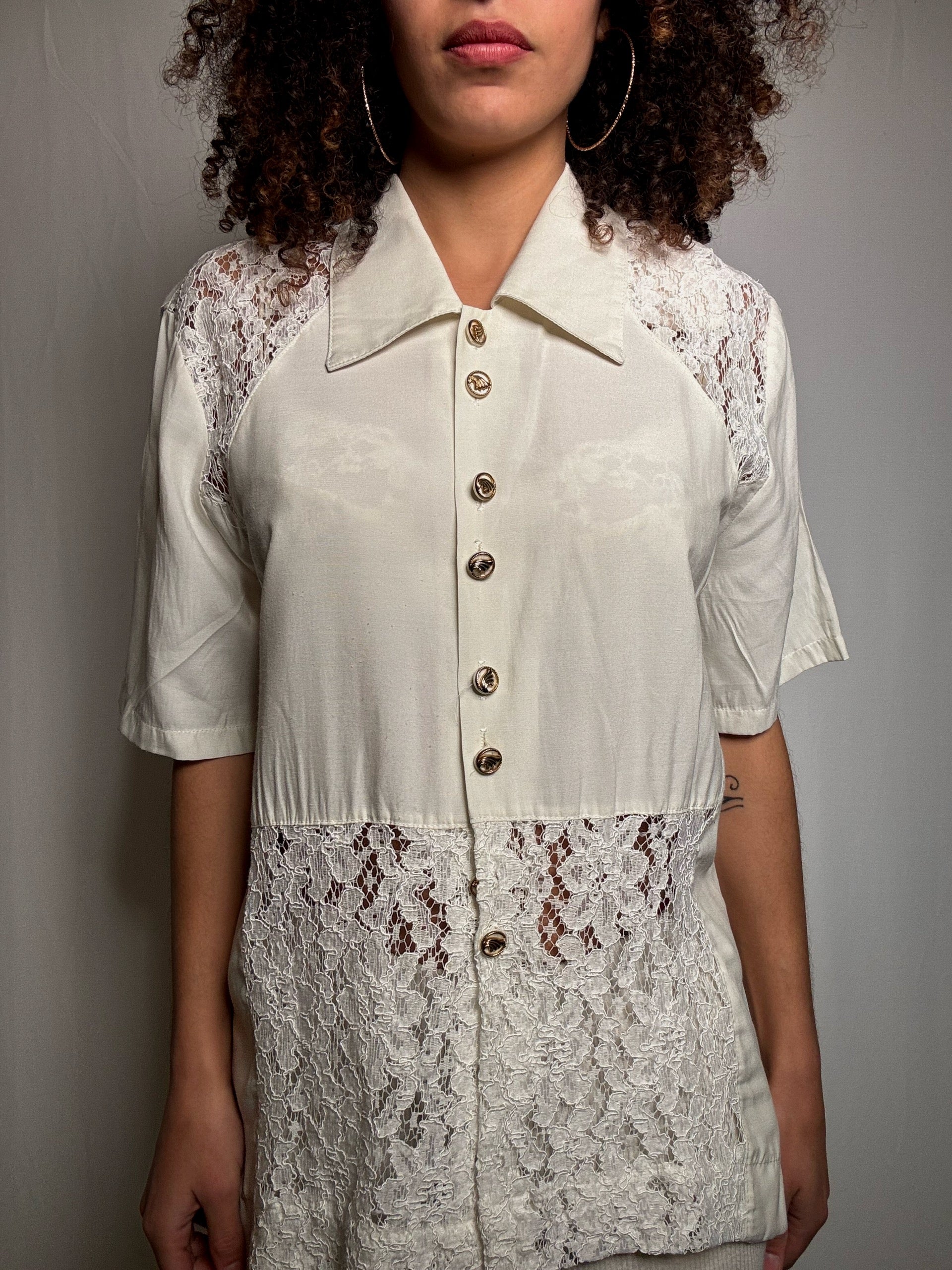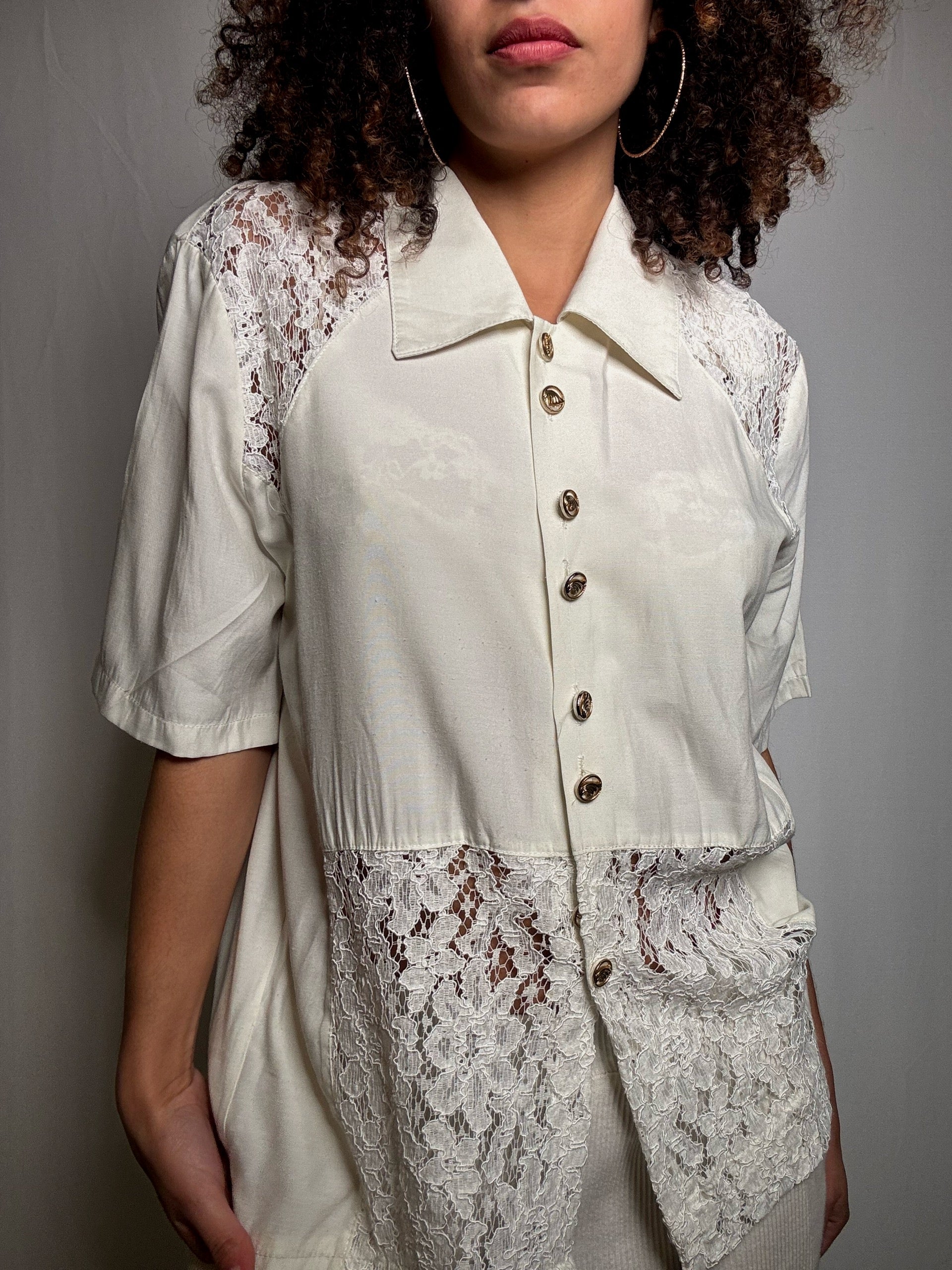 Chemisier dentelé crème TU vintage