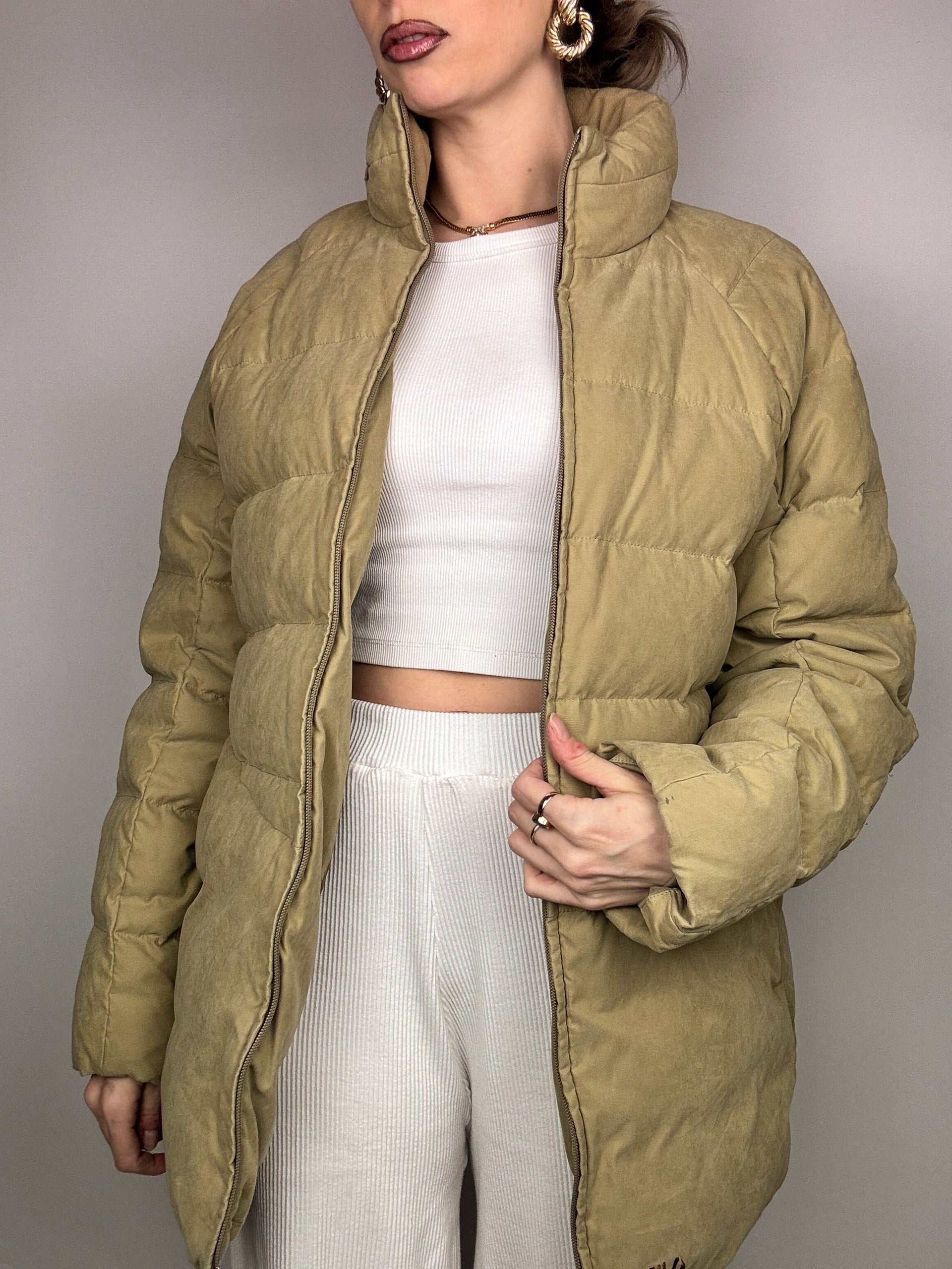With a soft velvet-style exterior, it has a fitted cut that will give you a beautiful silhouette, rather rare for a down jacket!