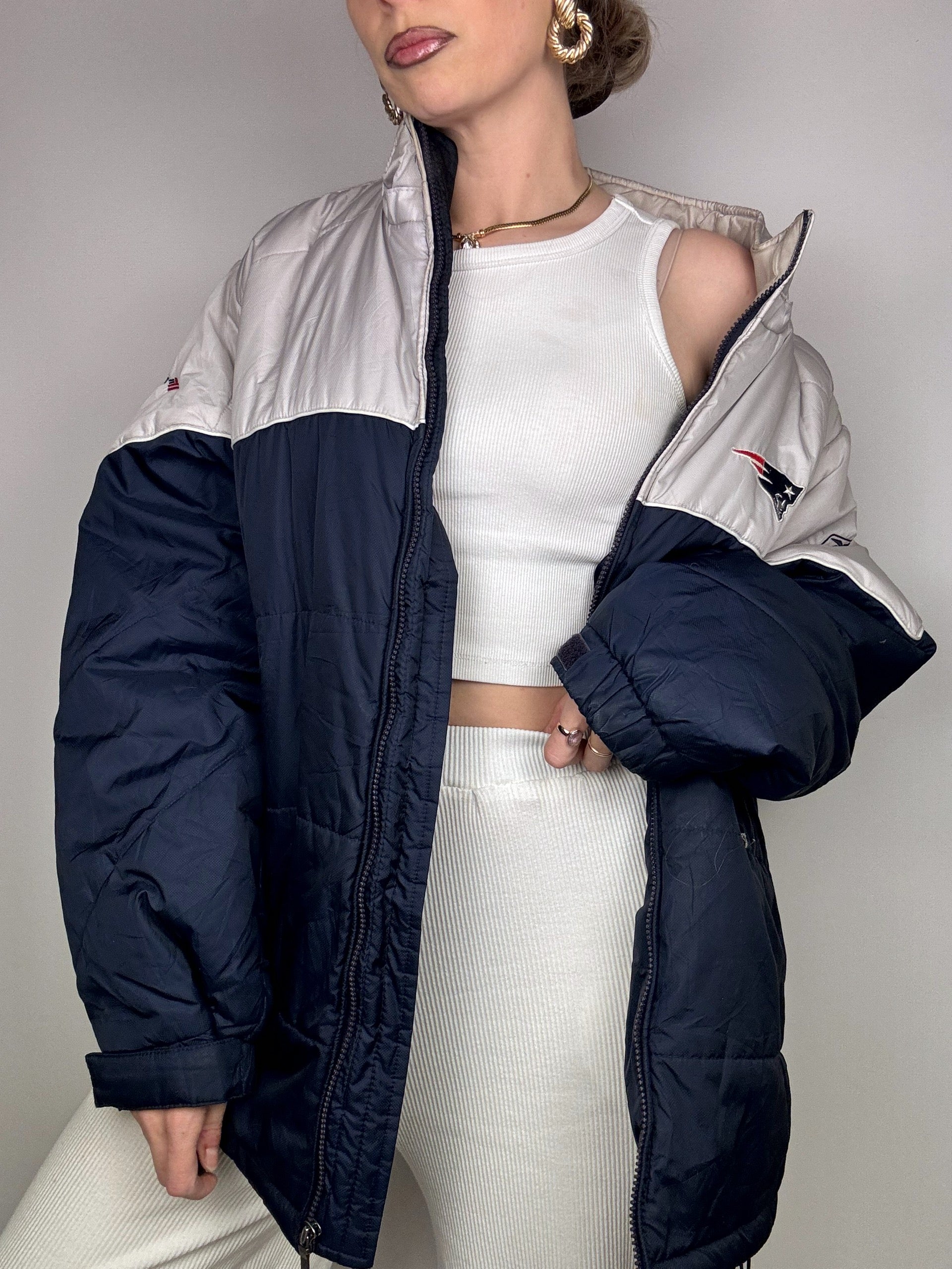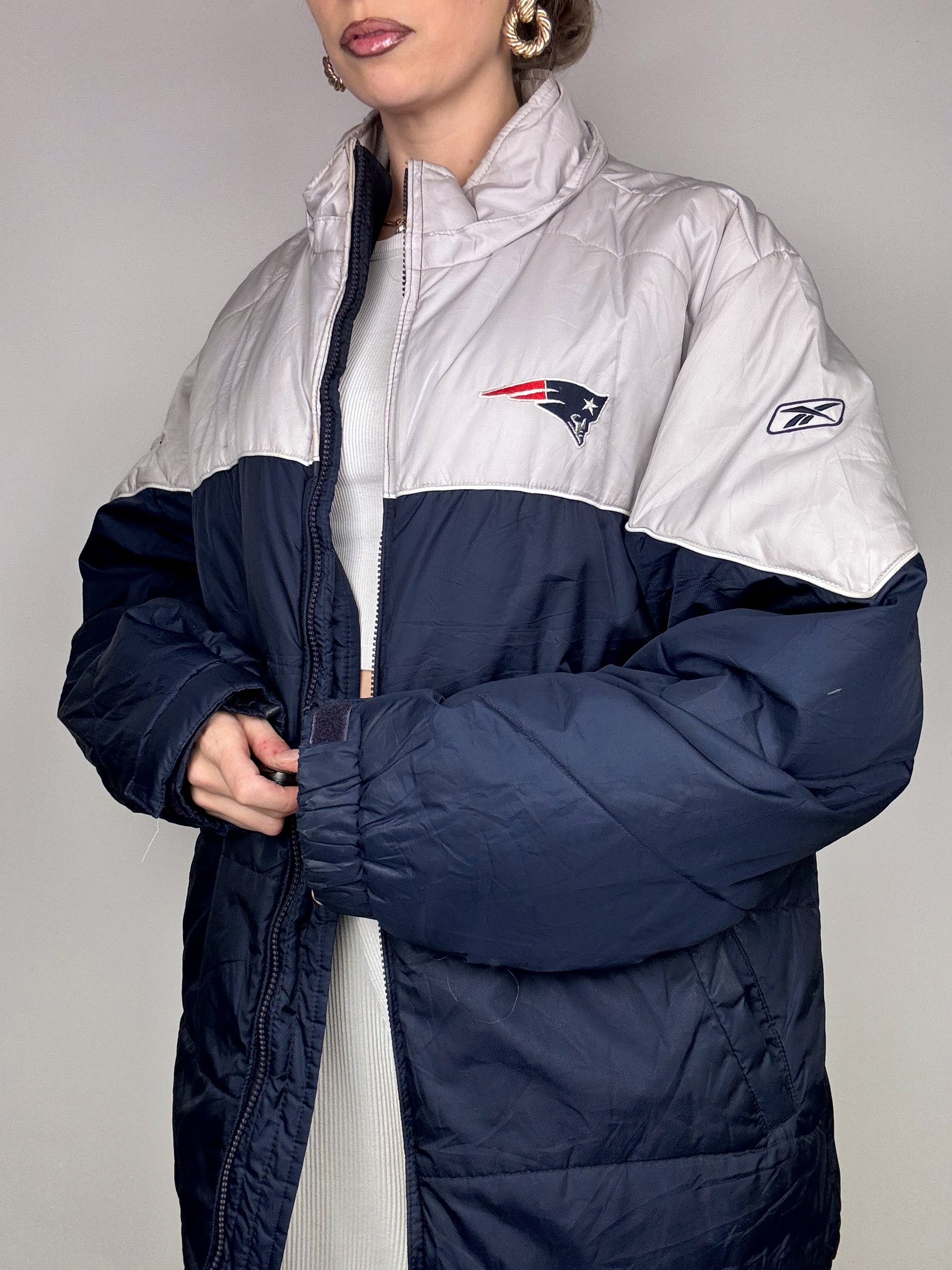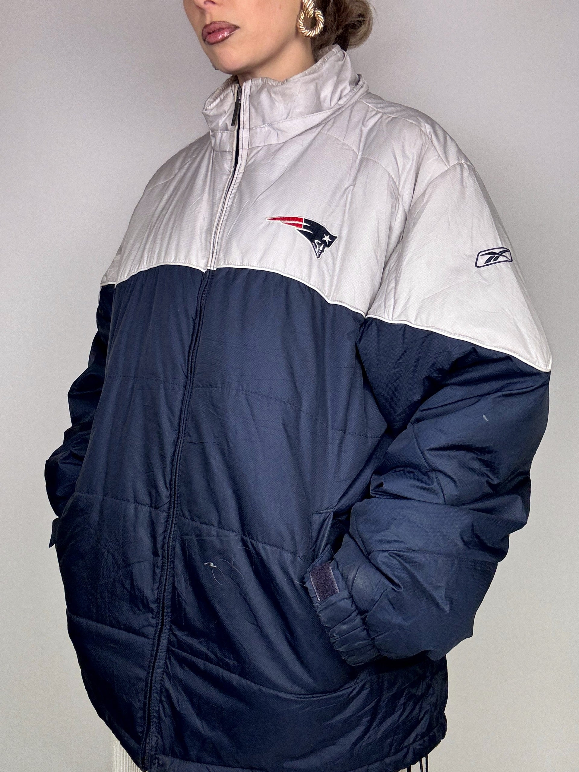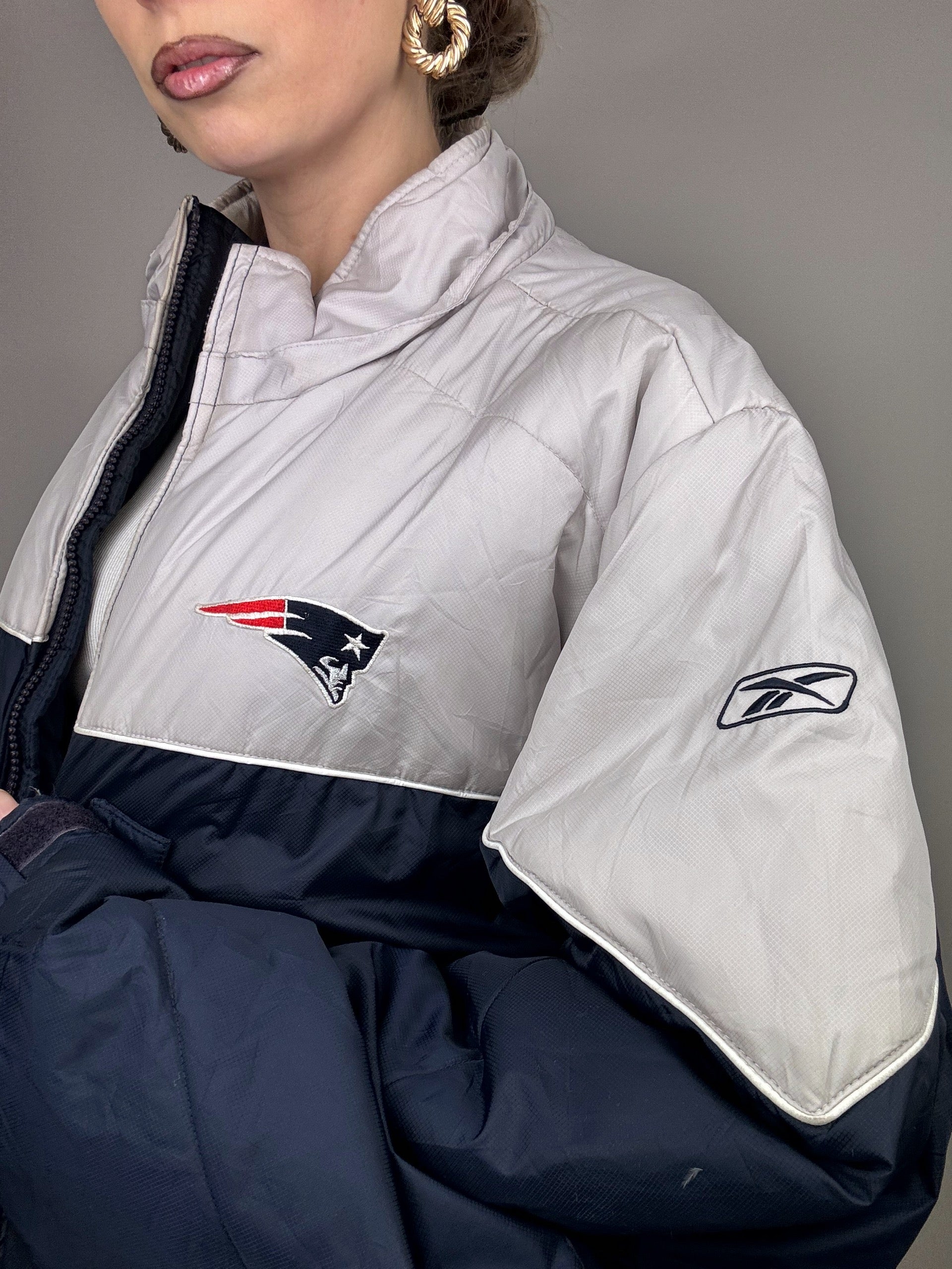 NFL + REEBOK M vintage grey and navy oversized puffy down jacket