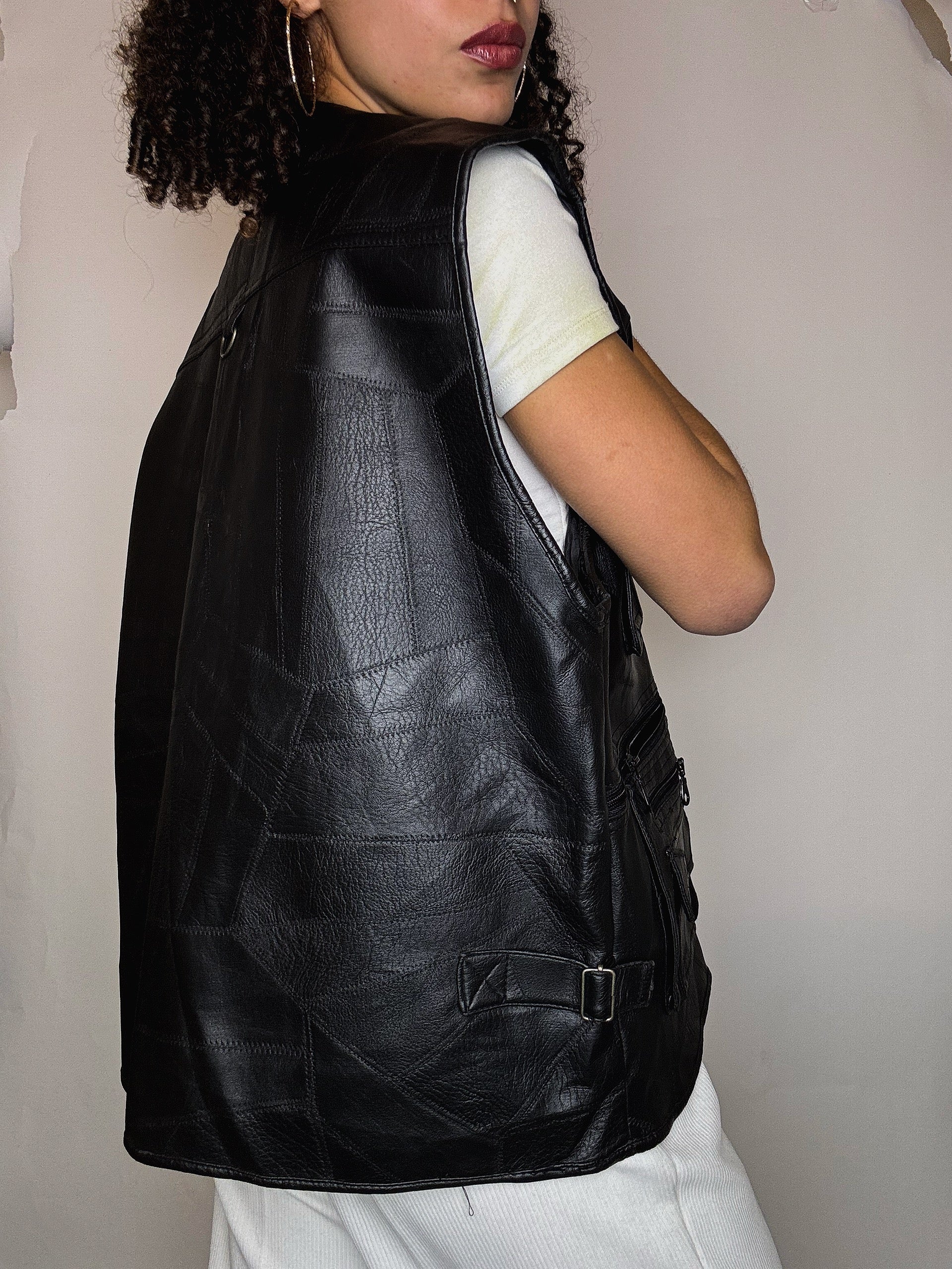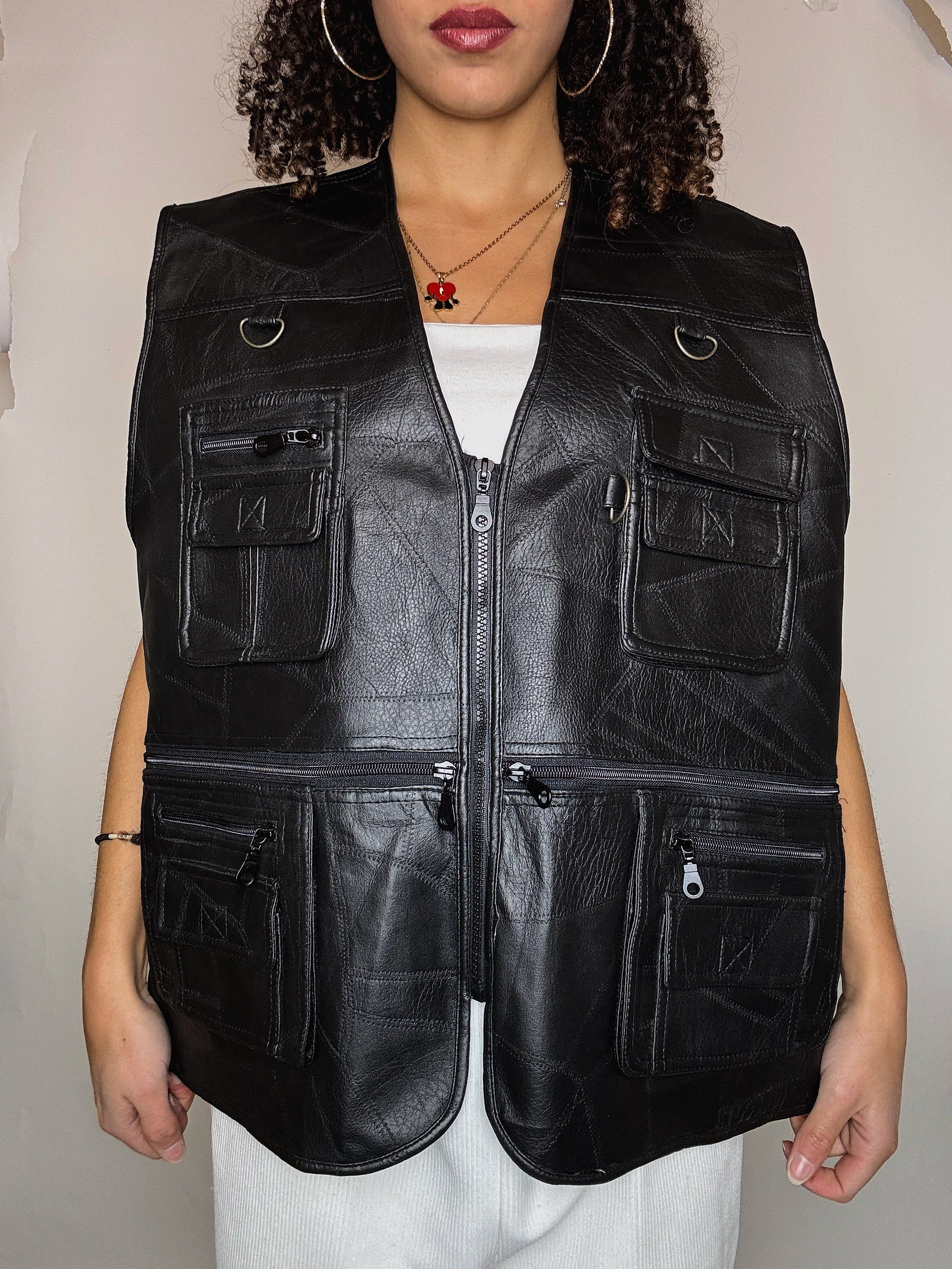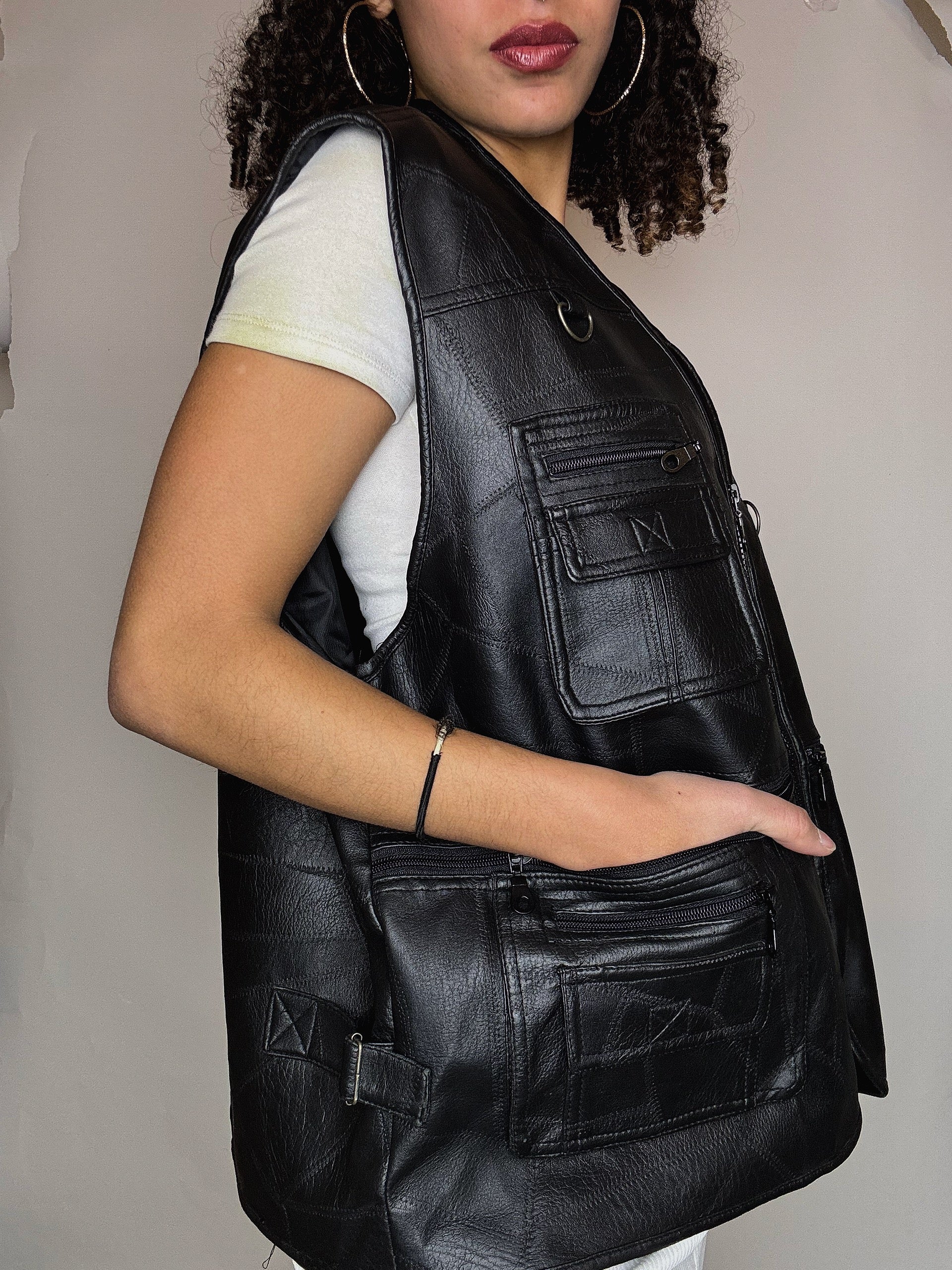 Gilet à poches en imitation cuir L/XL vintage