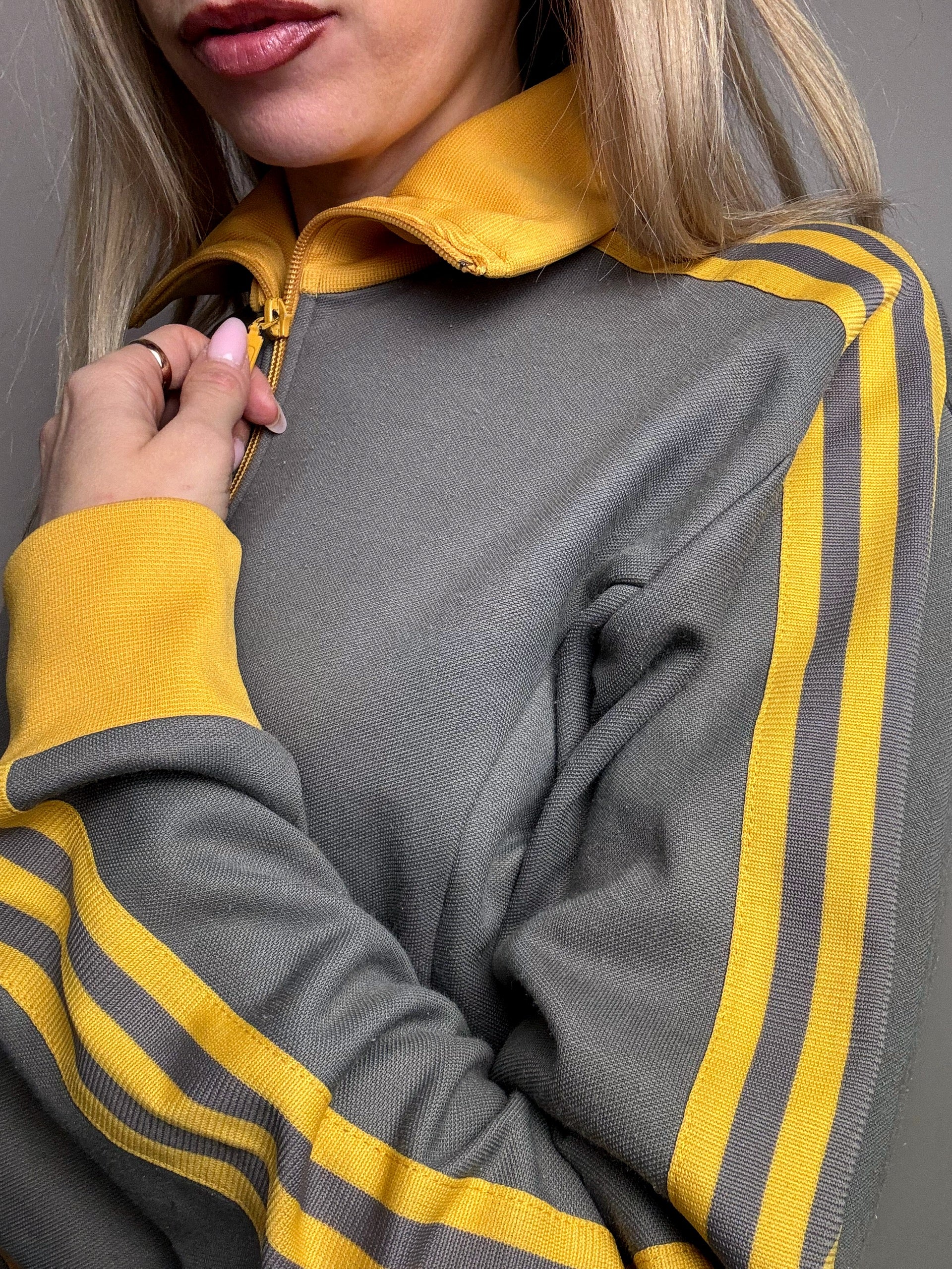 The yellow stands out really well with the gray, especially on the sleeves thanks to the recognizable ADIDAS stripes!