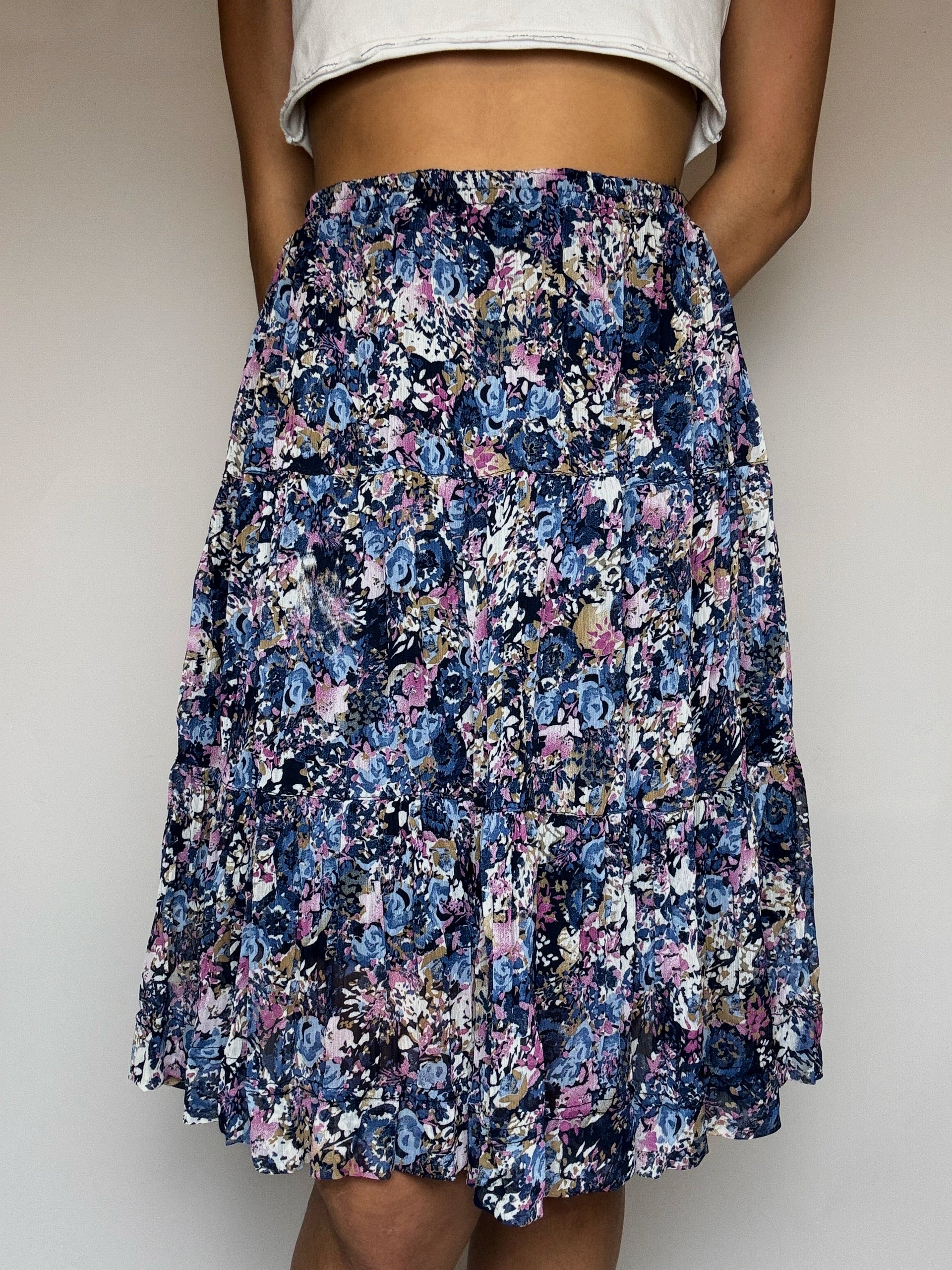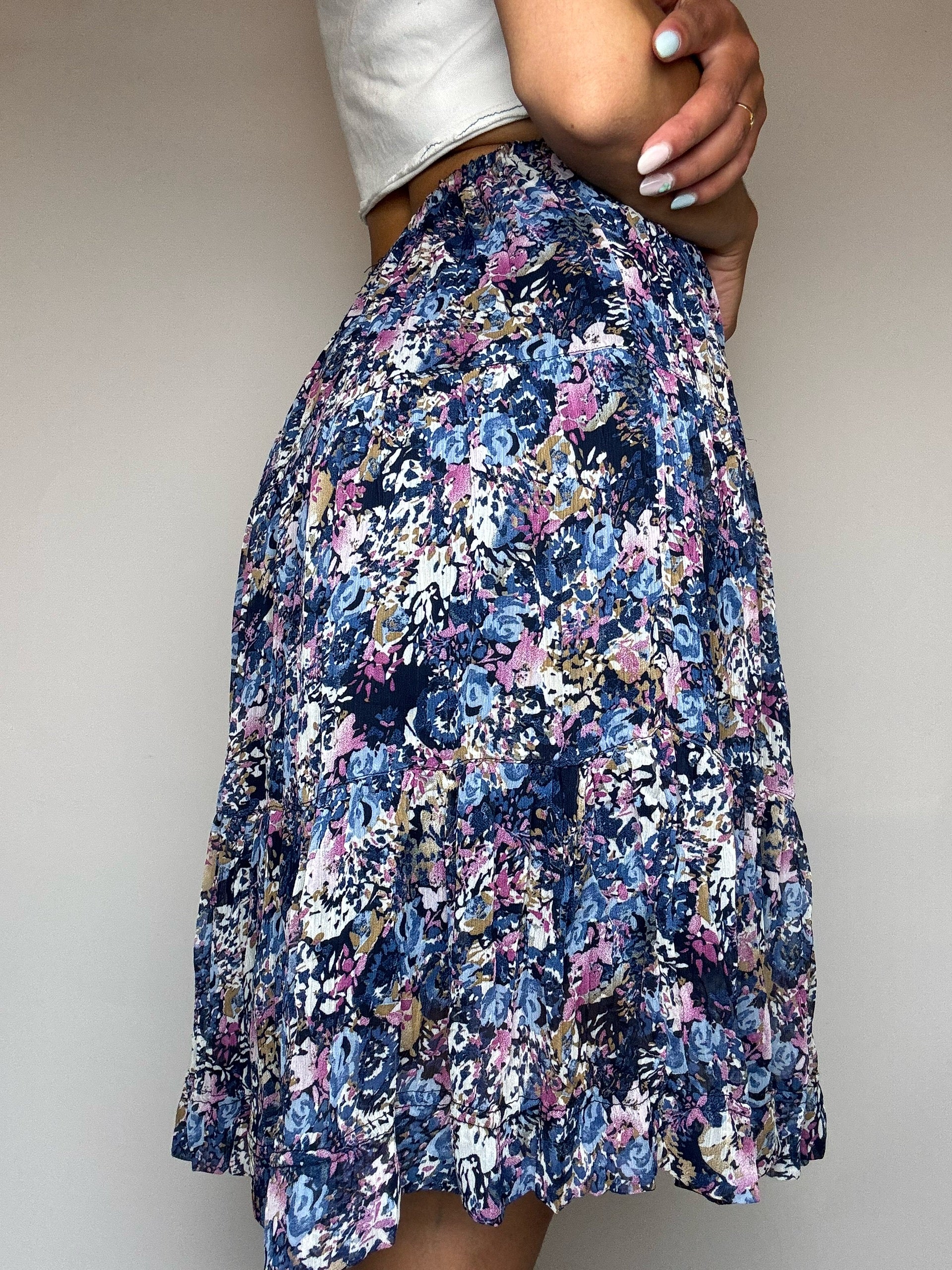 Elle a élastique et est fluide et légère, elle est super agréable à porter ! Elle a le fond marine donc sera parfaite jambes nues en été comme avec un petit collant et des bottes en mi saison !