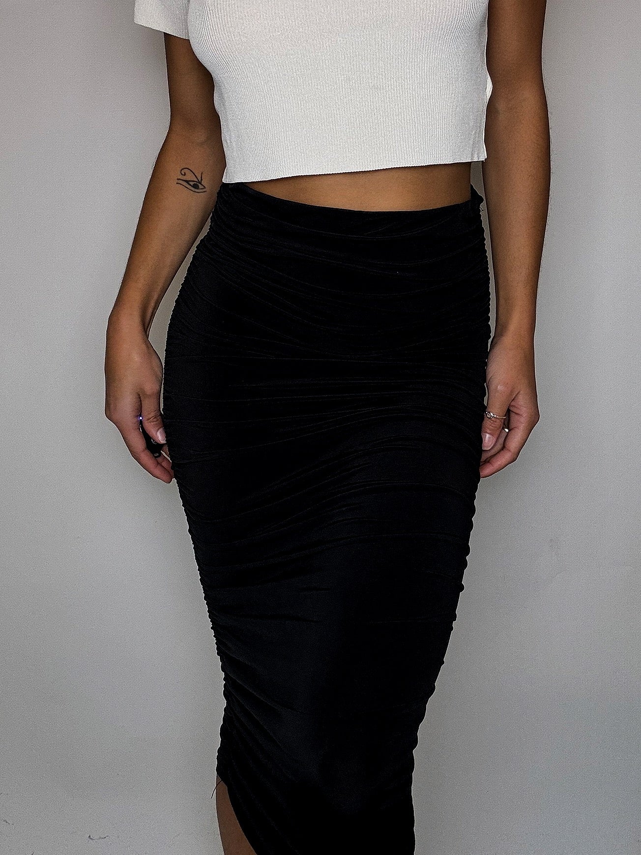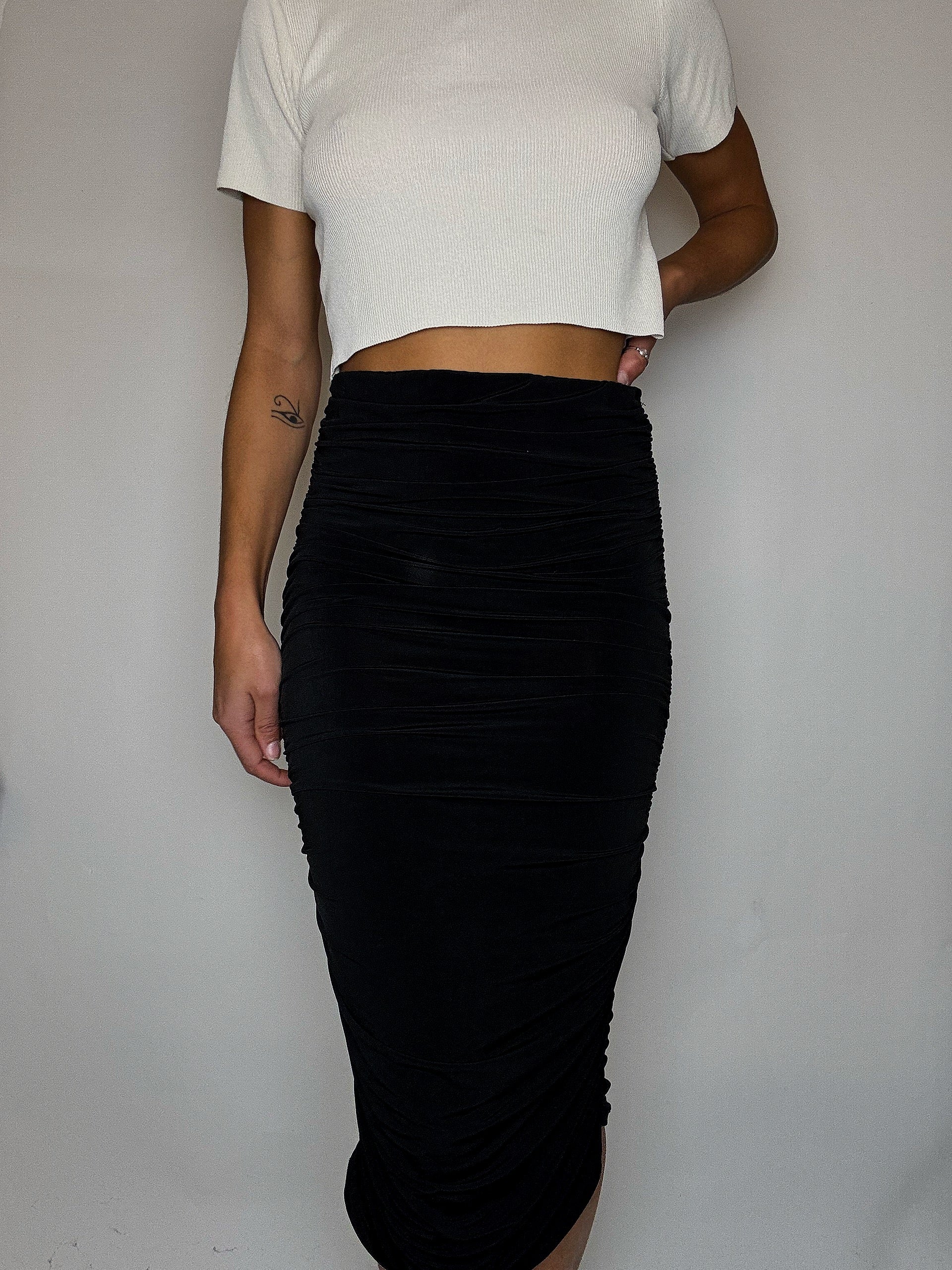 MODÈLE: La modèle mesure 1.64 et porte du généralement du S