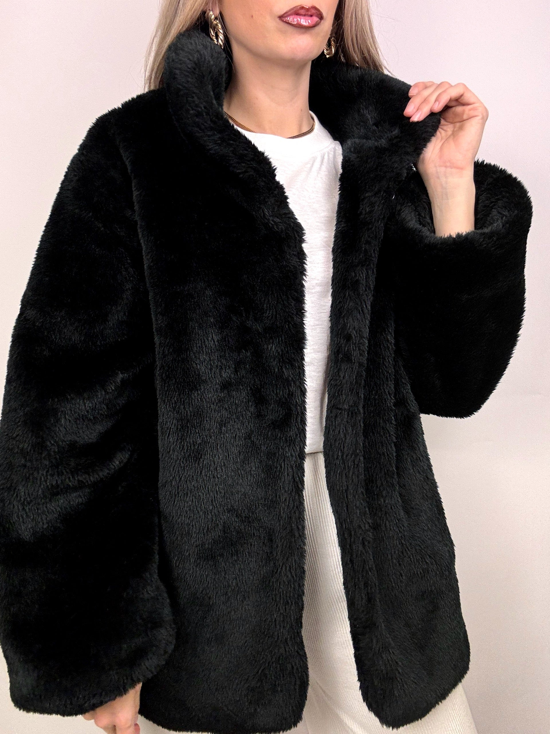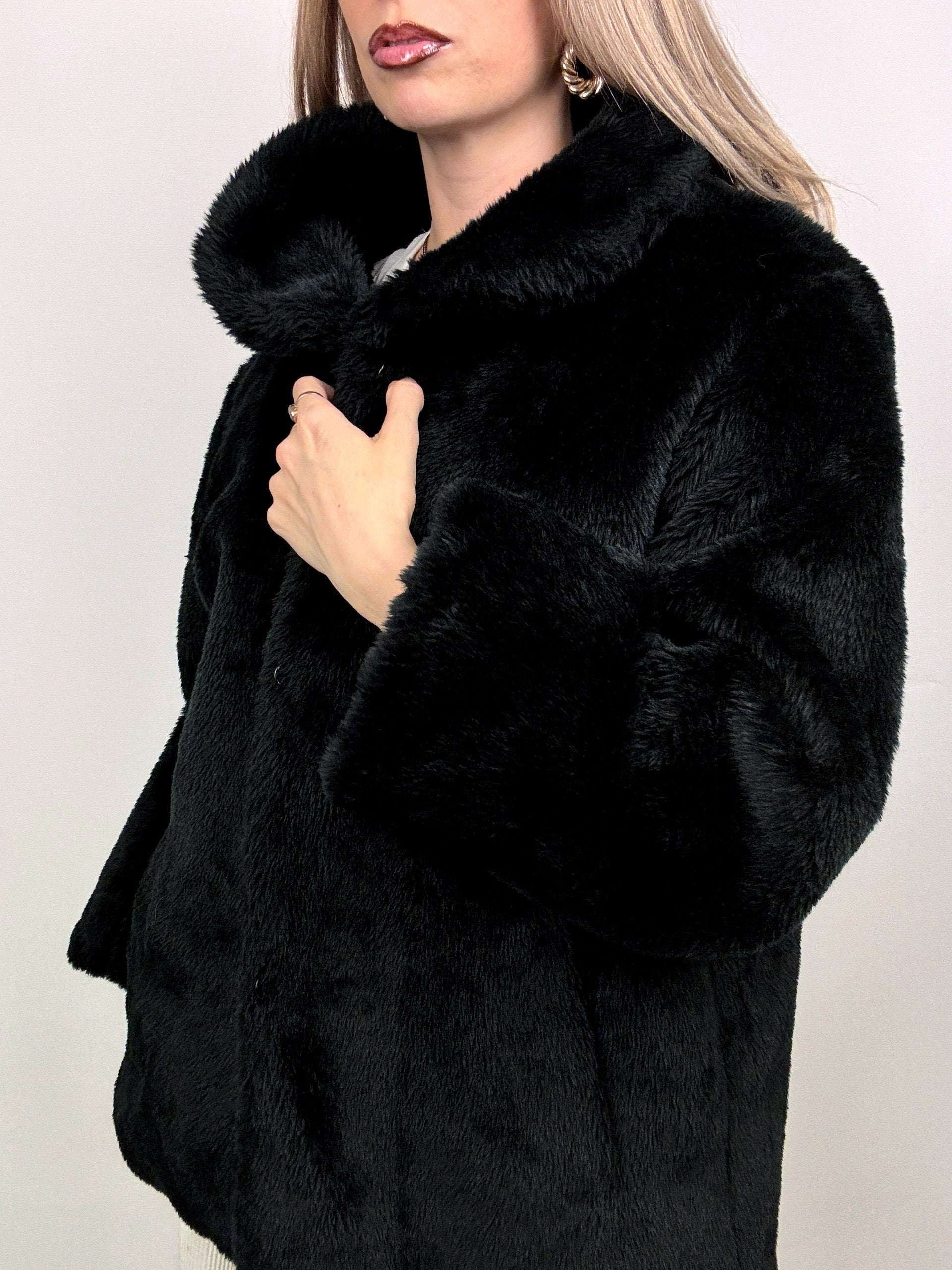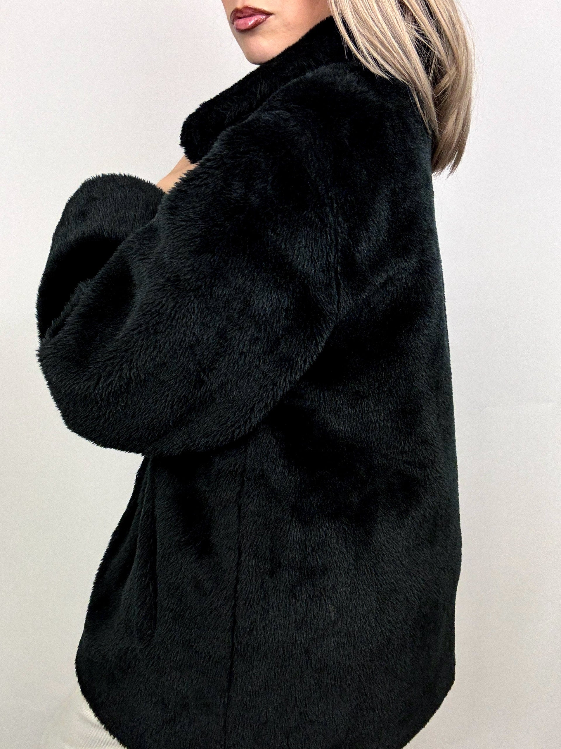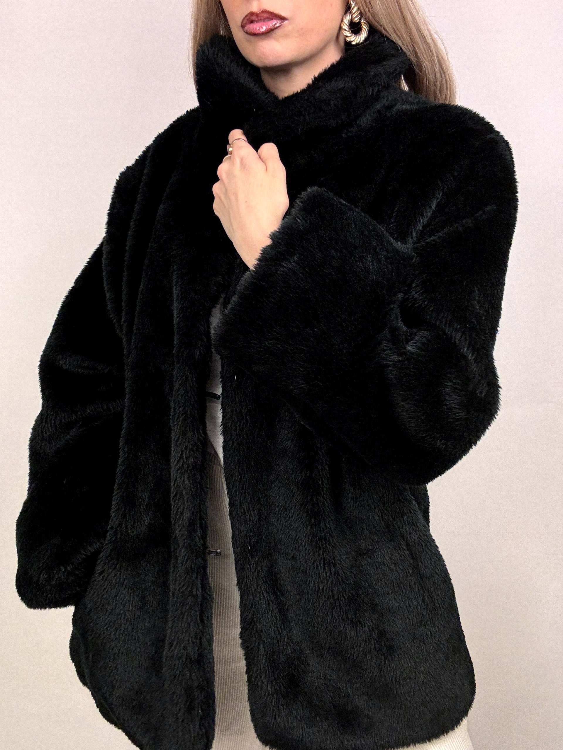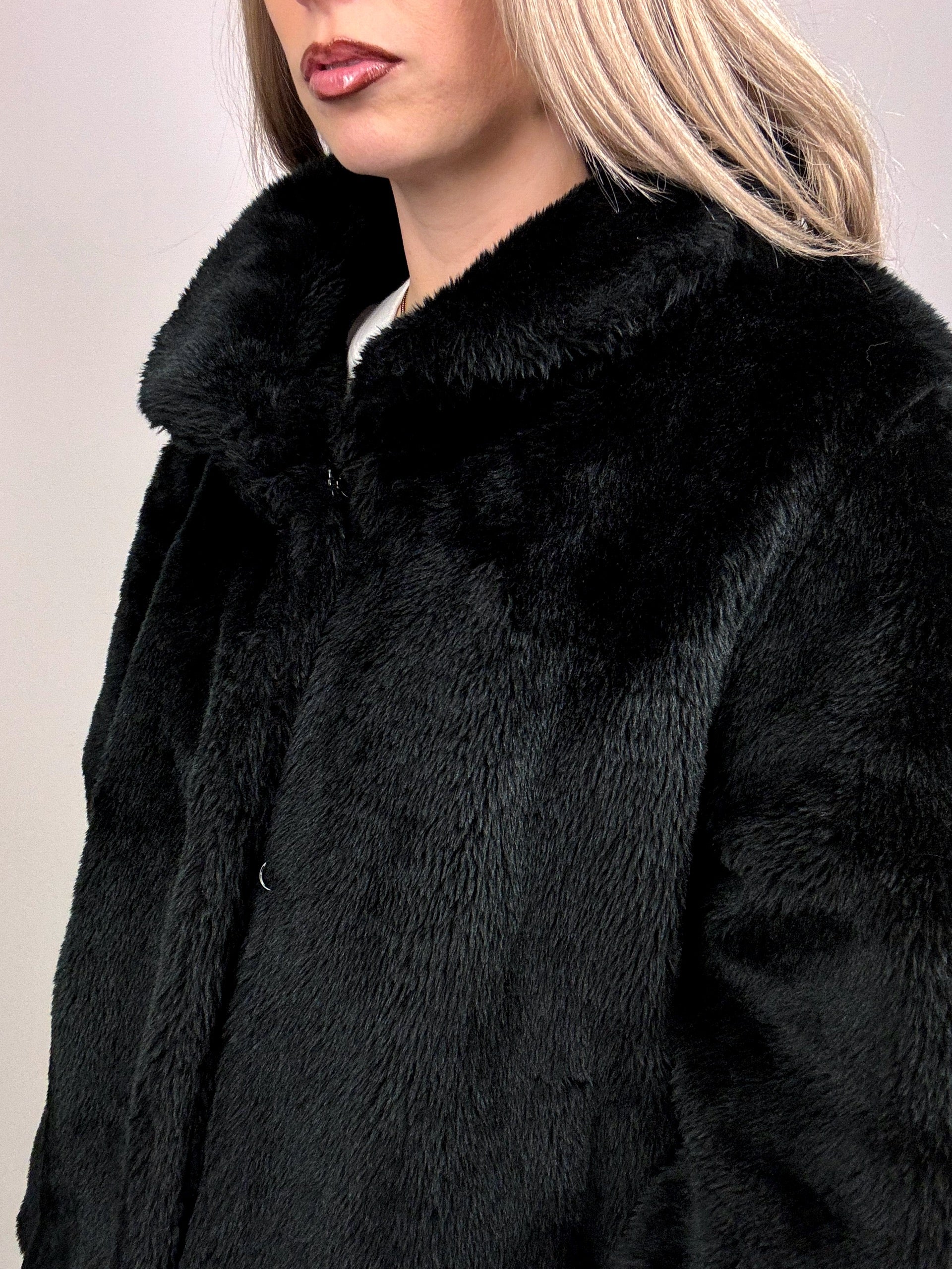 Vintage M Black Faux Fur Coat