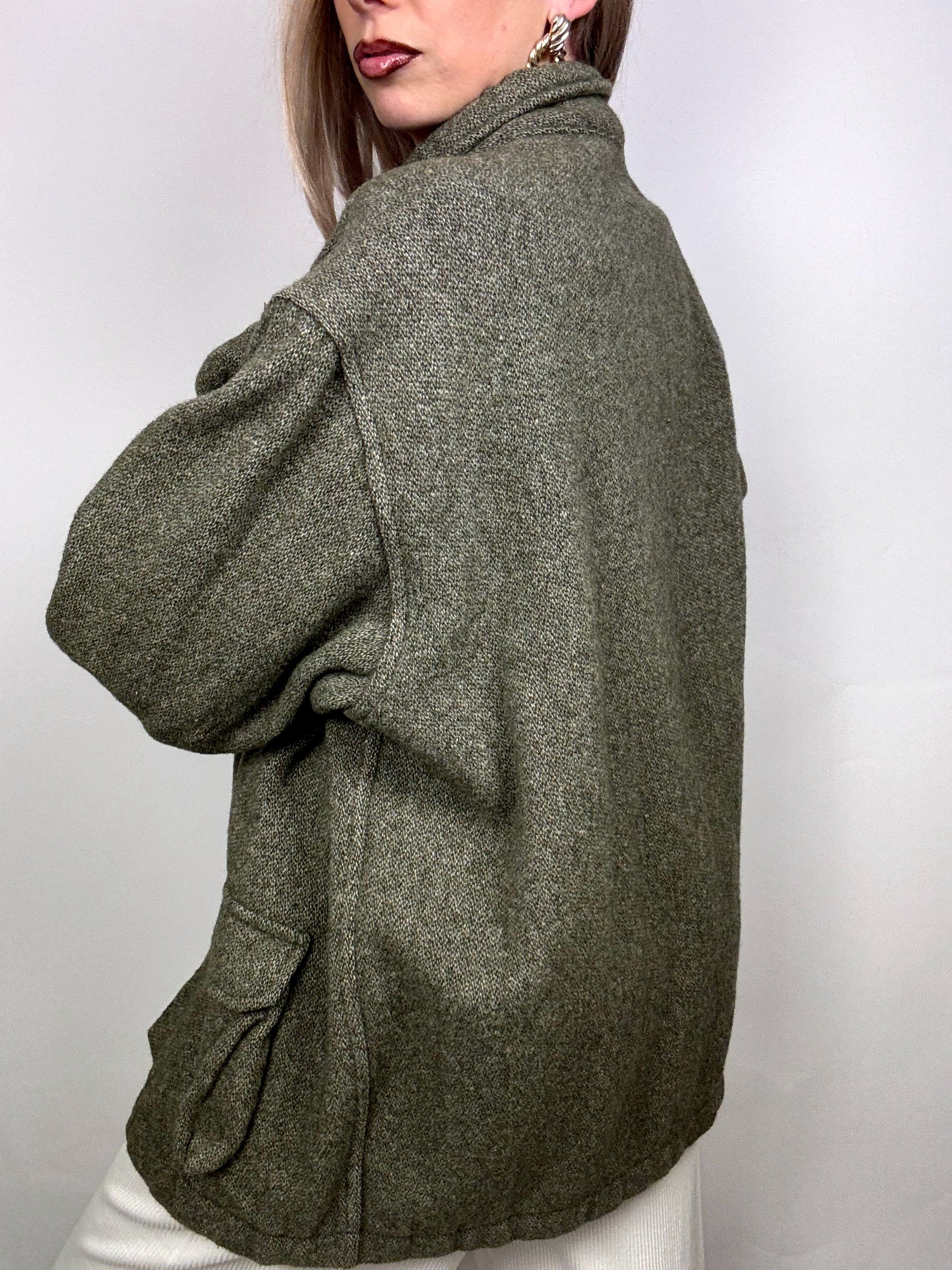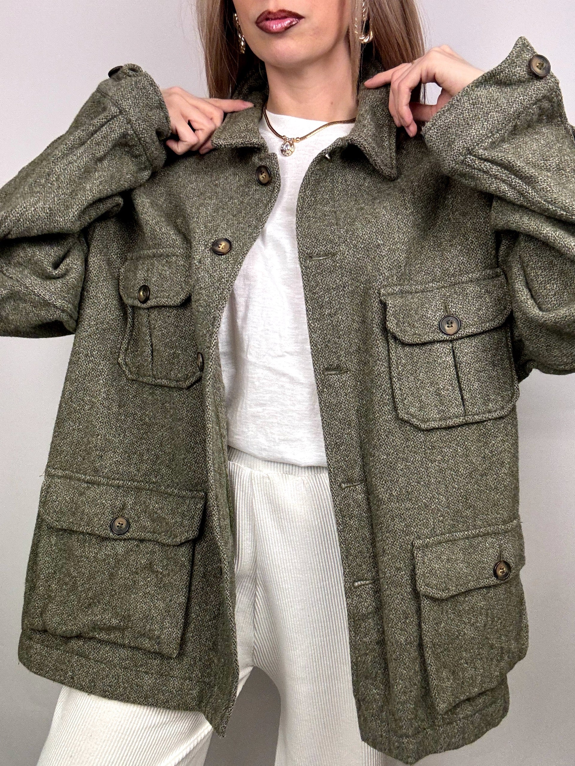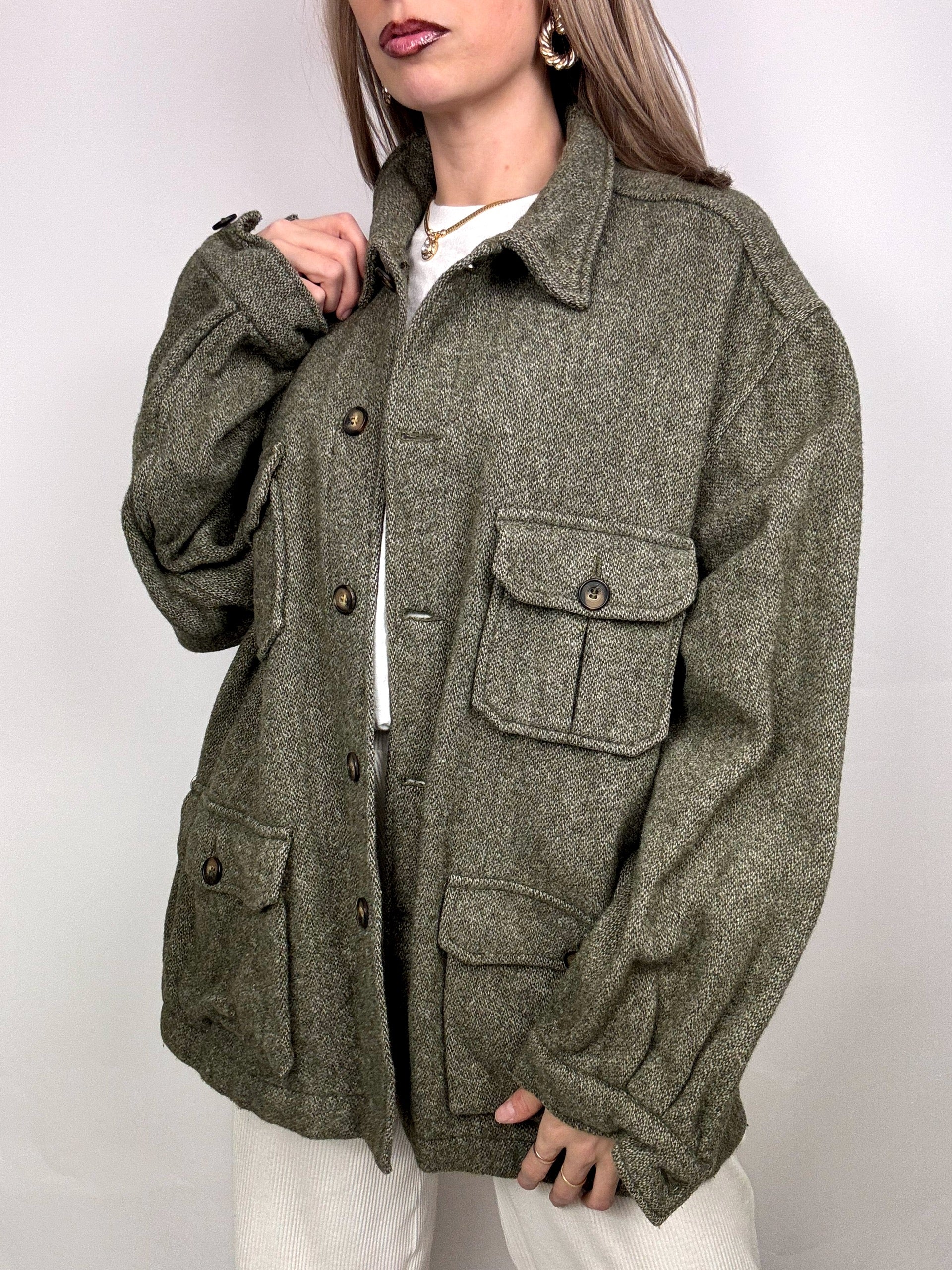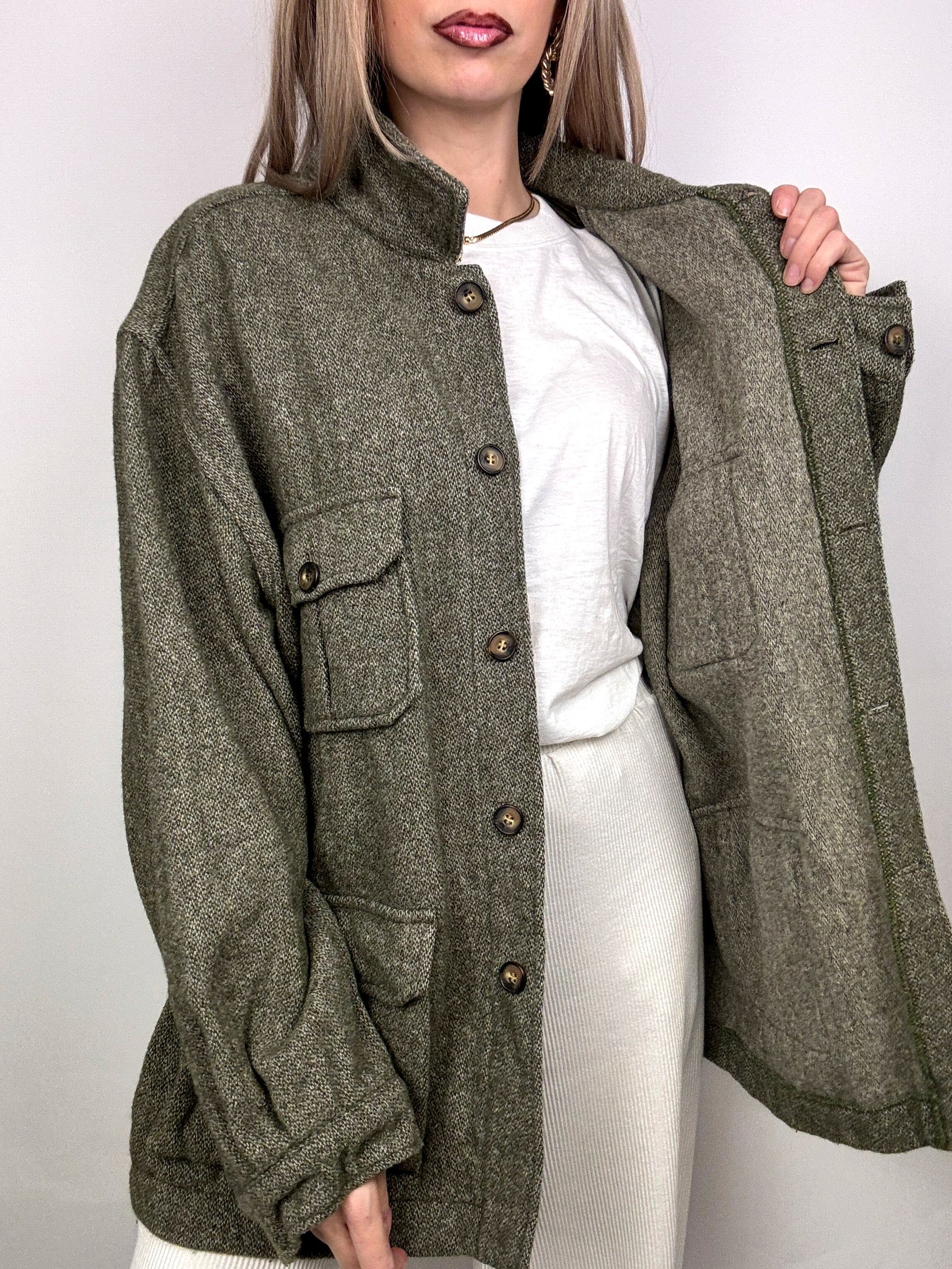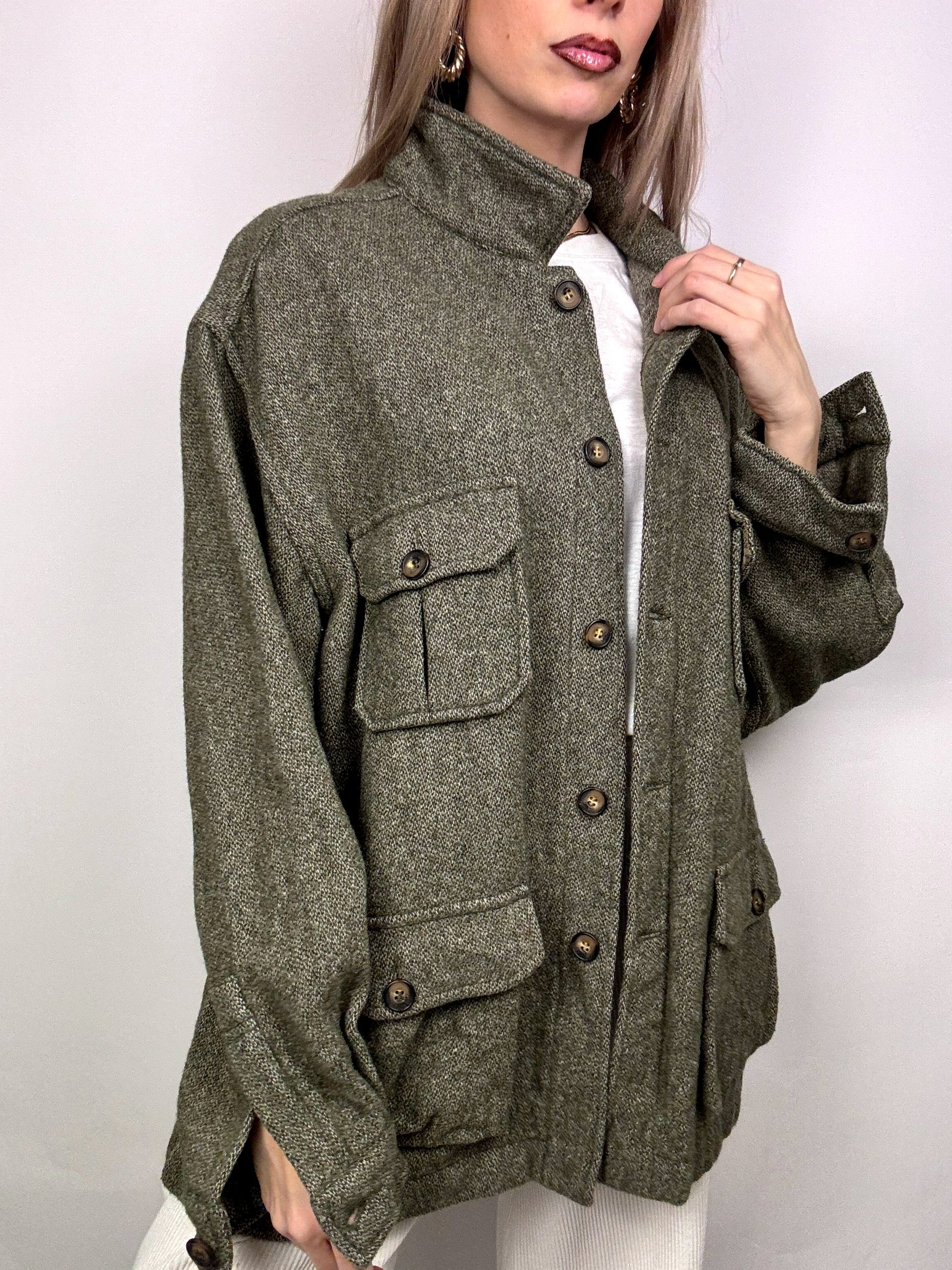 Its mottled green fabric is unique, the lightly worked buttons go really well with the style.