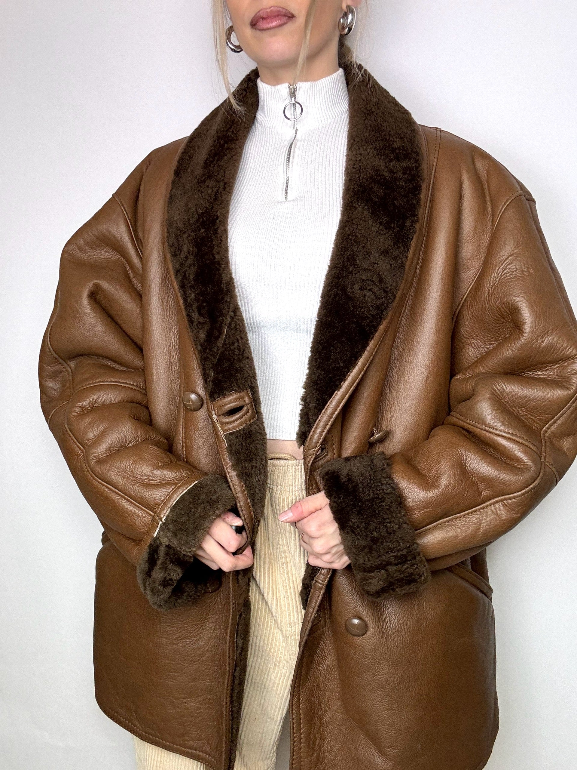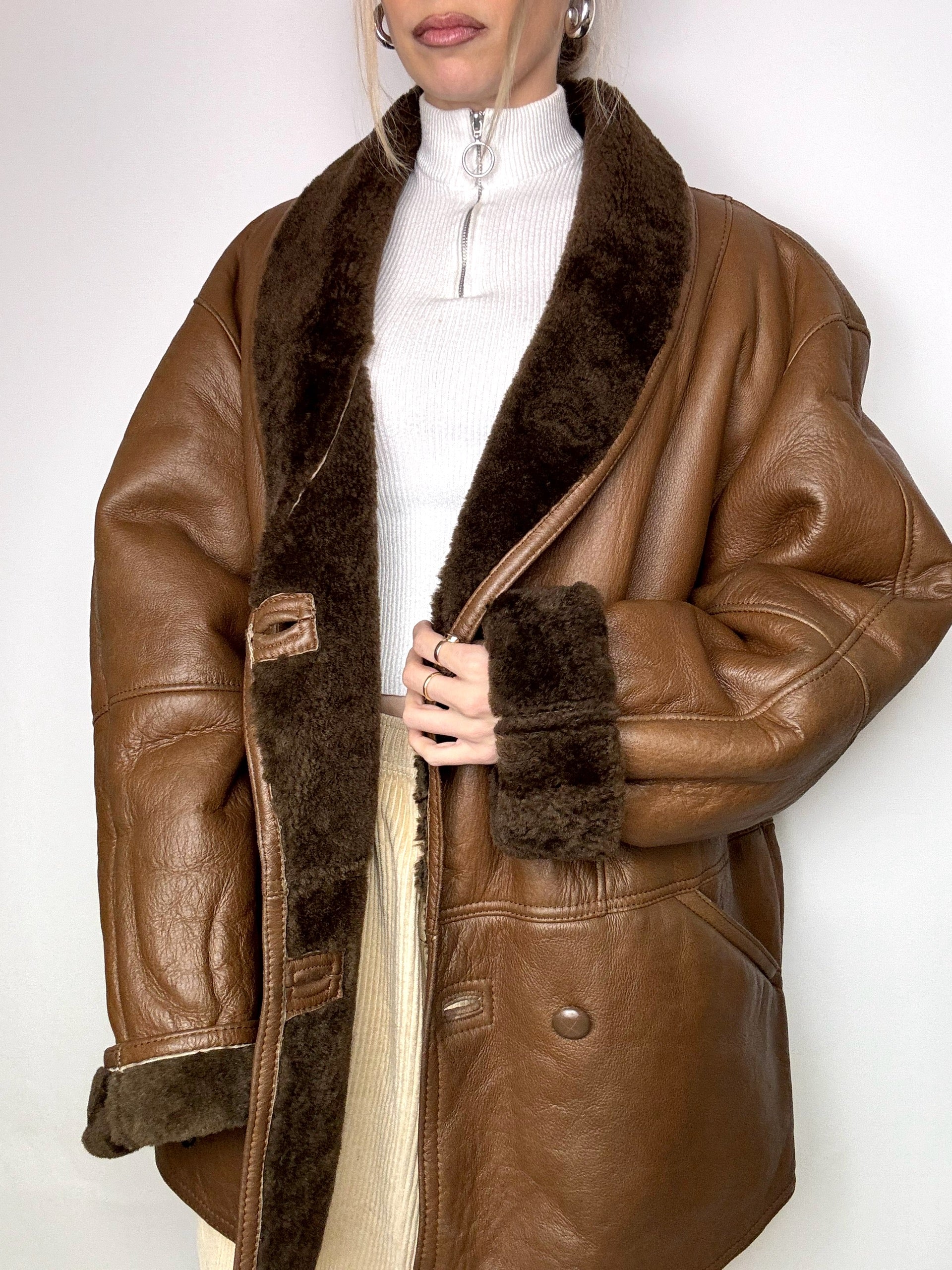 Vintage L/XL Brown Shearling Coat