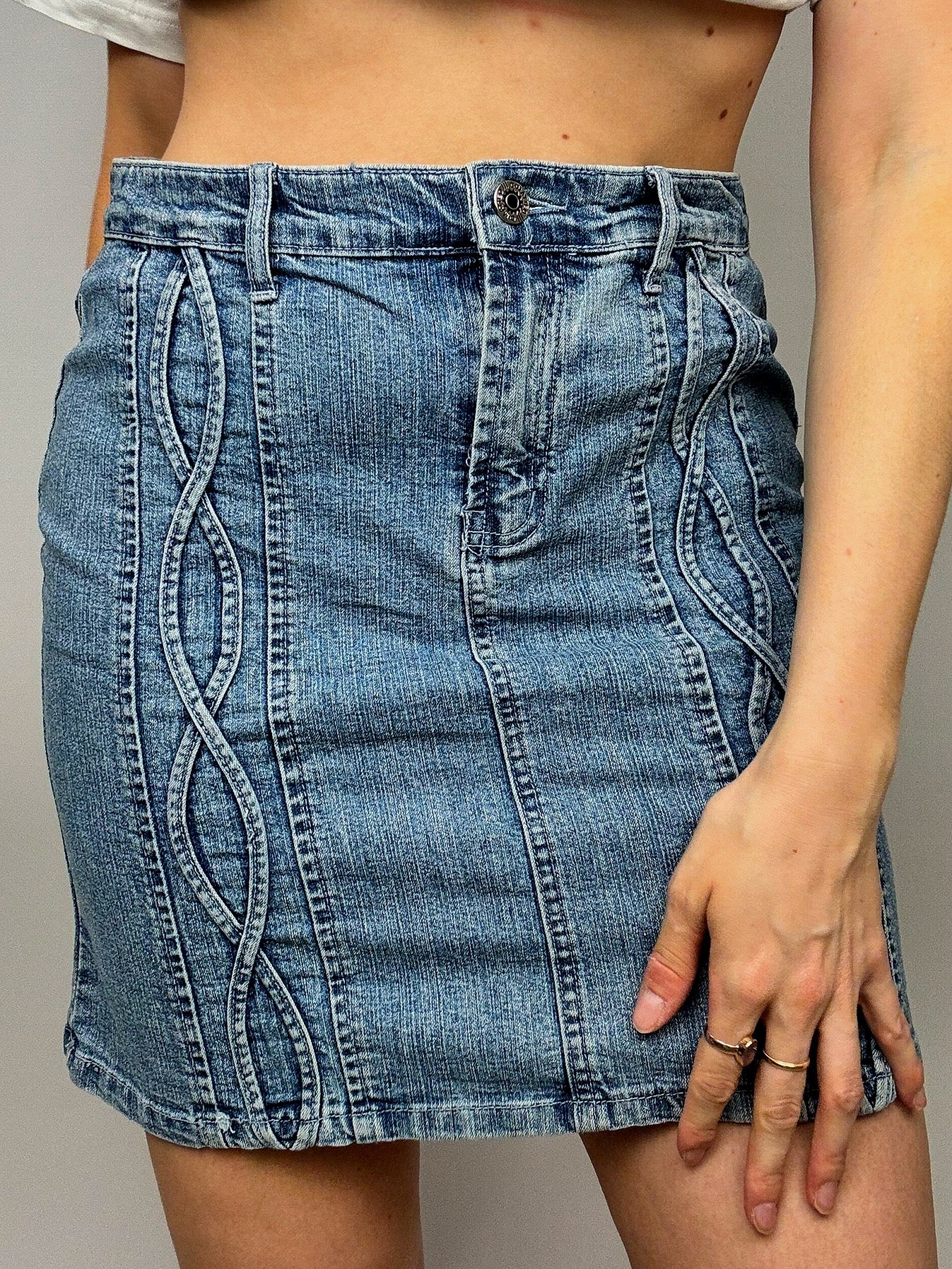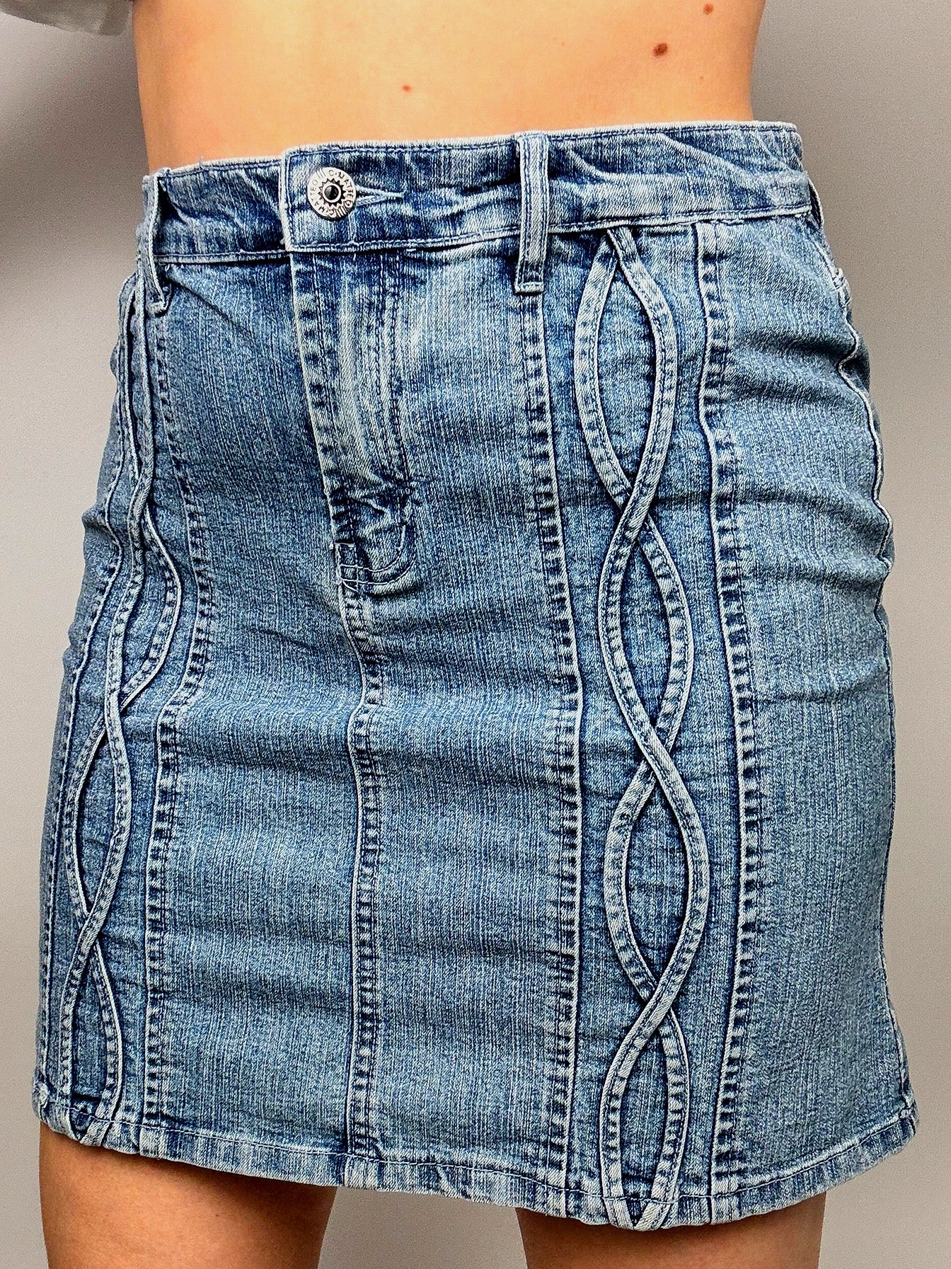 Vintage Mini Denim Skirt with Pattern