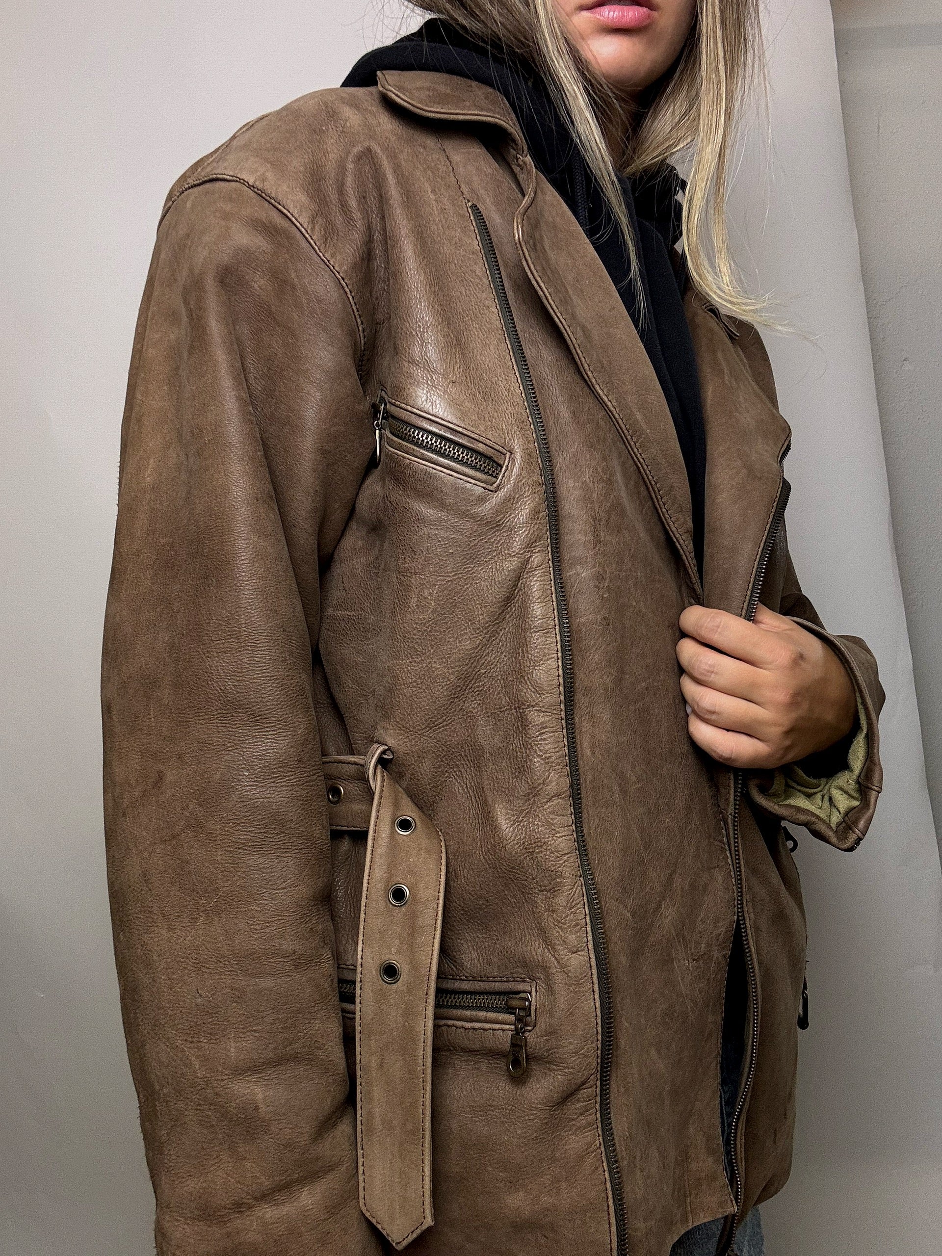 Perfecto en cuir brun/taupe L vintage