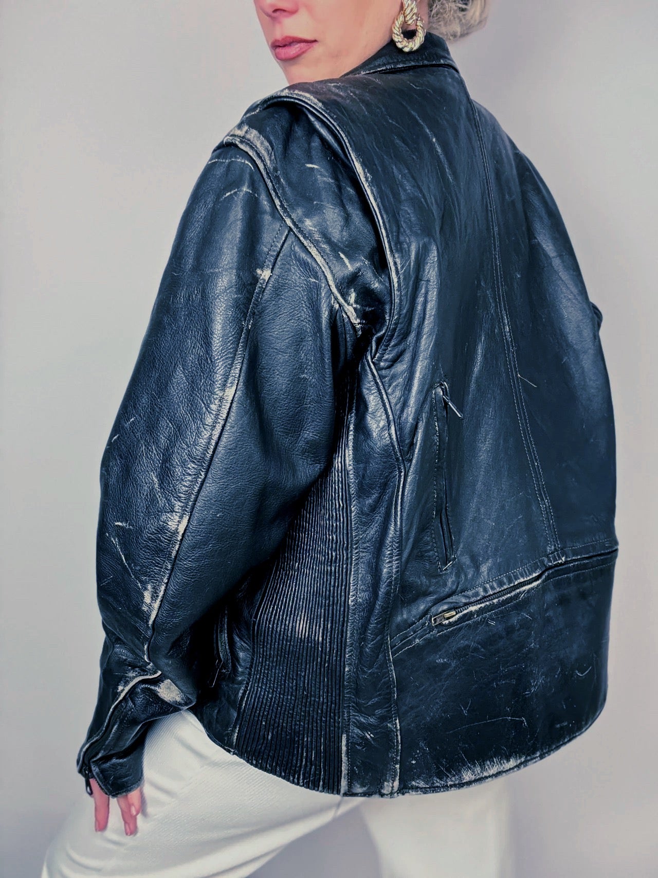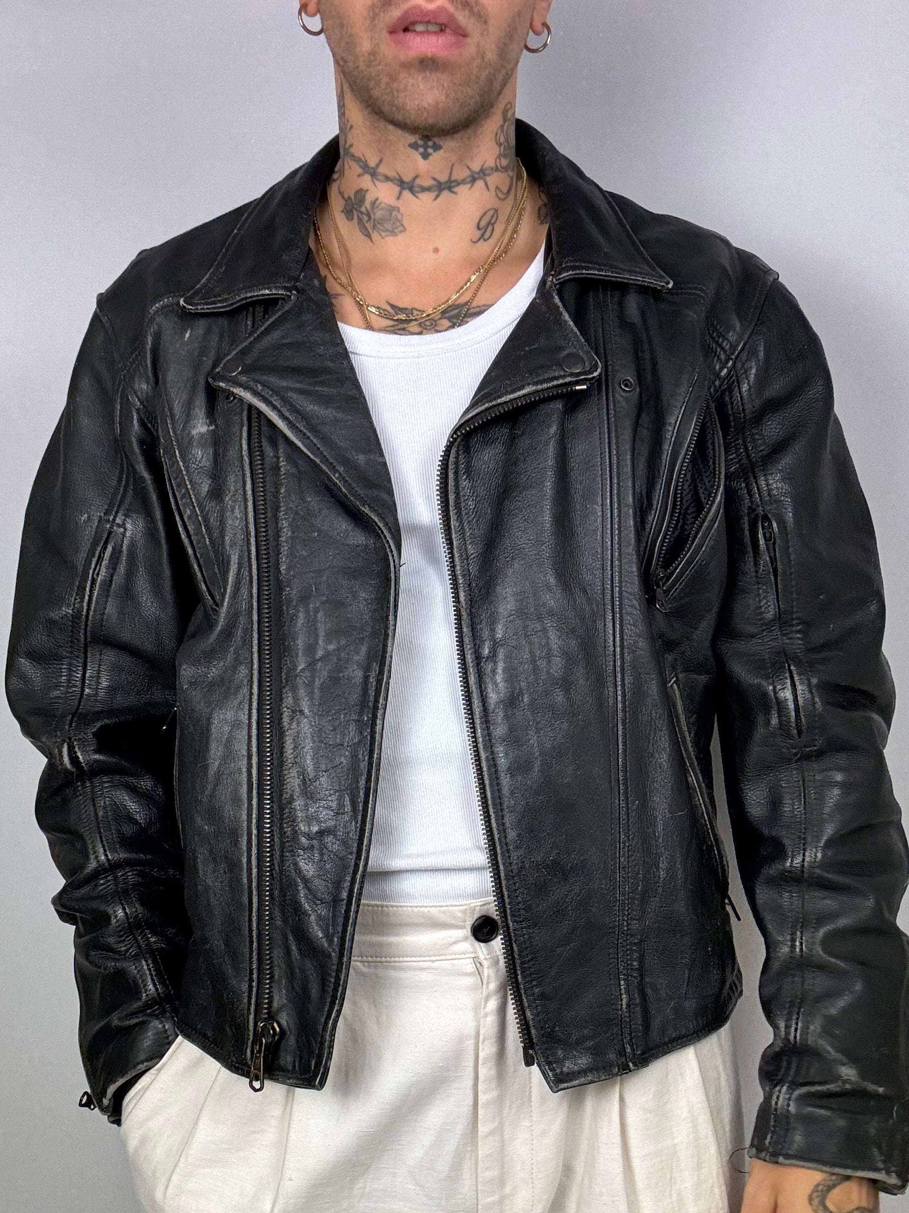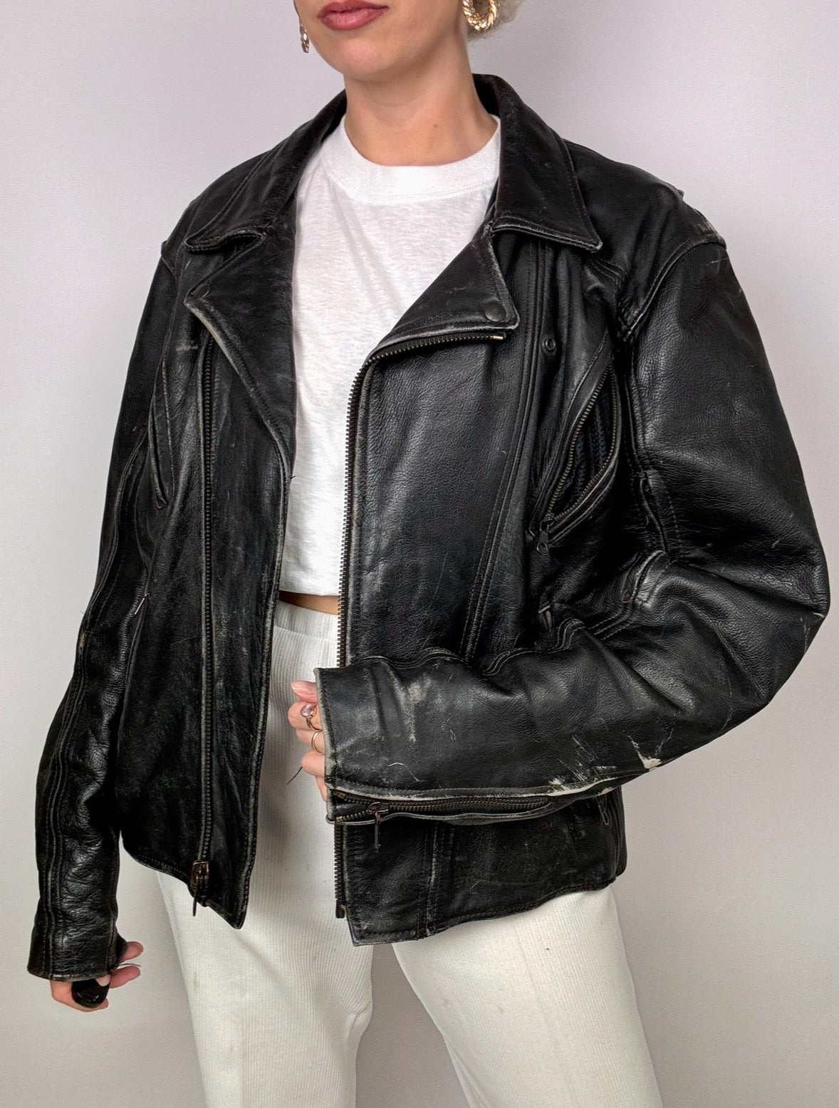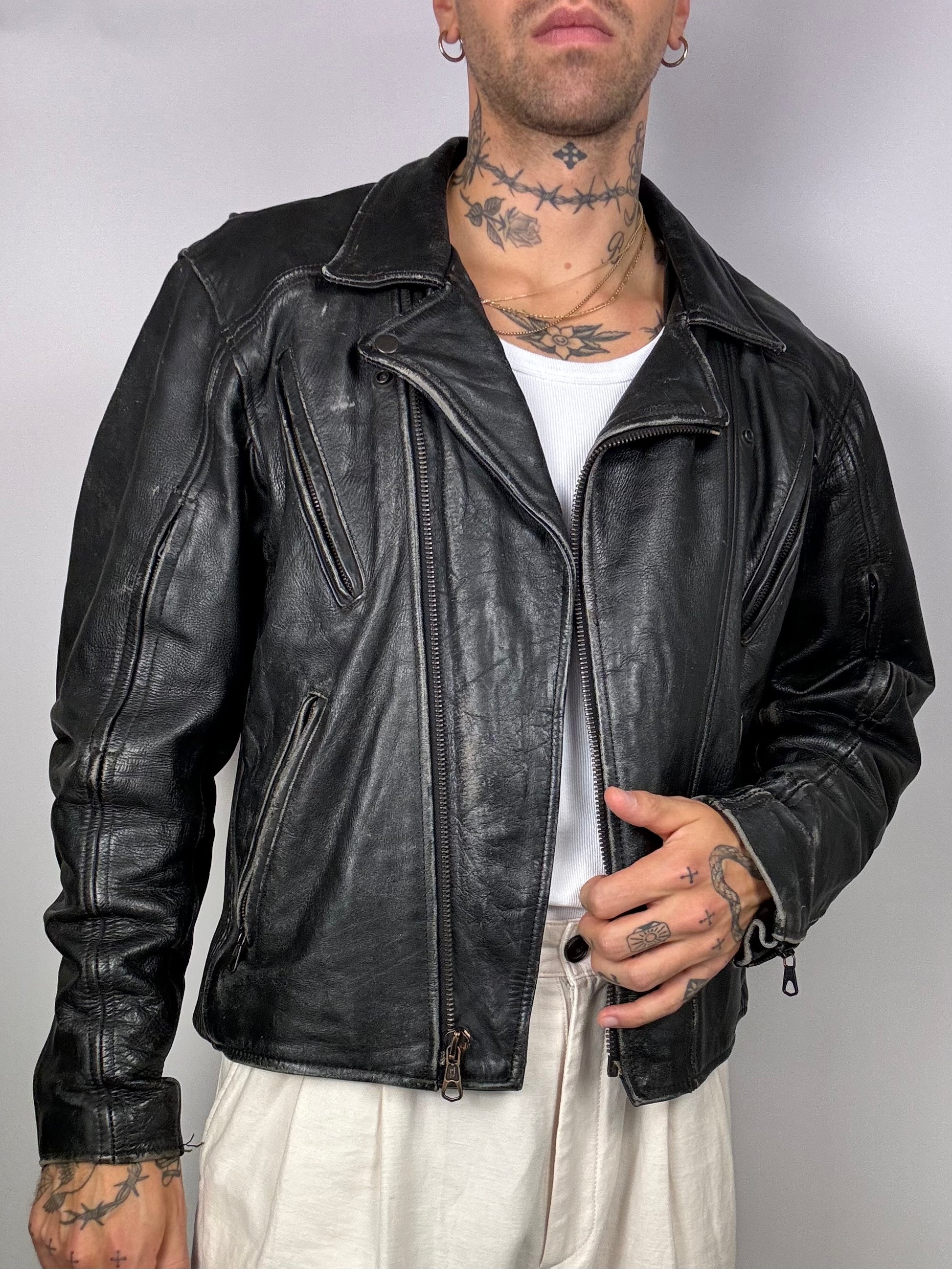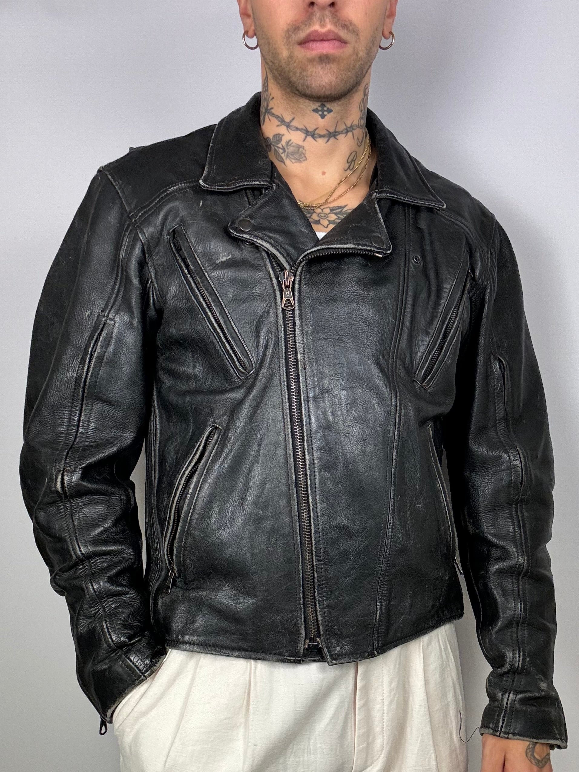 Vintage aged black cowhide leather perfecto
