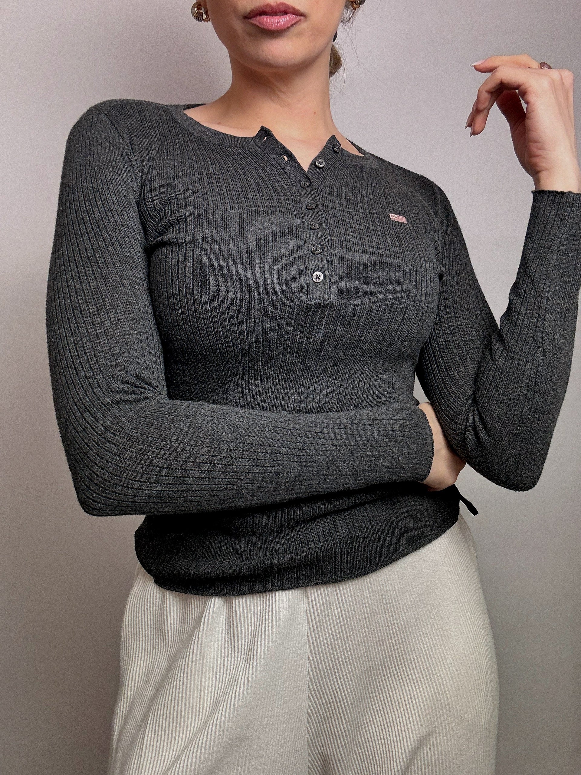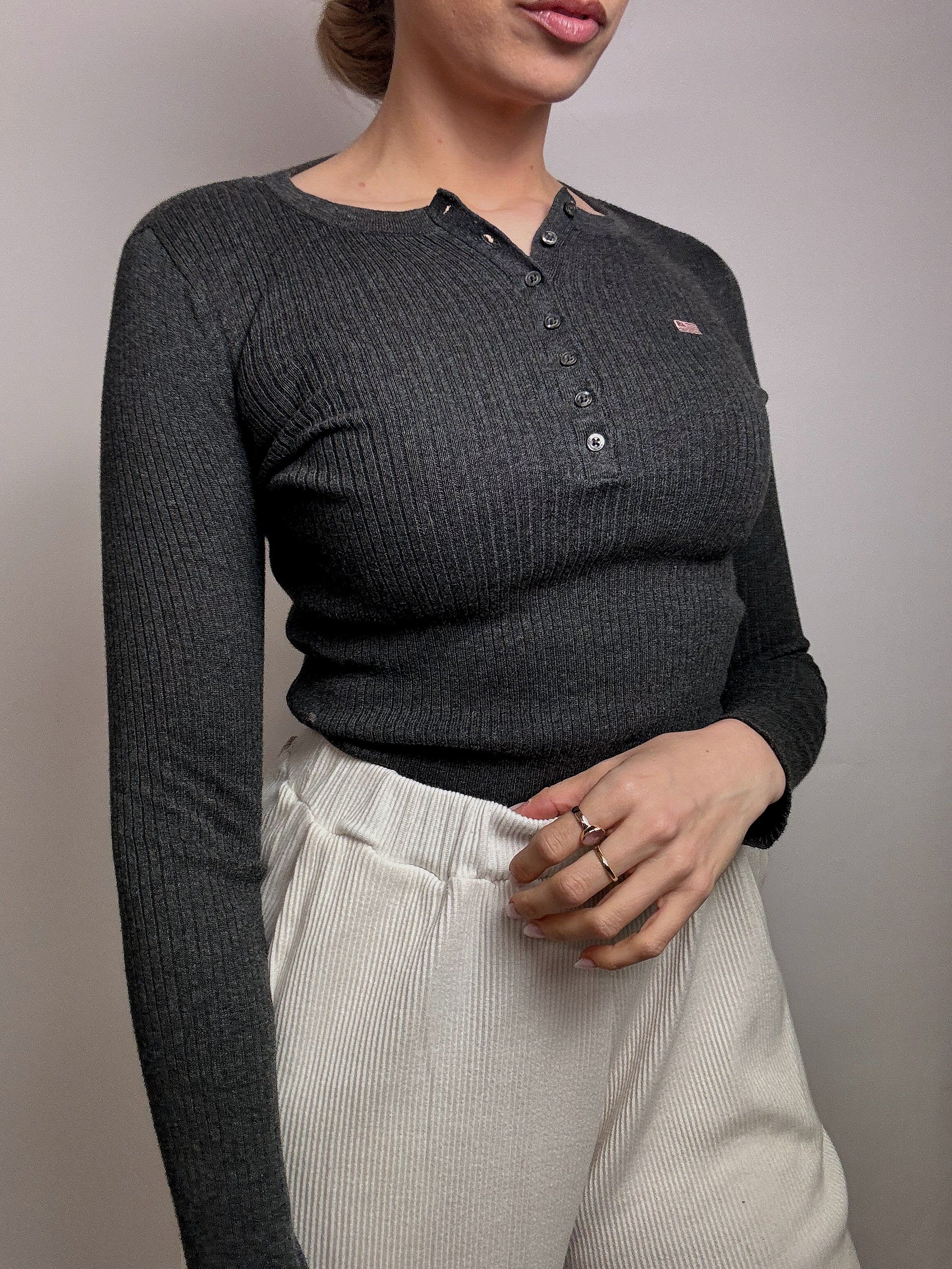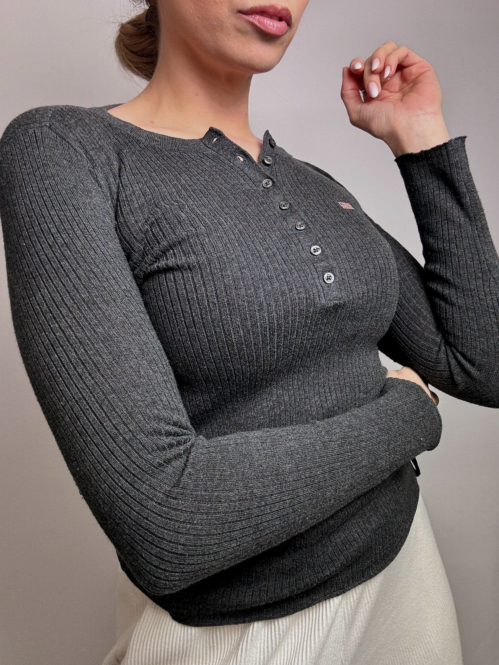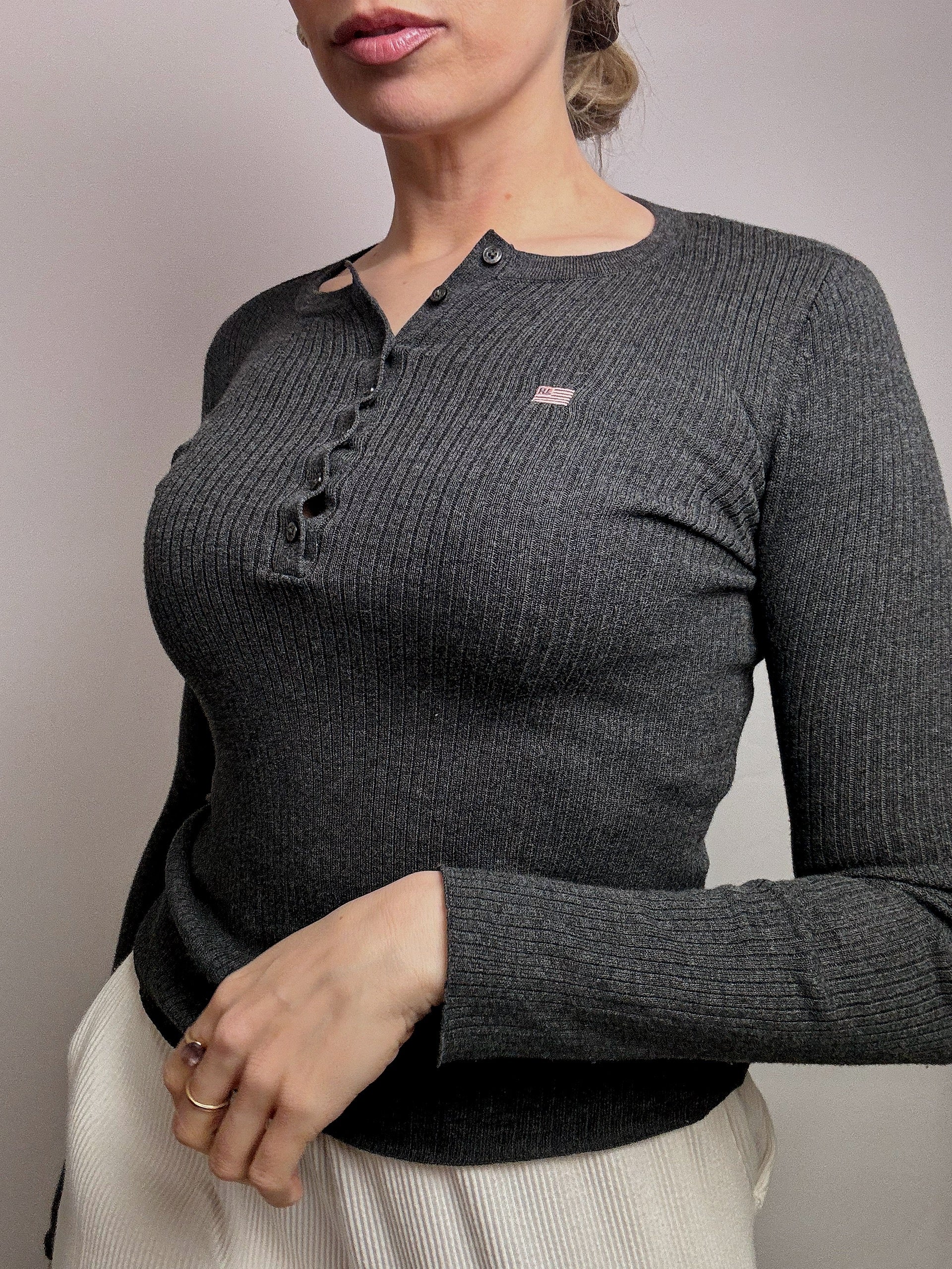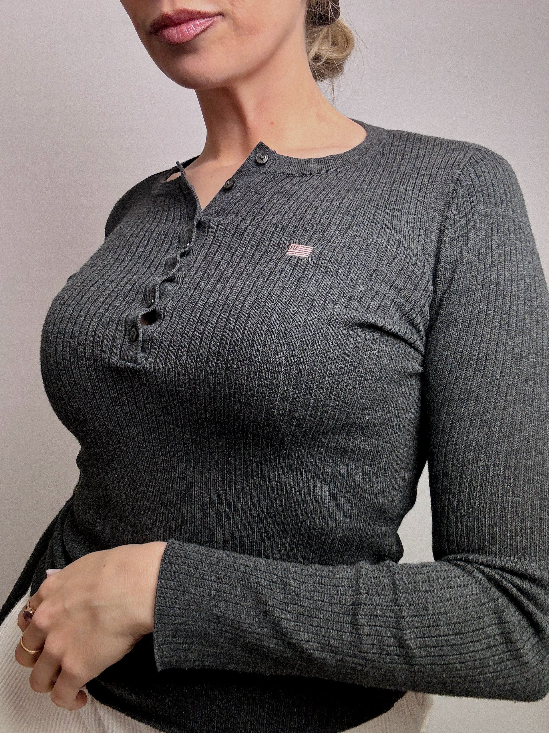 Vintage RALPH LAUREN XS grey button-down collar sweater