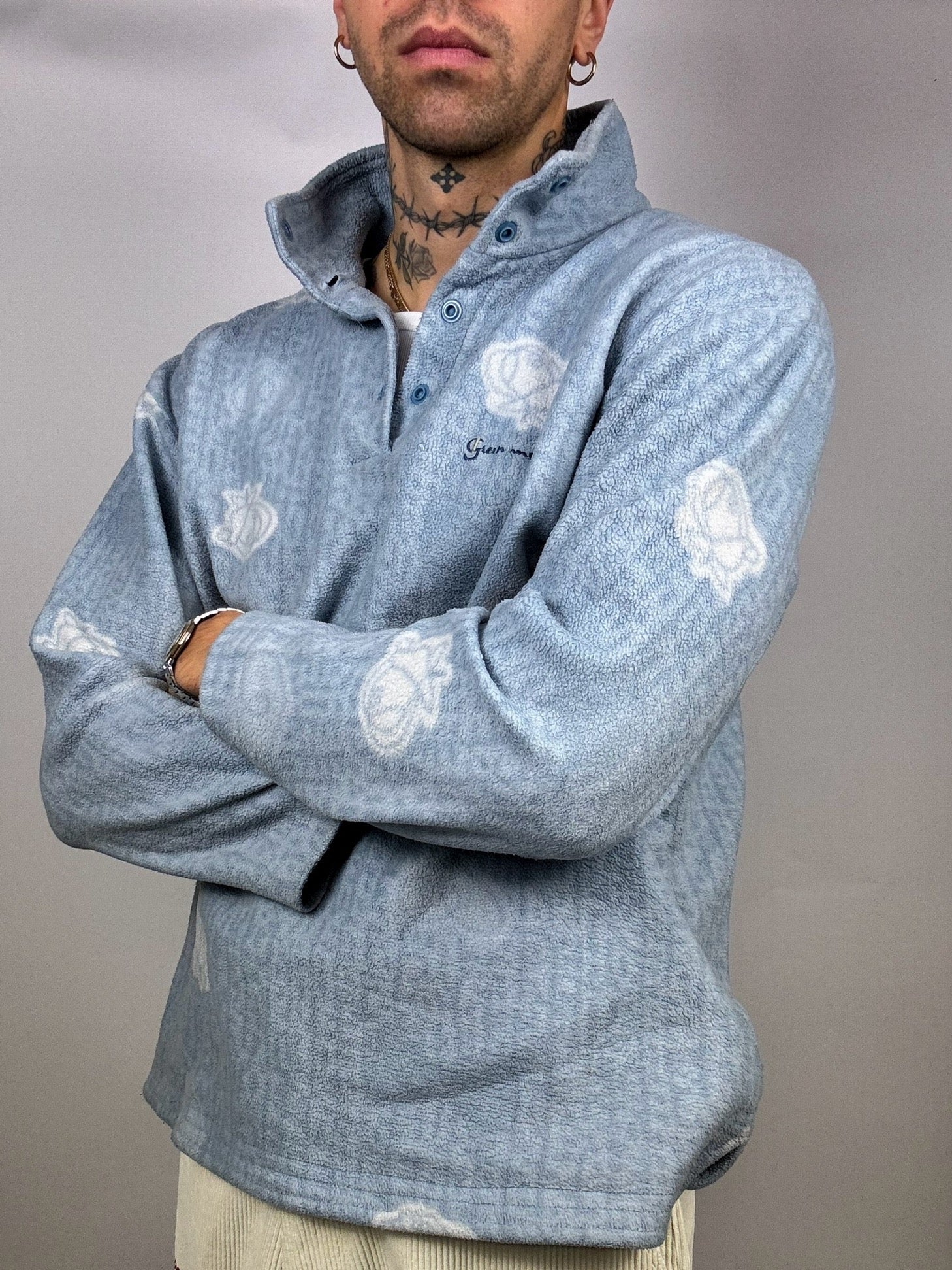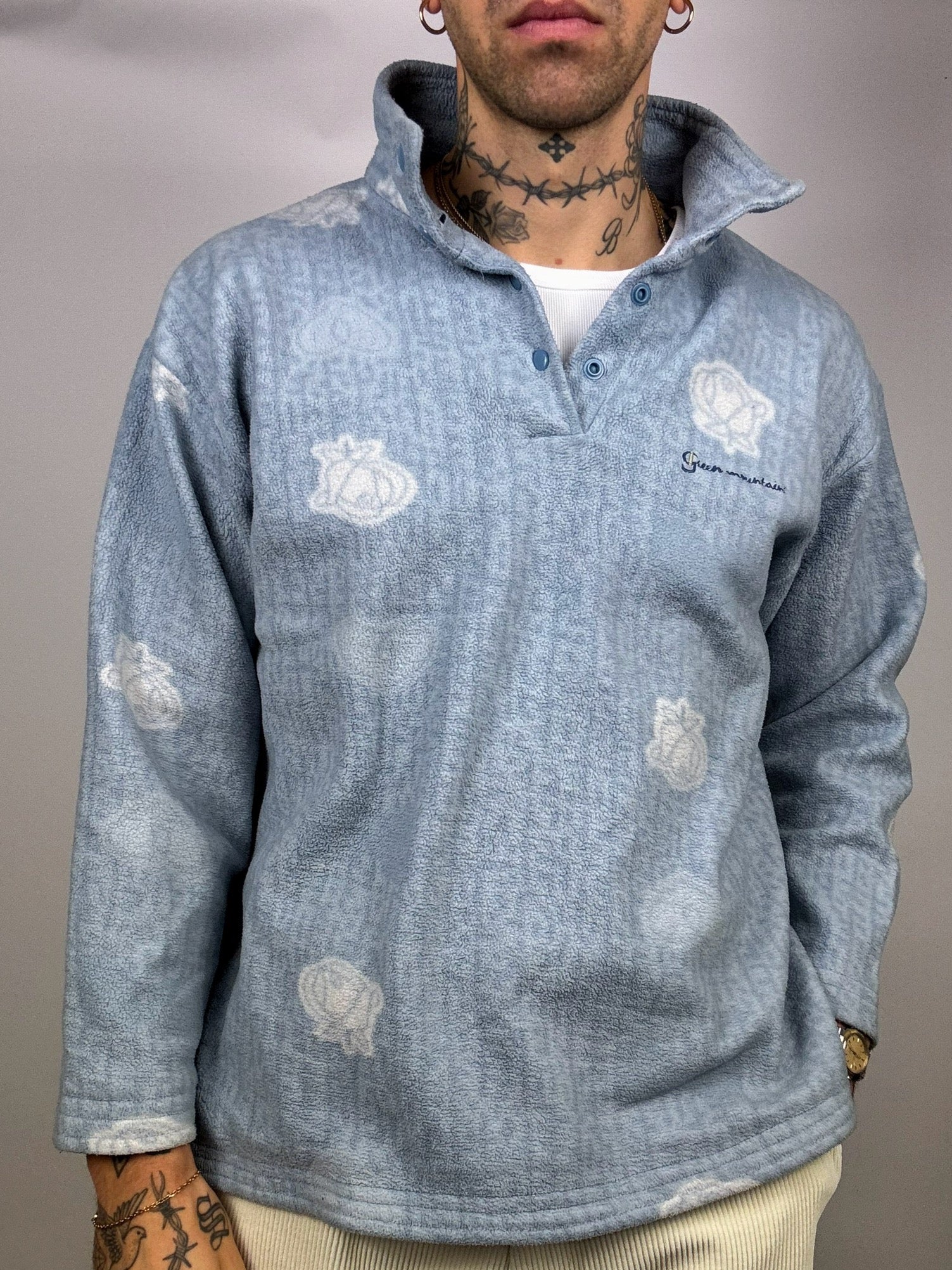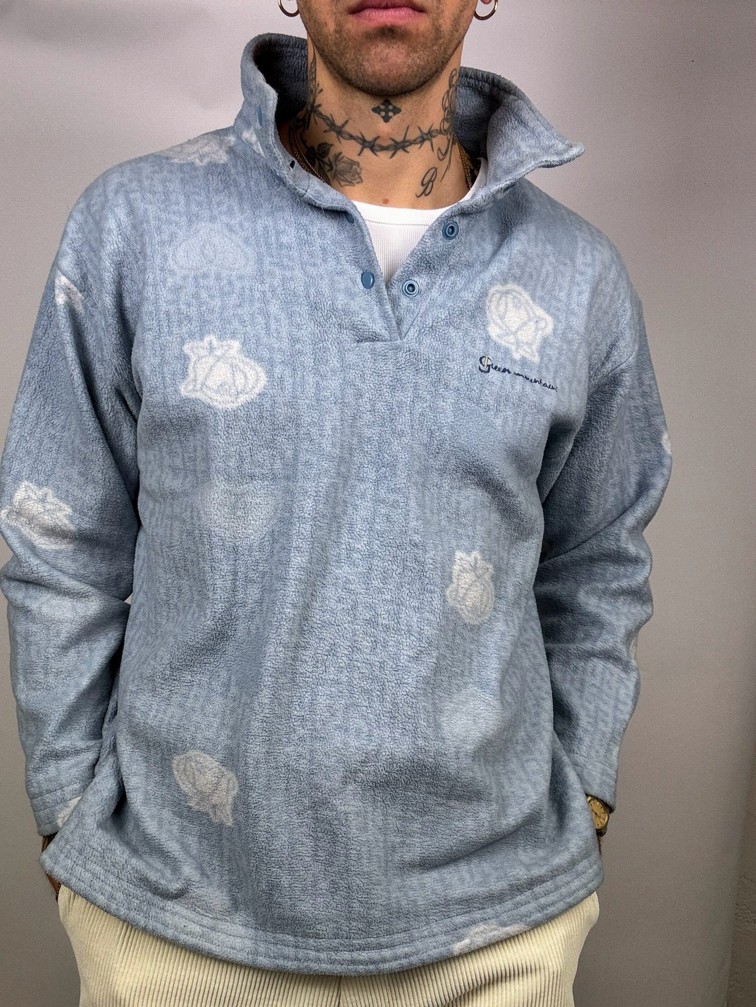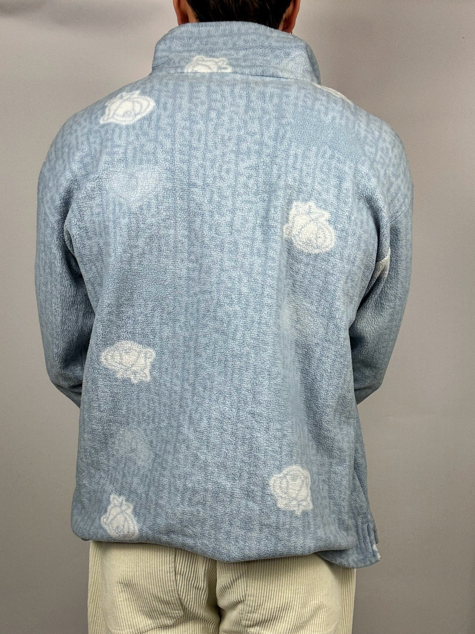 Sky blue fleece with vintage pattern M/L