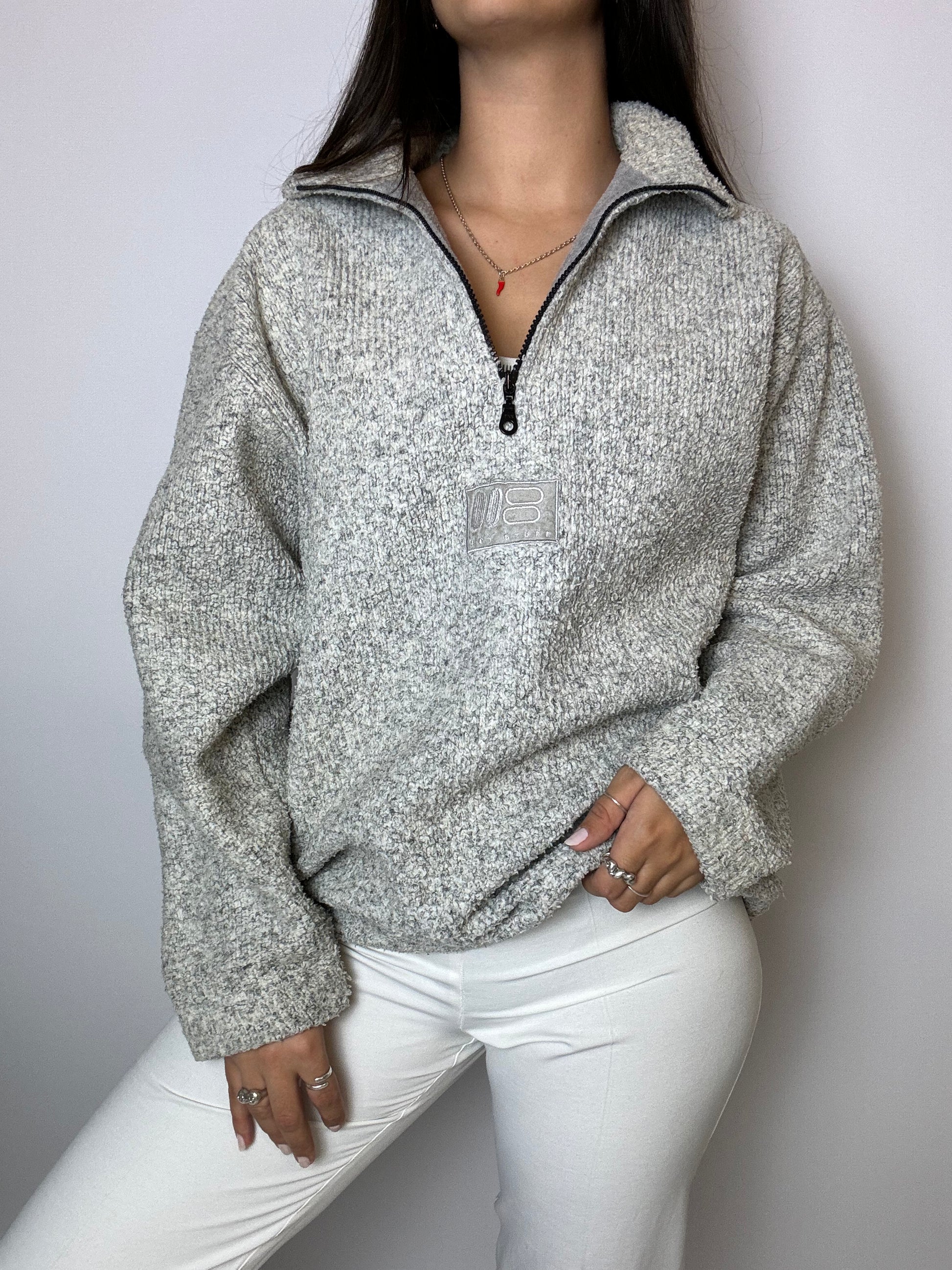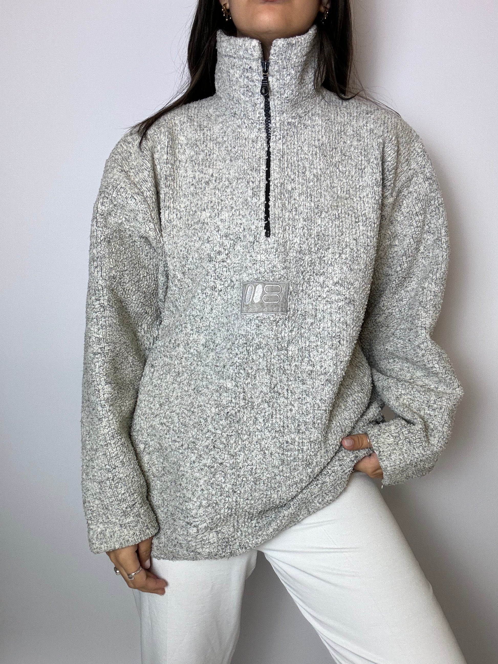 Heather gray fleece with vintage zip L