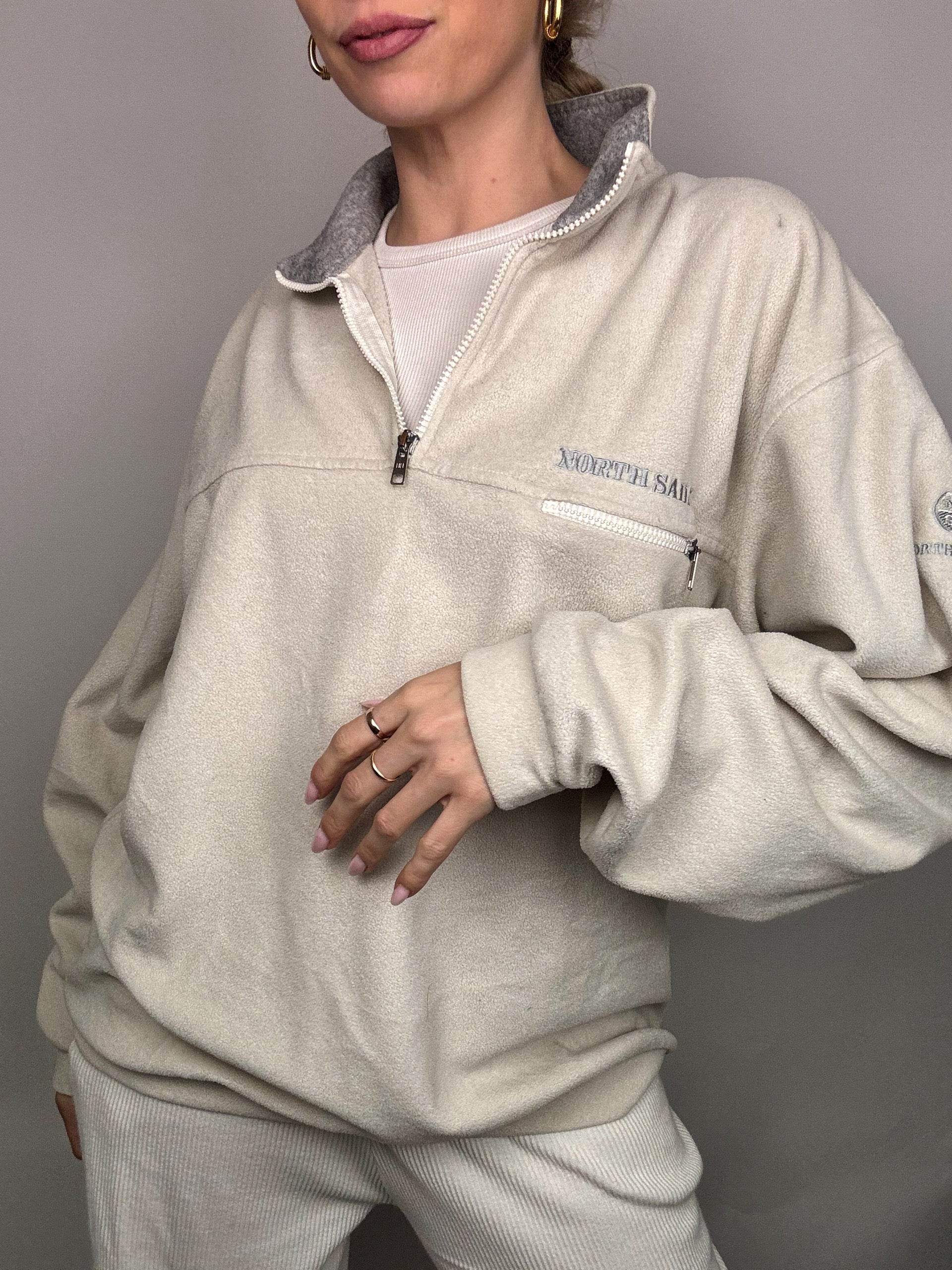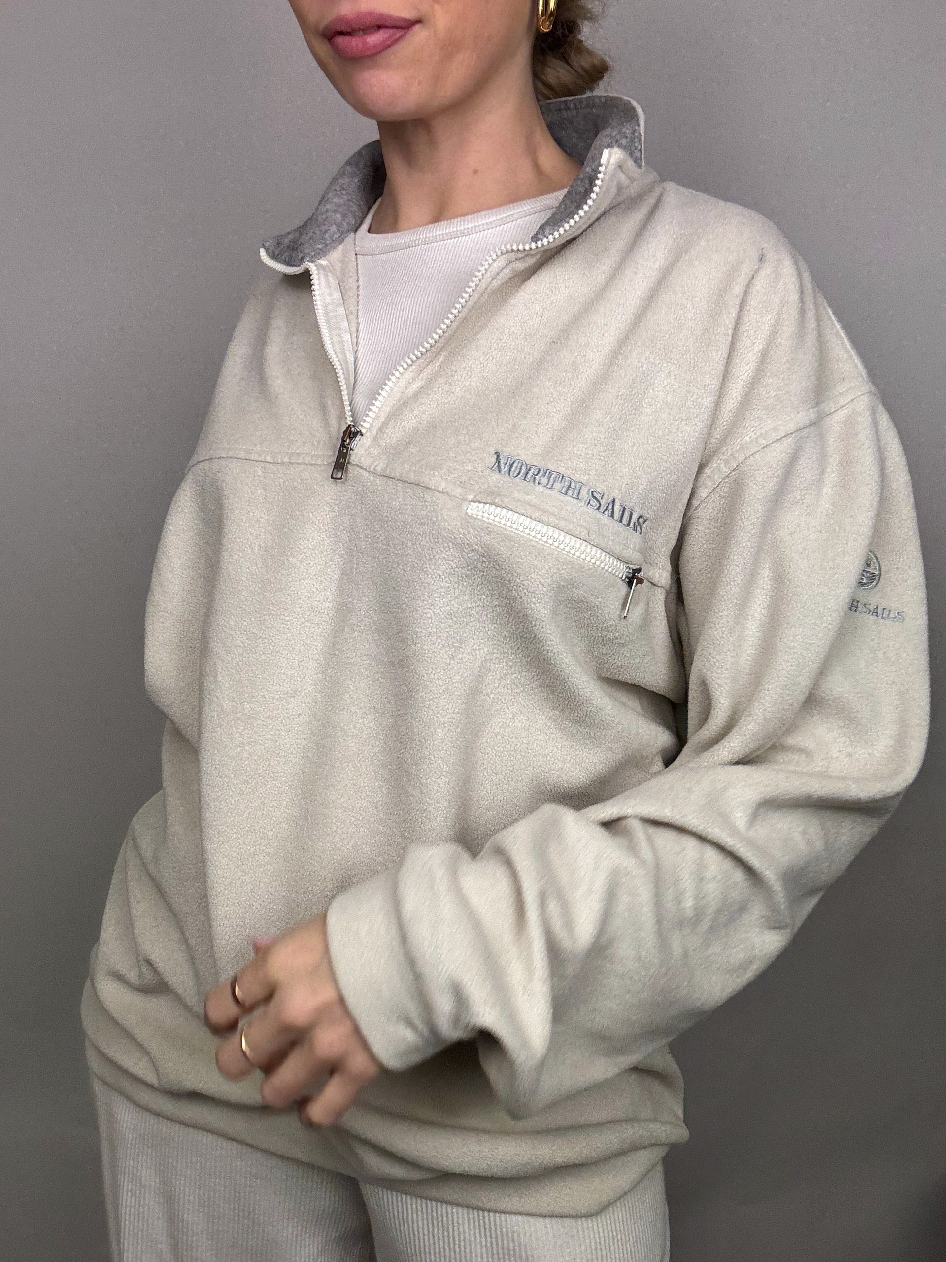 NORTH SAILS XL Vintage Cream Zip-Neck Fleece