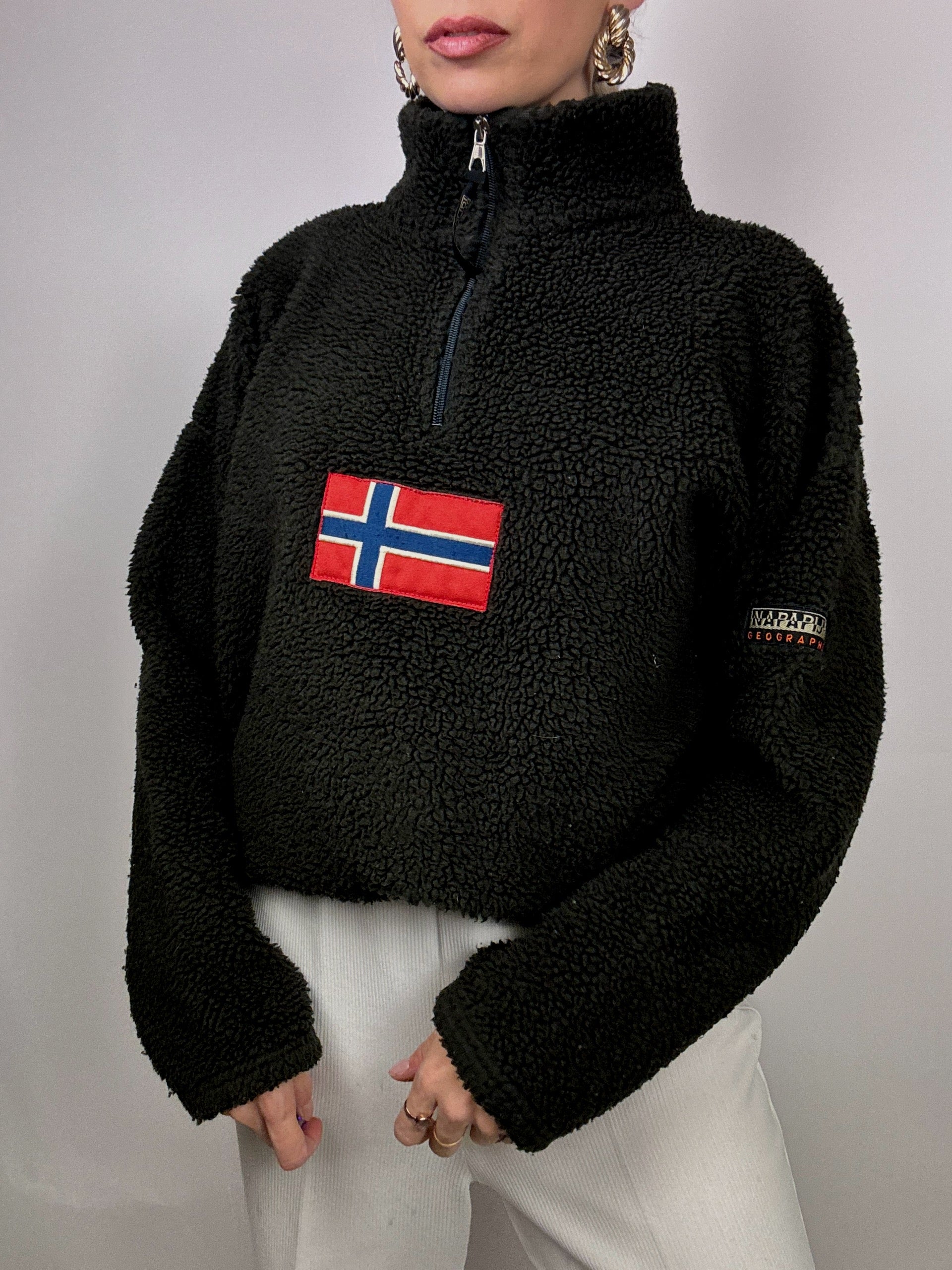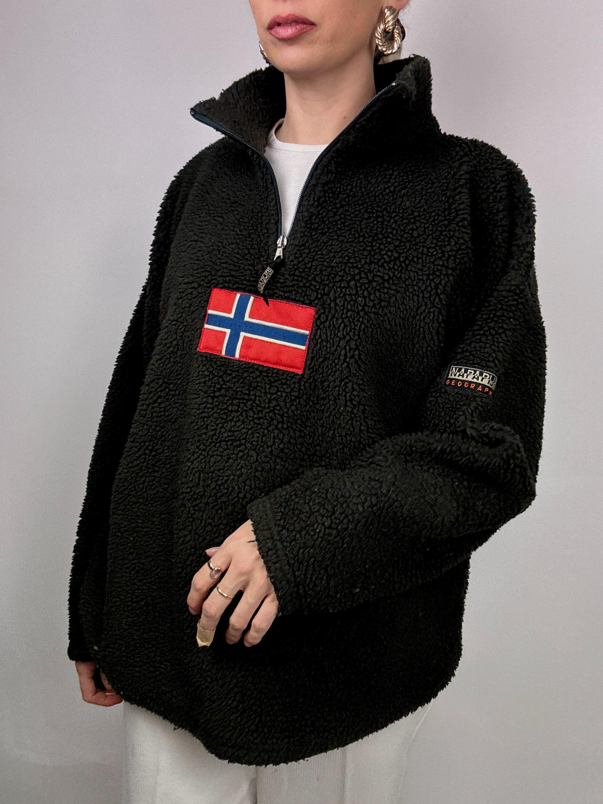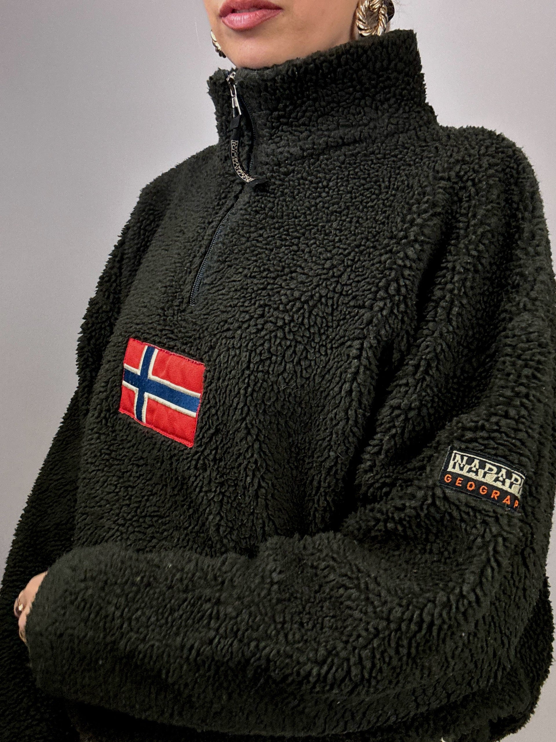 NAPAPIJRI Thick Fleece with Zip-up Funnel Neck and Drawstring