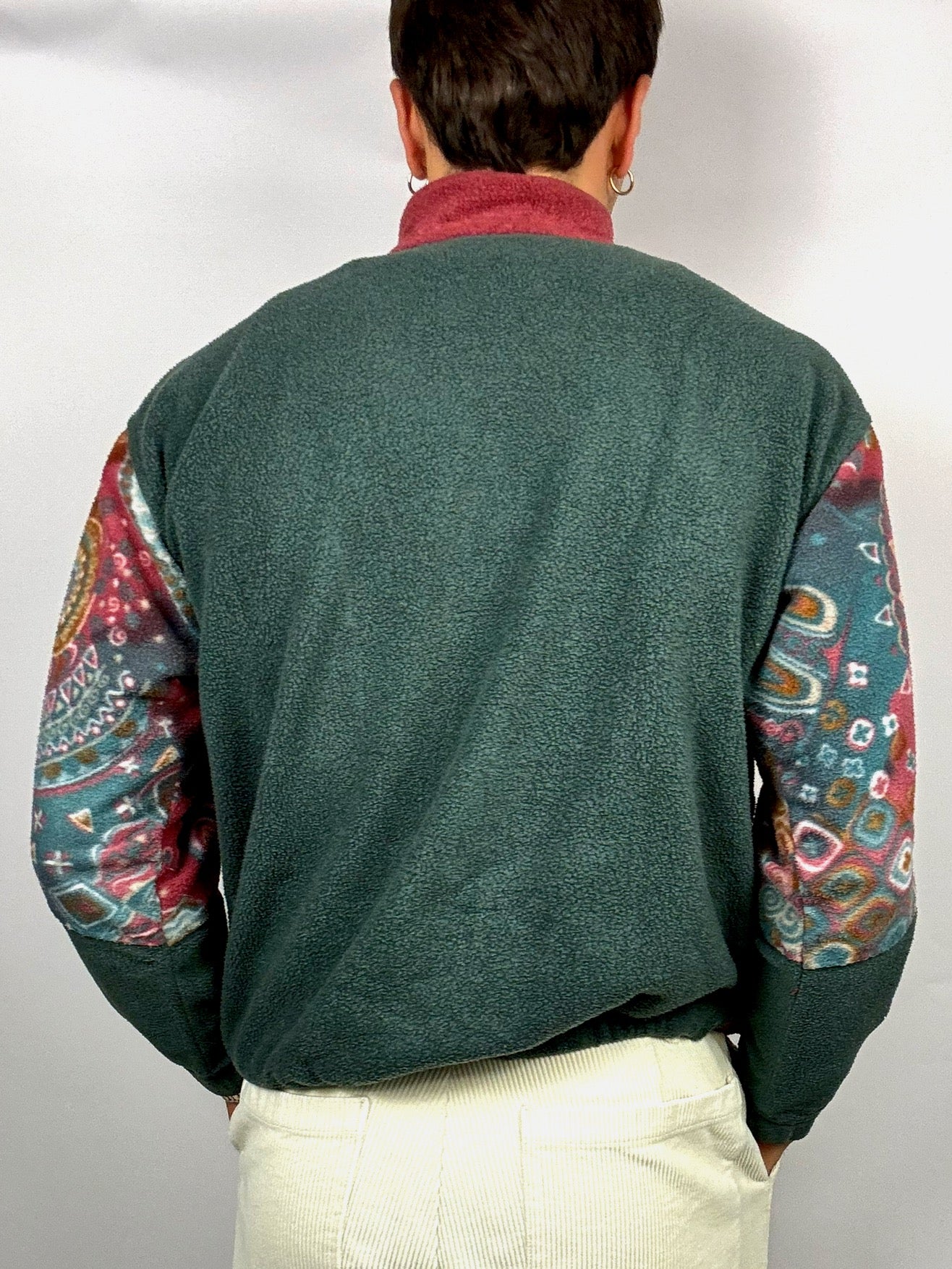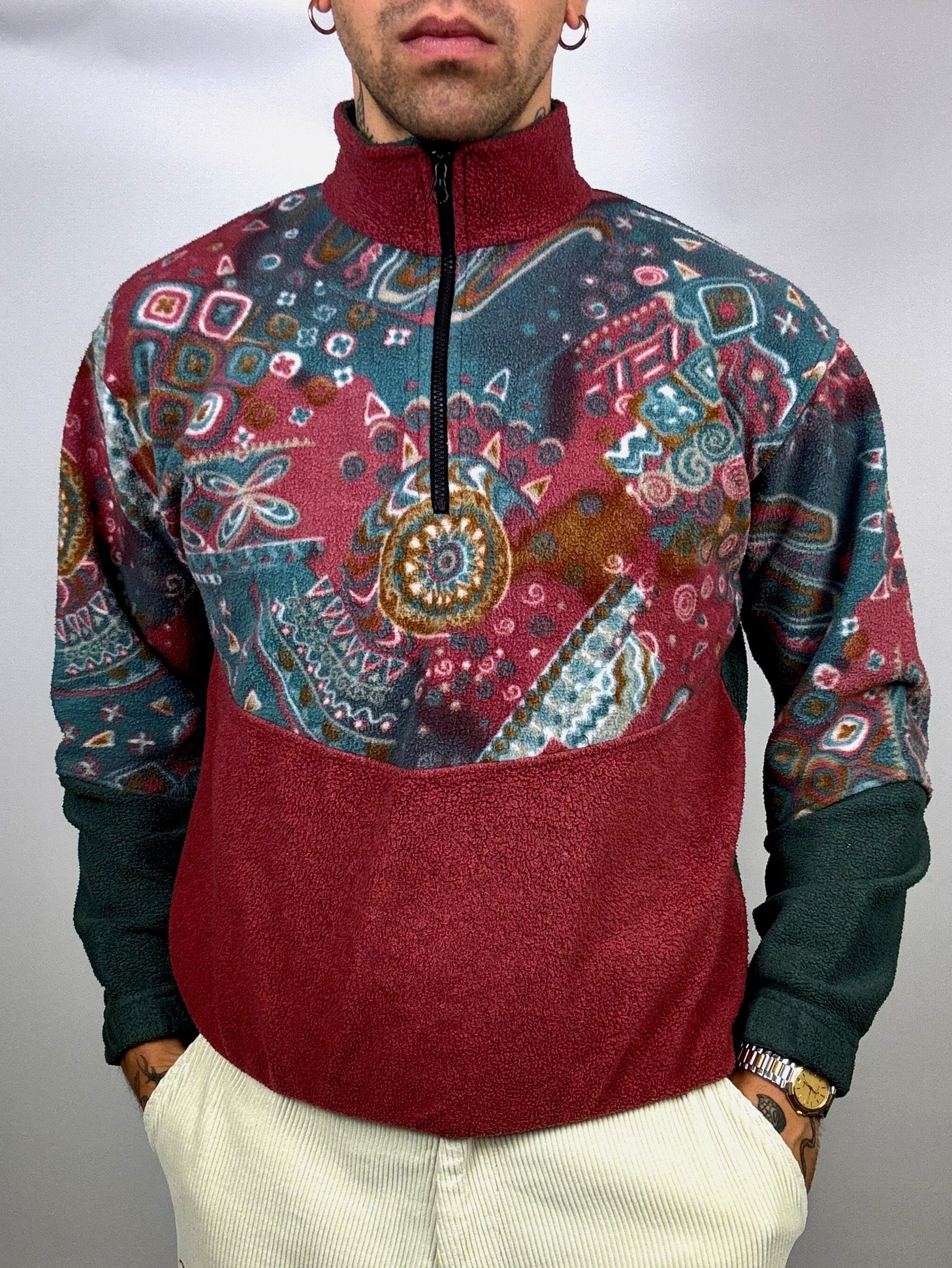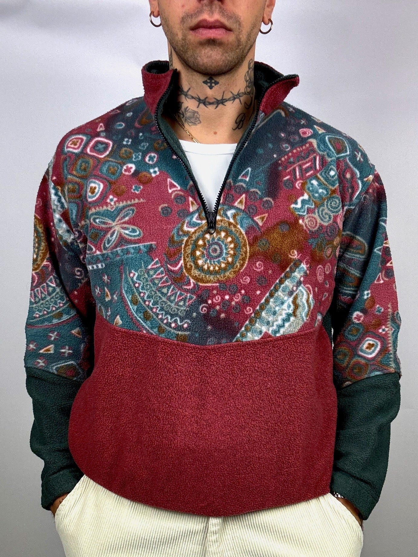 Burgundy graphic fleece with zip neck L/XL Vintage