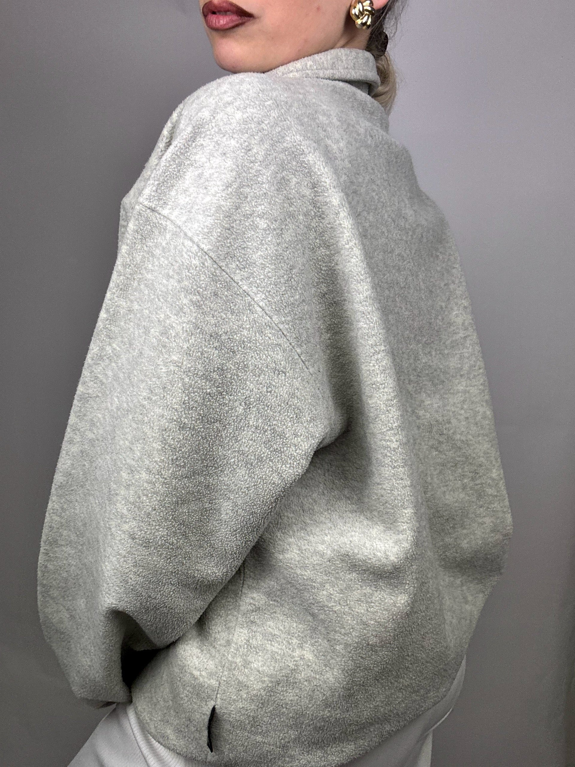 A great classic: a grey fleece, in very good condition, a well-fitting funnel neck, a very vintage brand logo on the chest, a slightly oversized cut: in short, the basics.