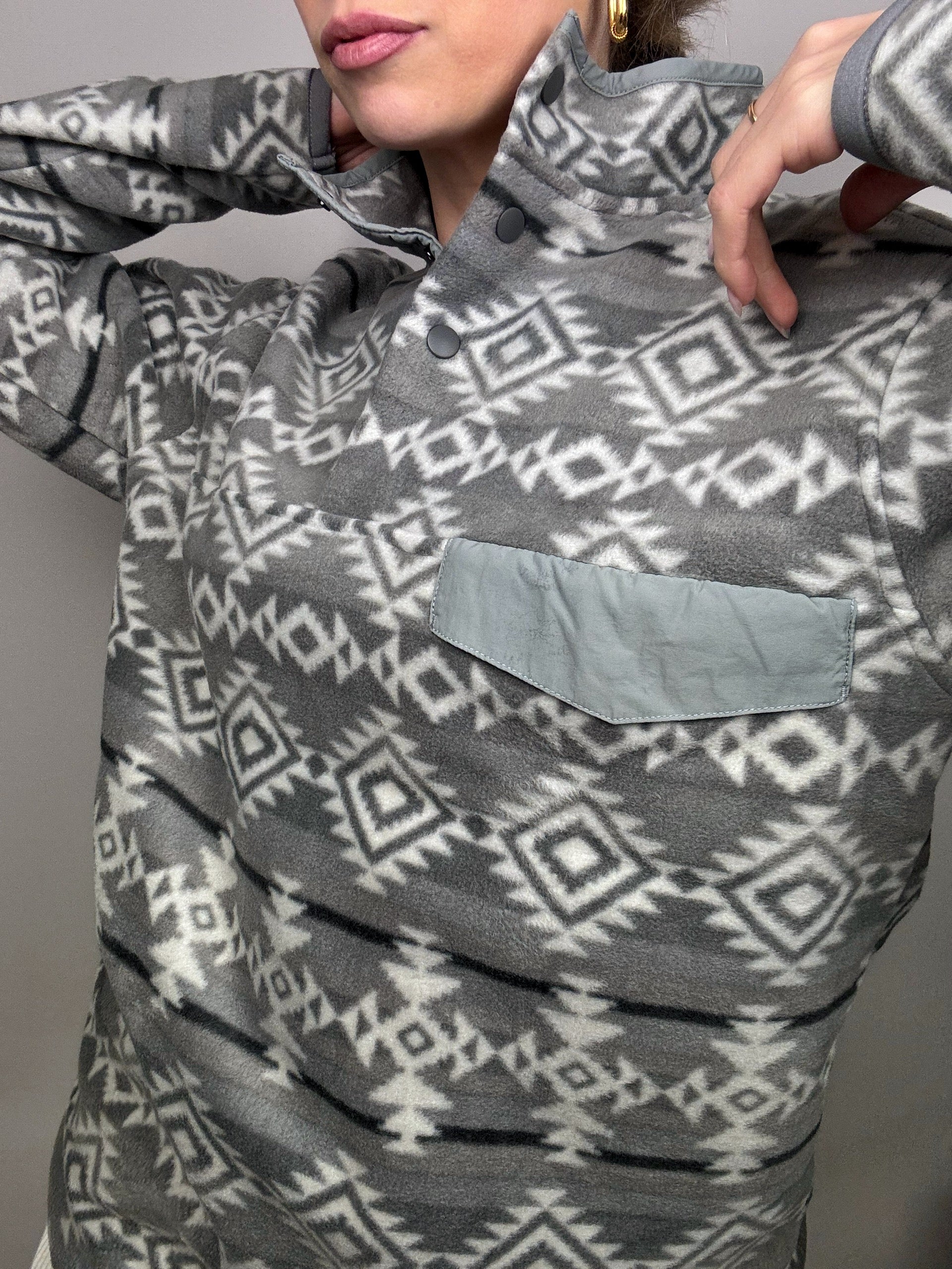 It has a high XXL collar with press studs and a small pocket on the chest,