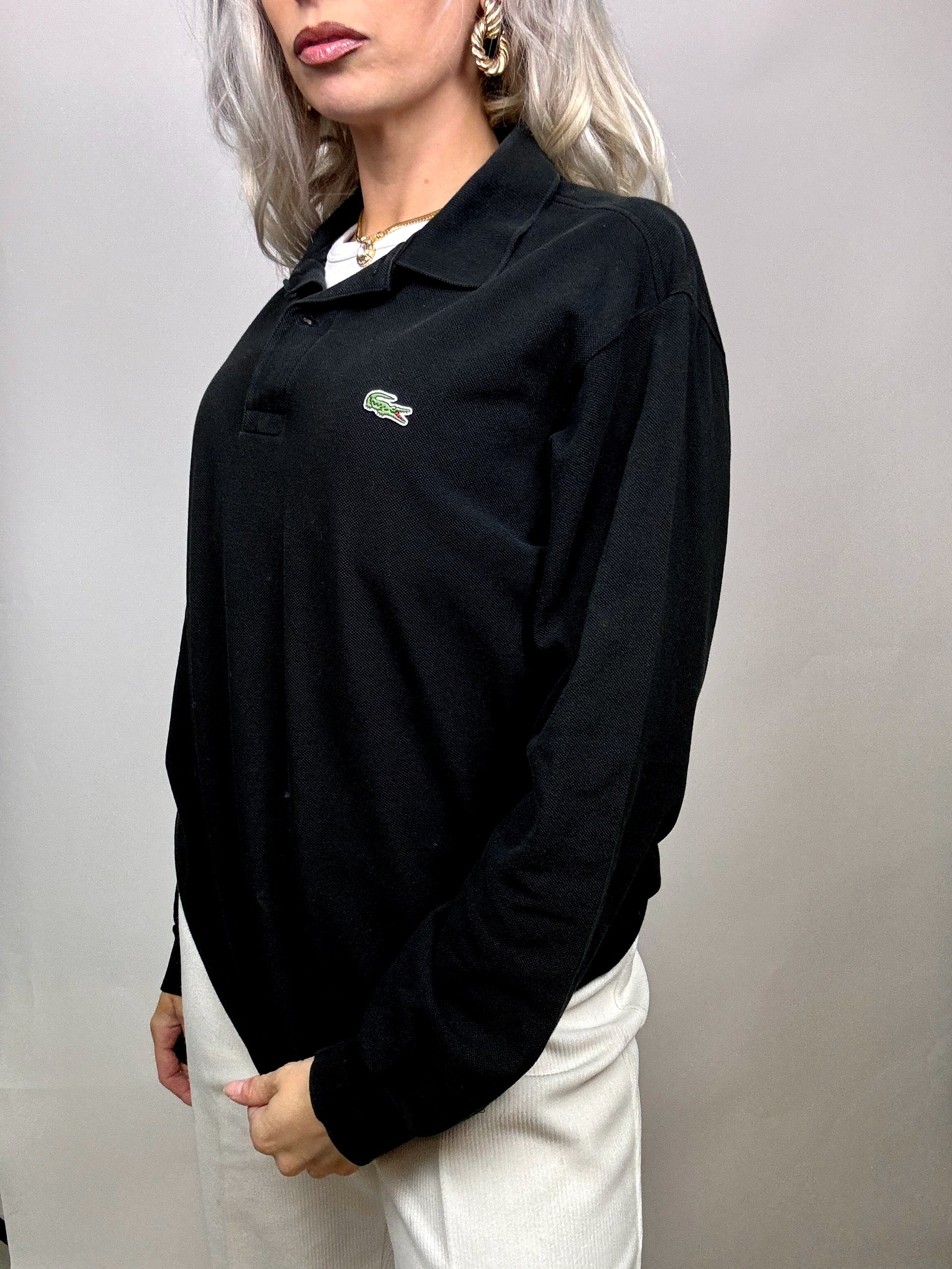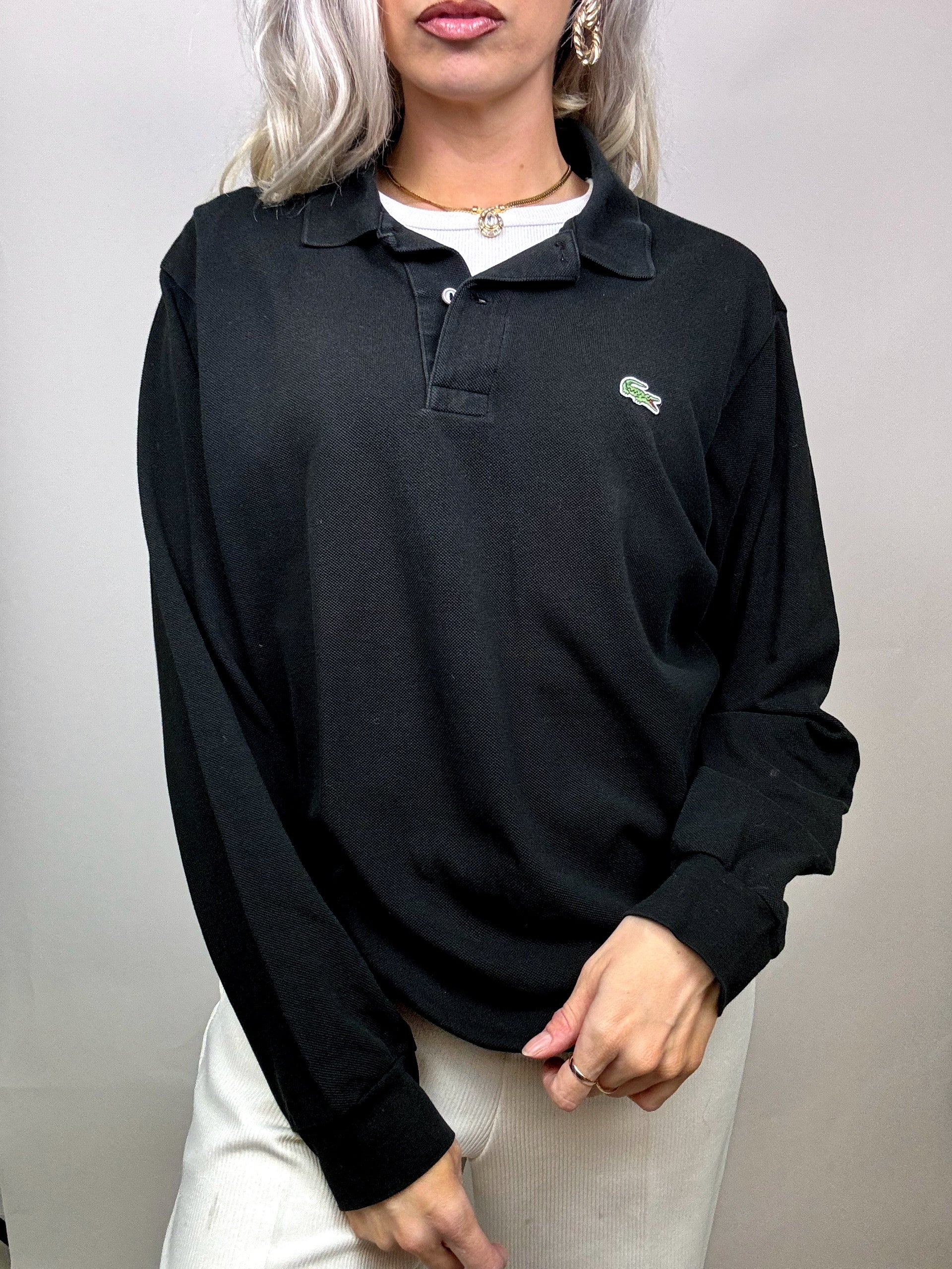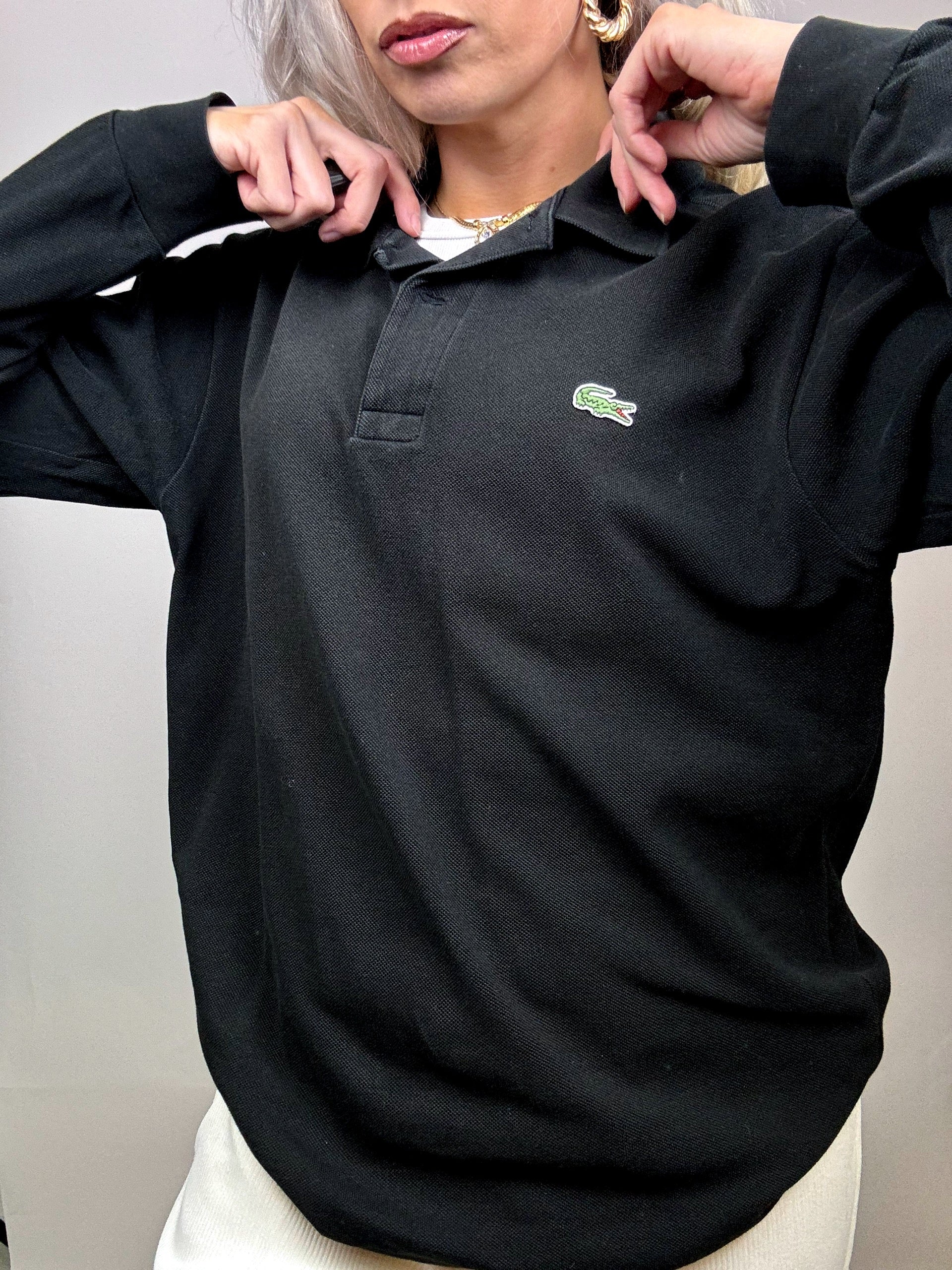 LACOSTE L Vintage black long-sleeved polo shirt
