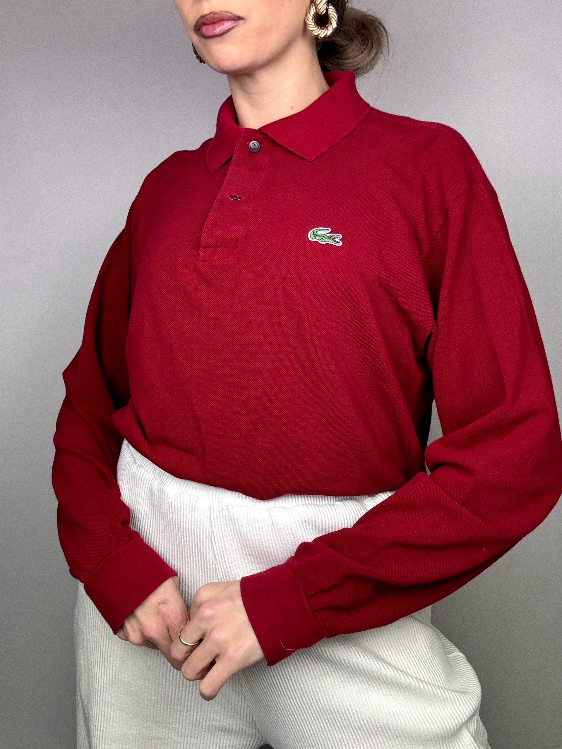 LACOSTE L Vintage red long-sleeved polo shirt