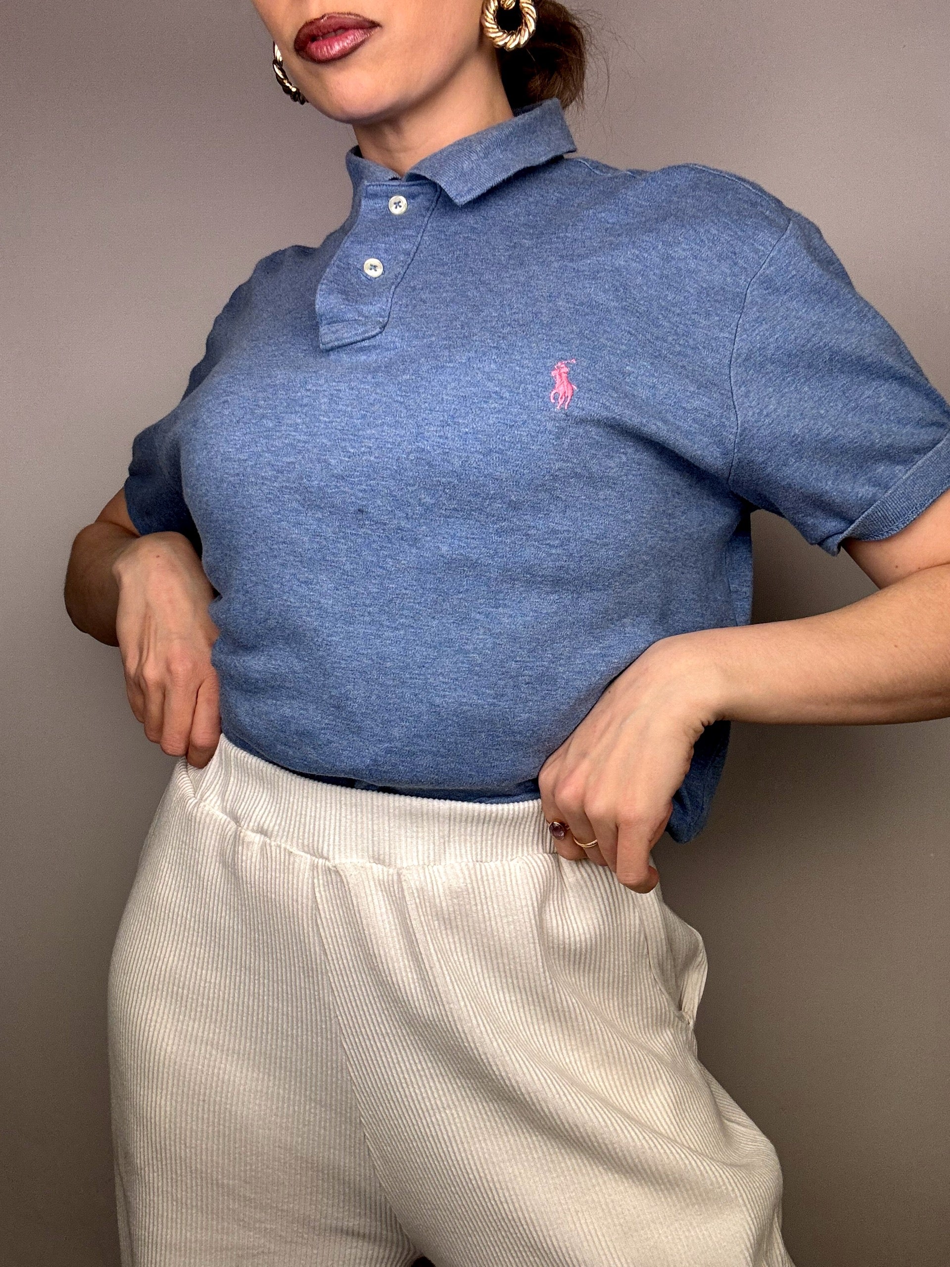 RALPH LAUREN M Vintage blue short-sleeved polo shirt