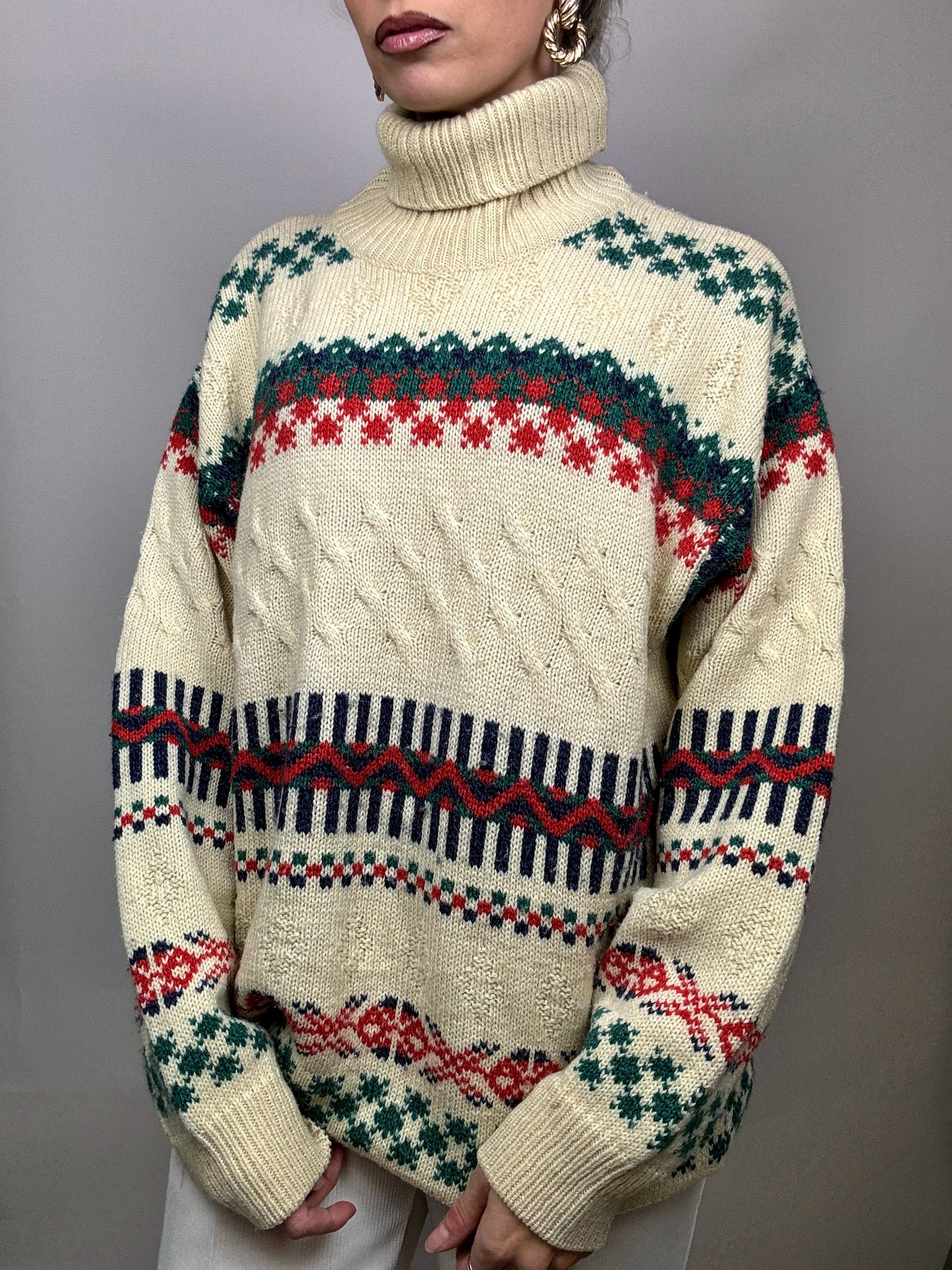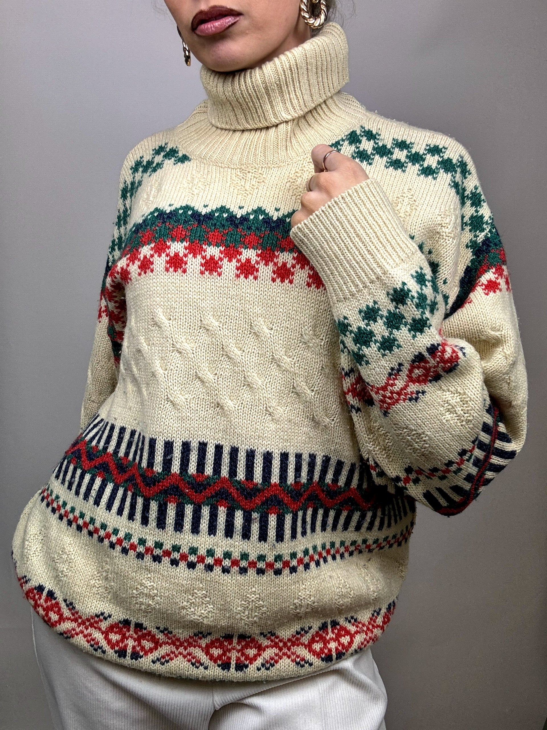 A super warm wool sweater, slightly oversized cut and with a very wintery pattern!