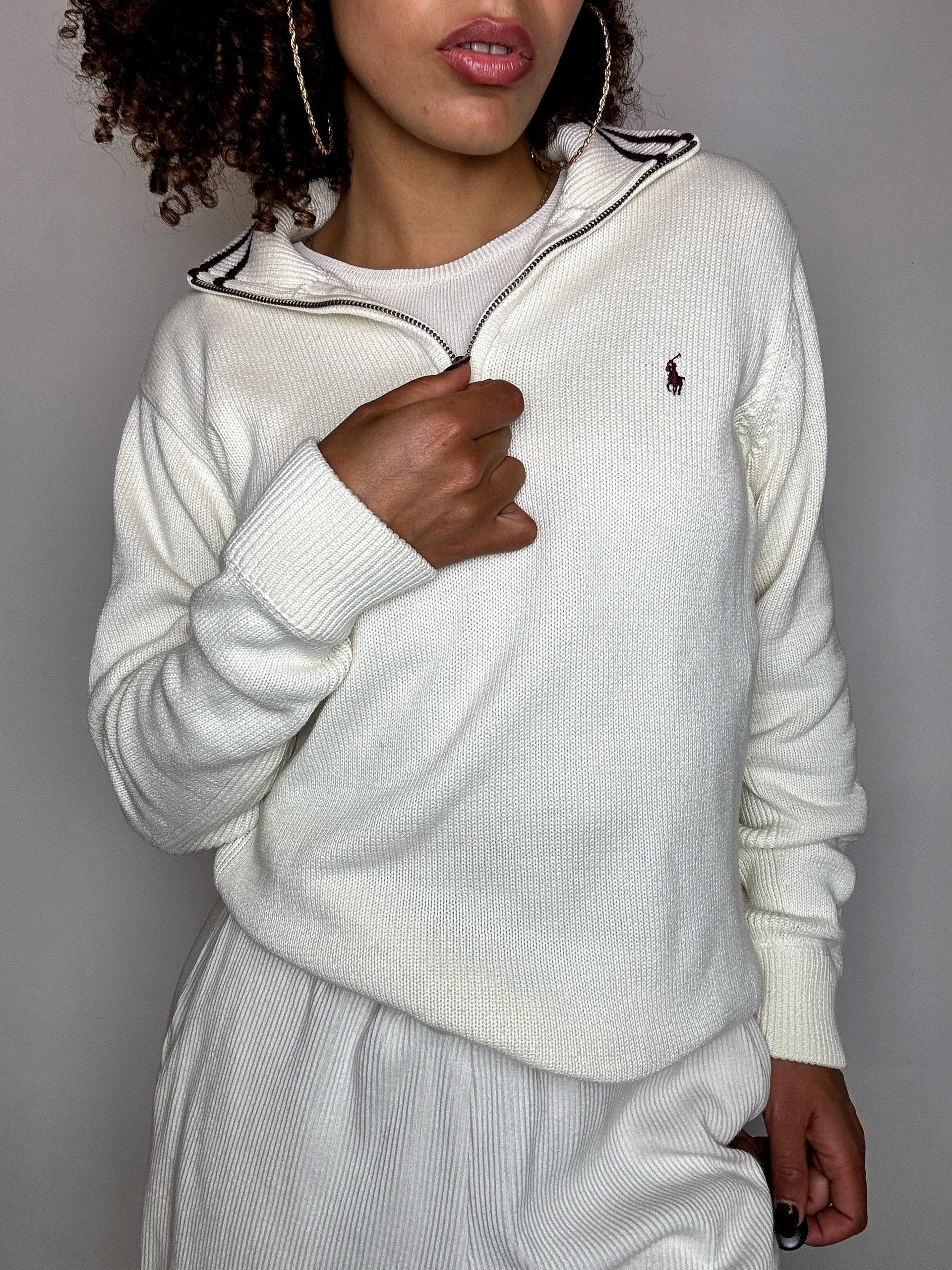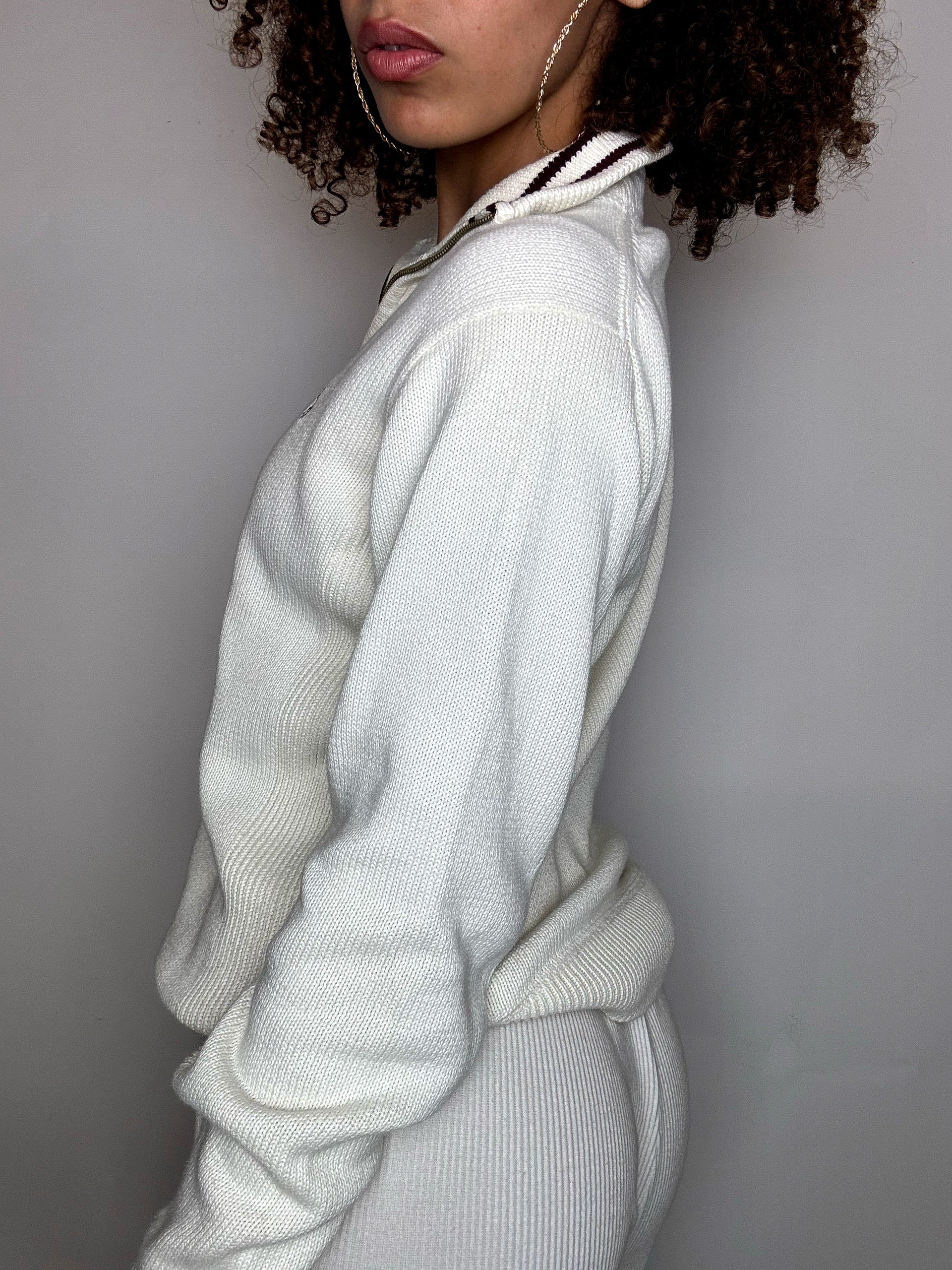 TOMMY HILFIGER M vintage beige zip-neck fine sweater