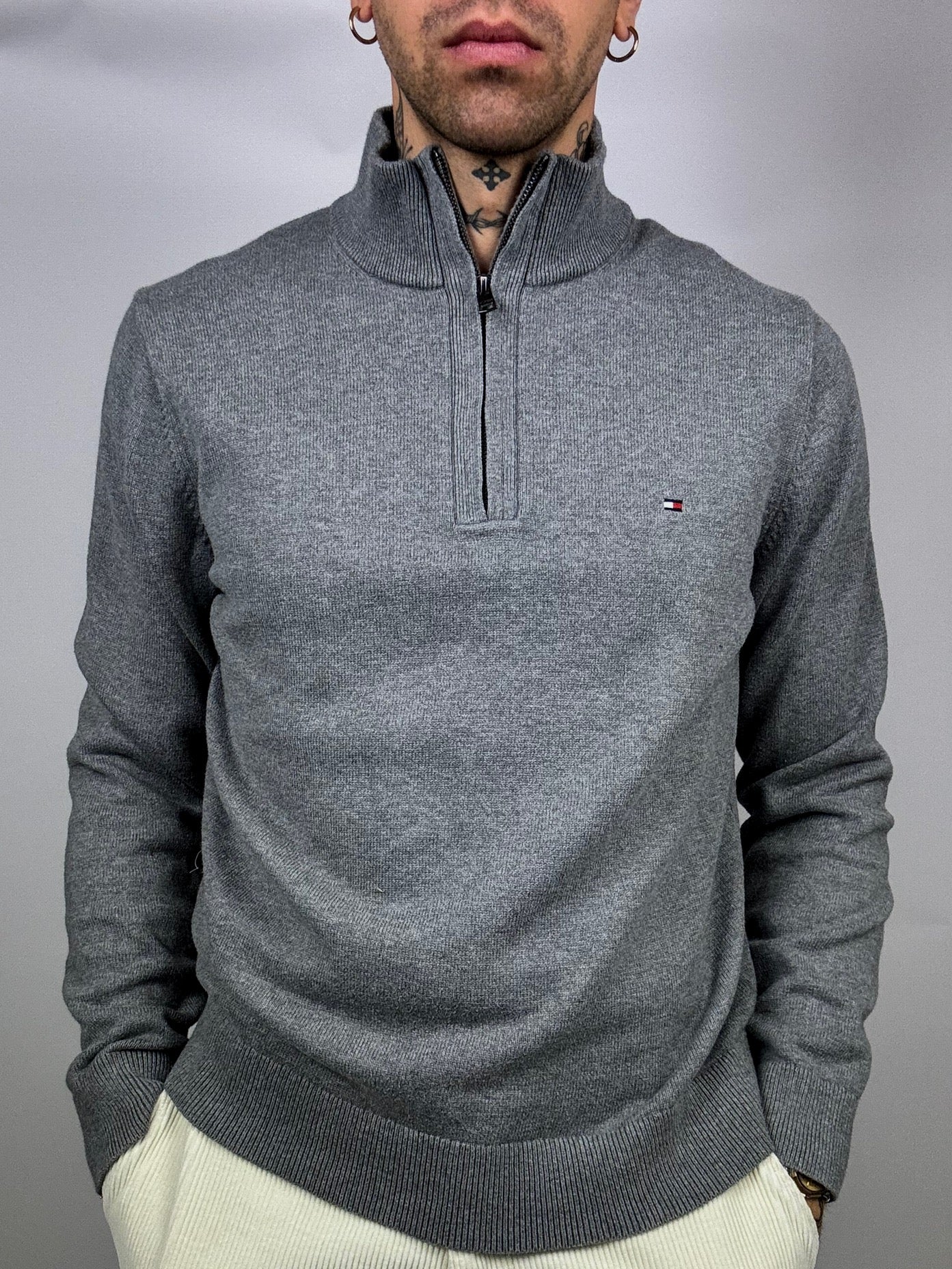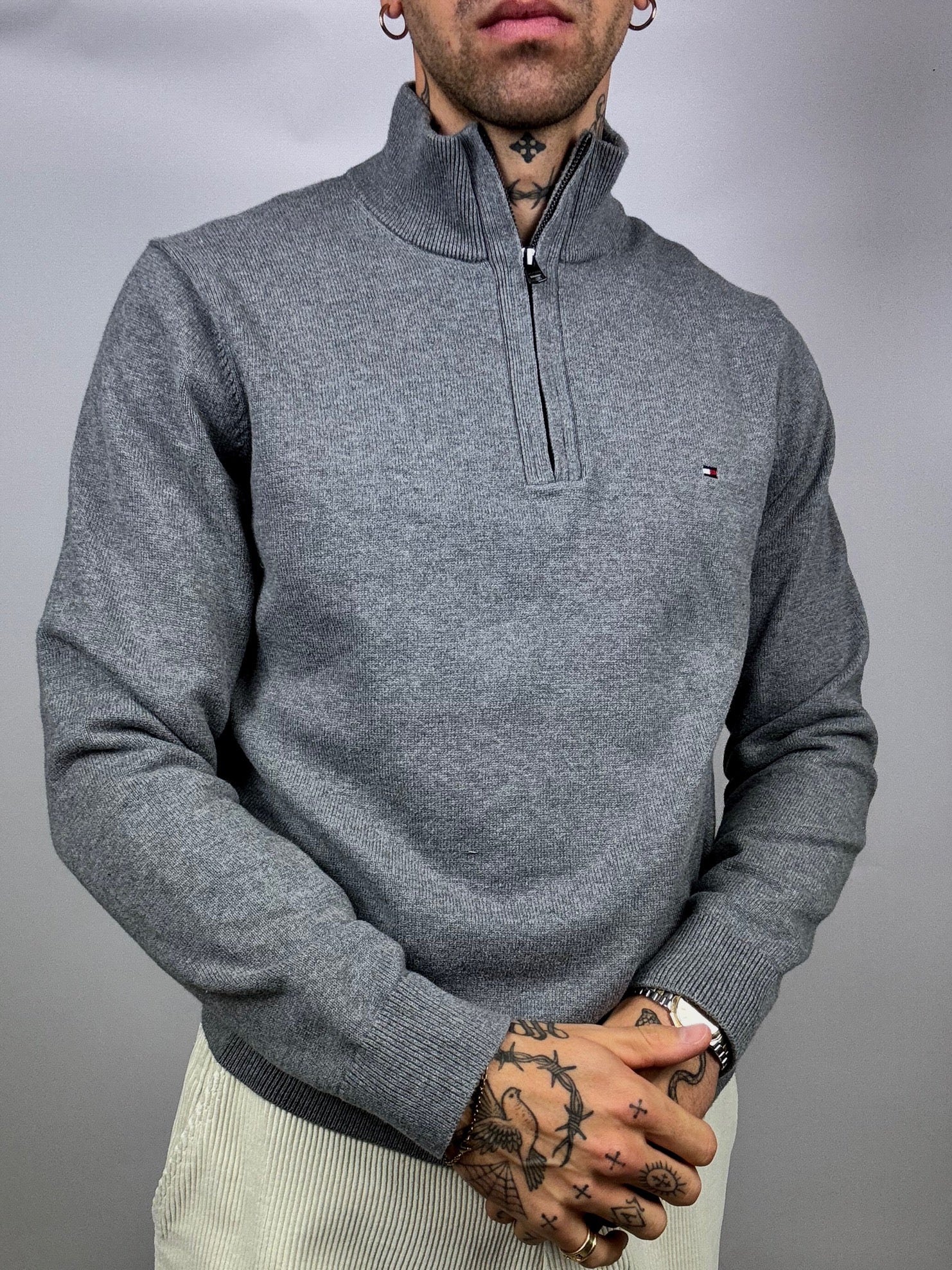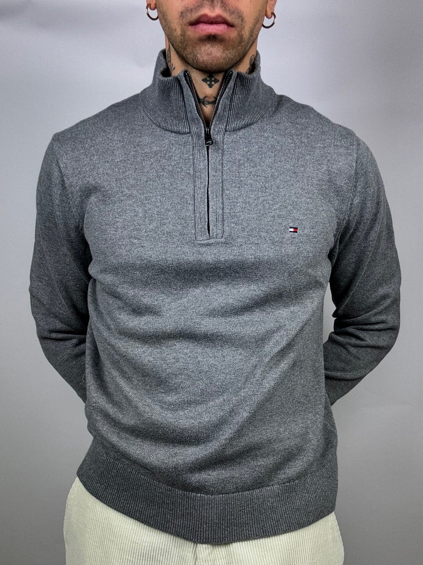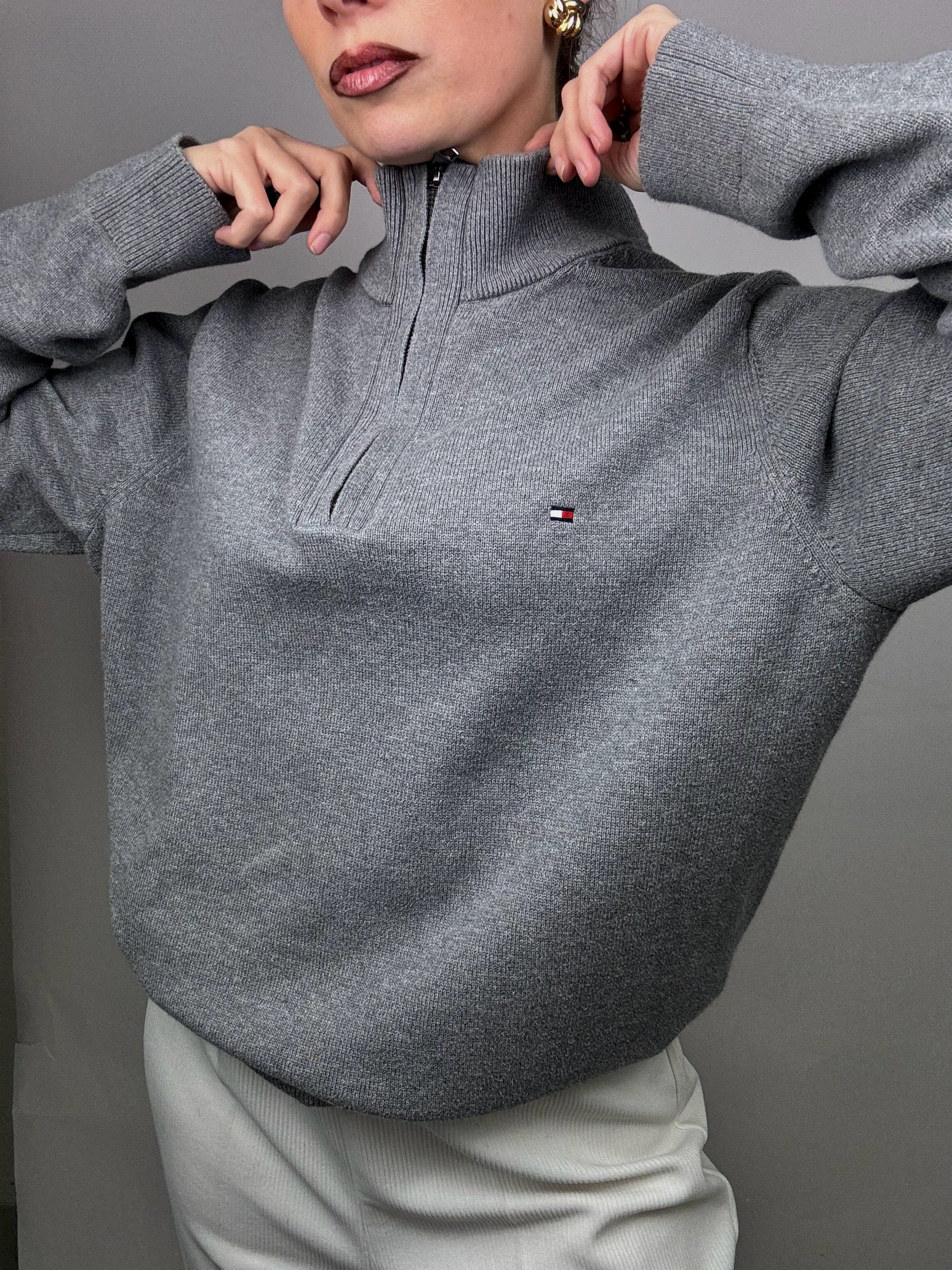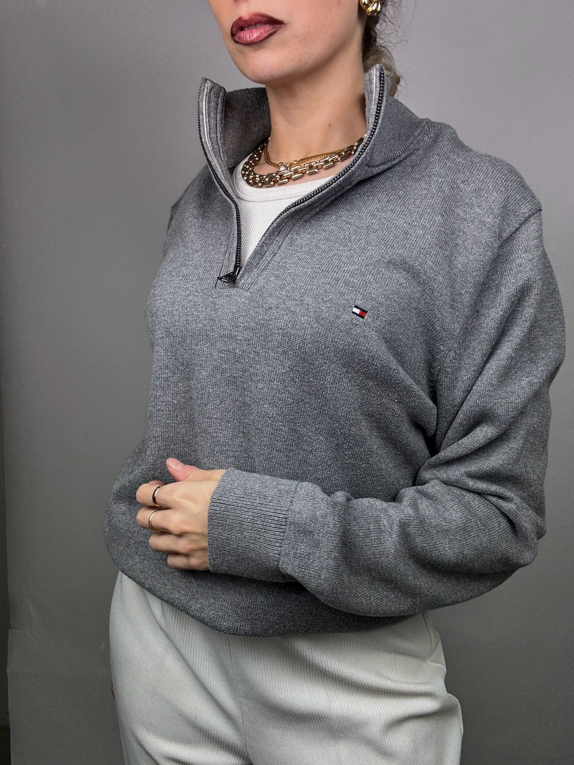 Vintage TOMMY HILFIGER XL gray zip-neck sweater