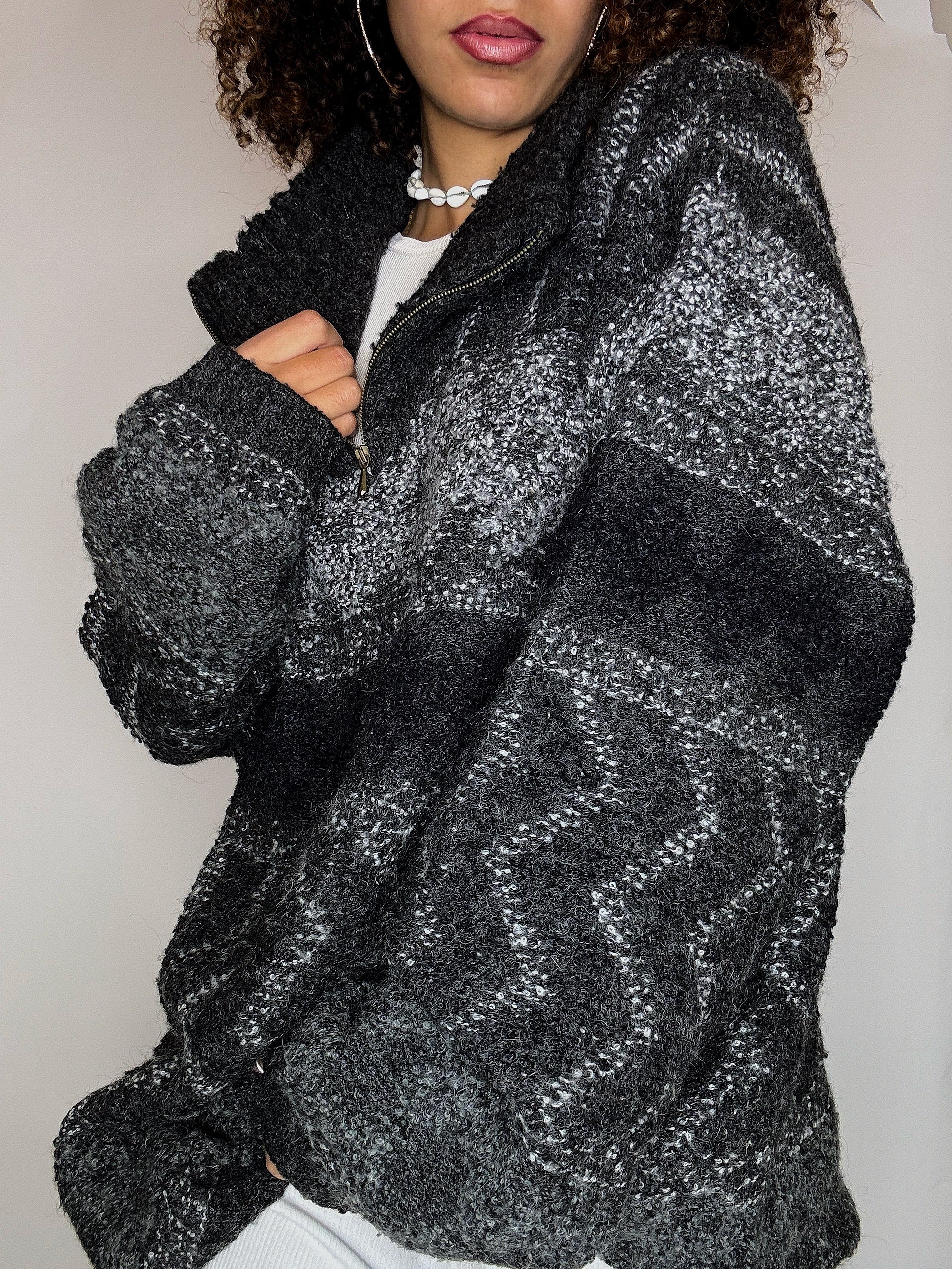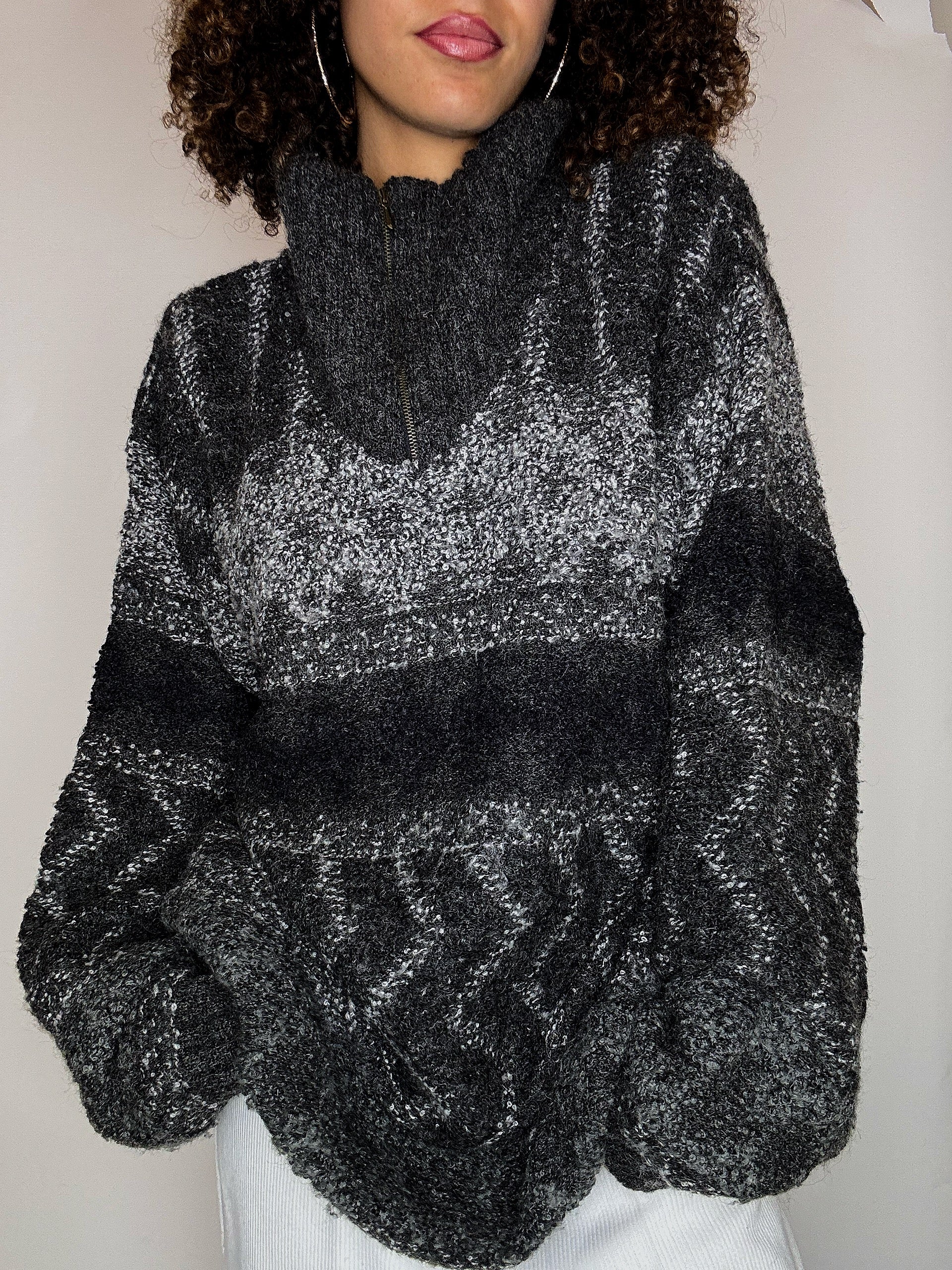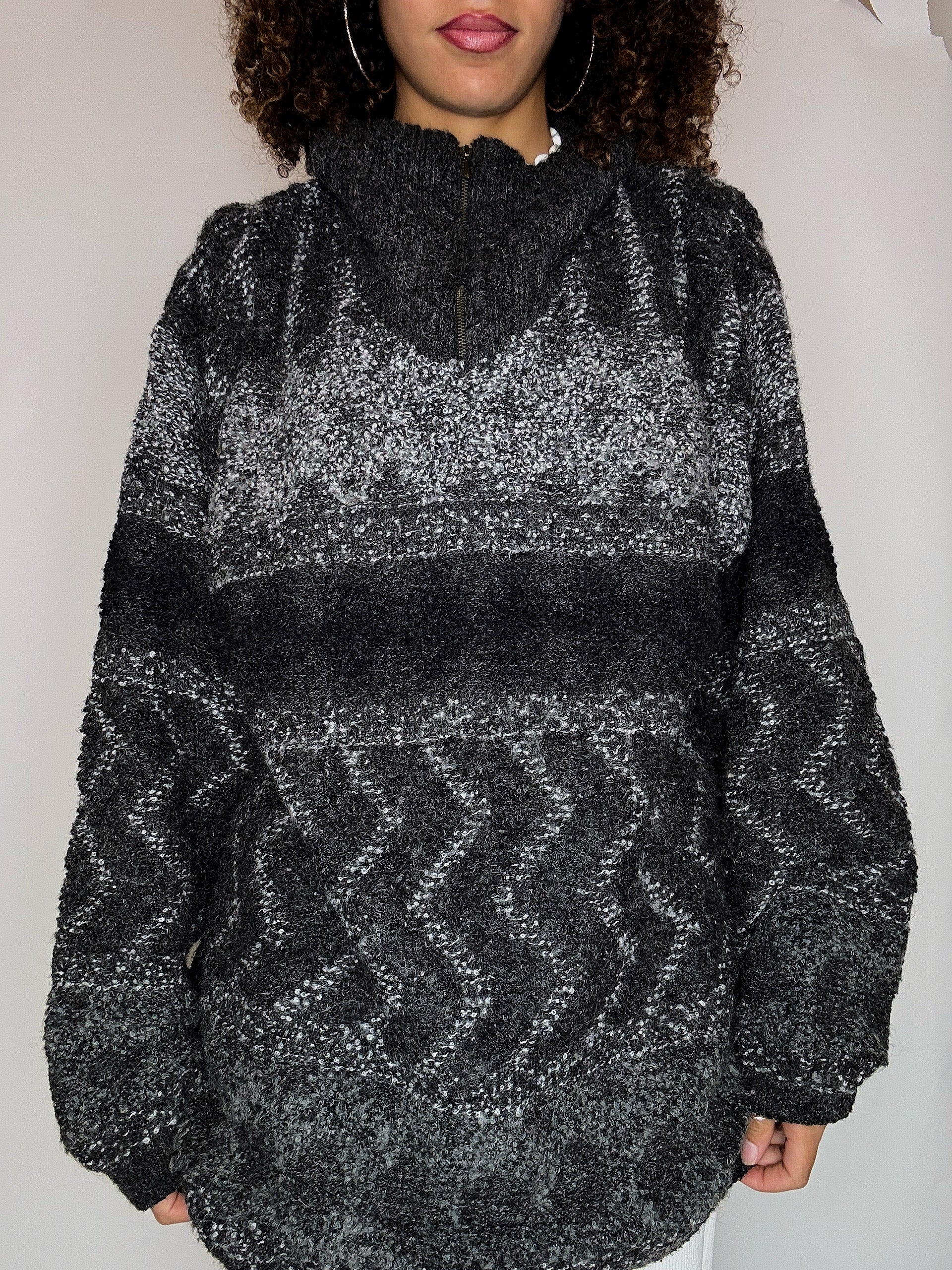 Pull cosy en maille gris XL vintage