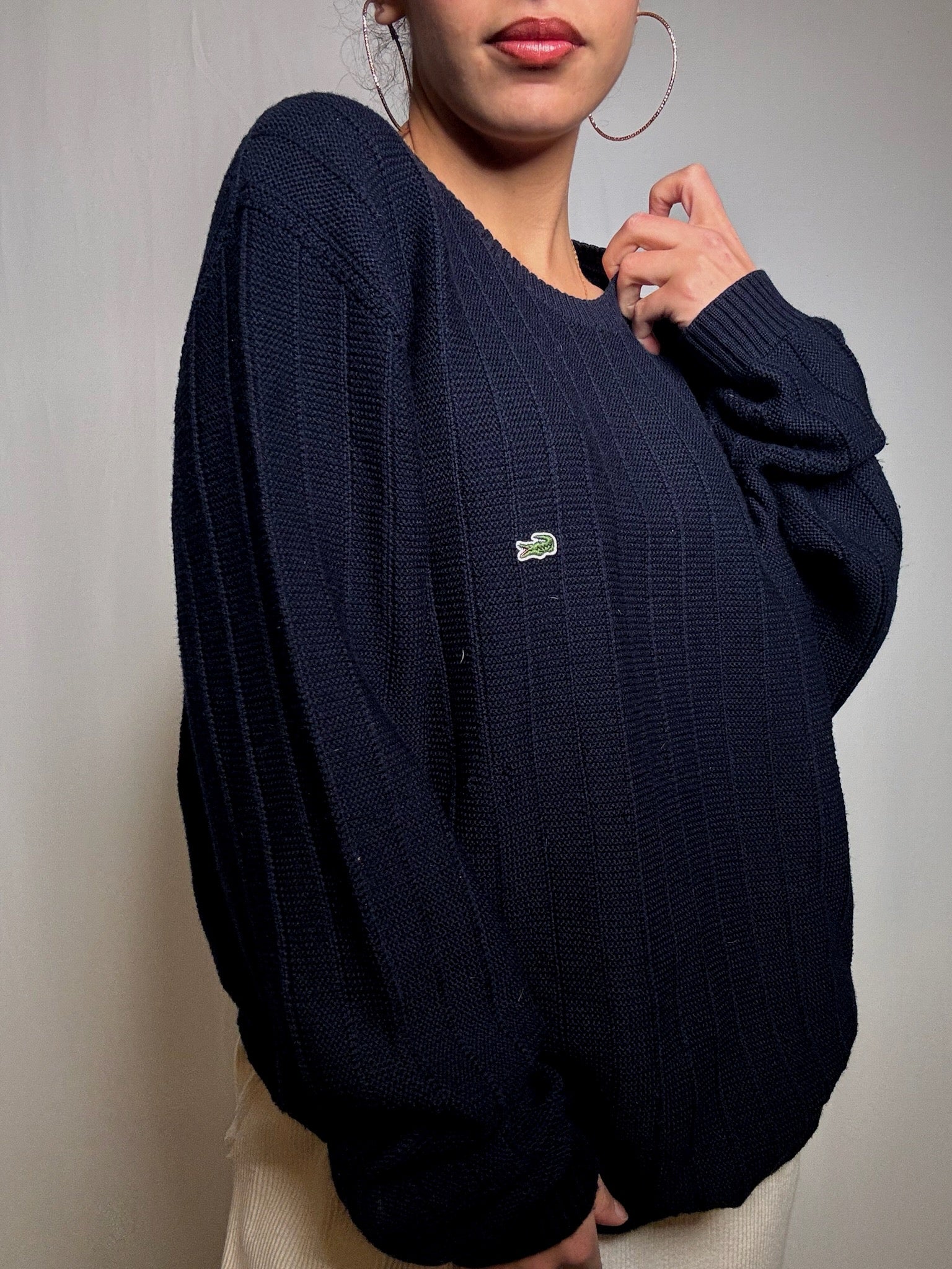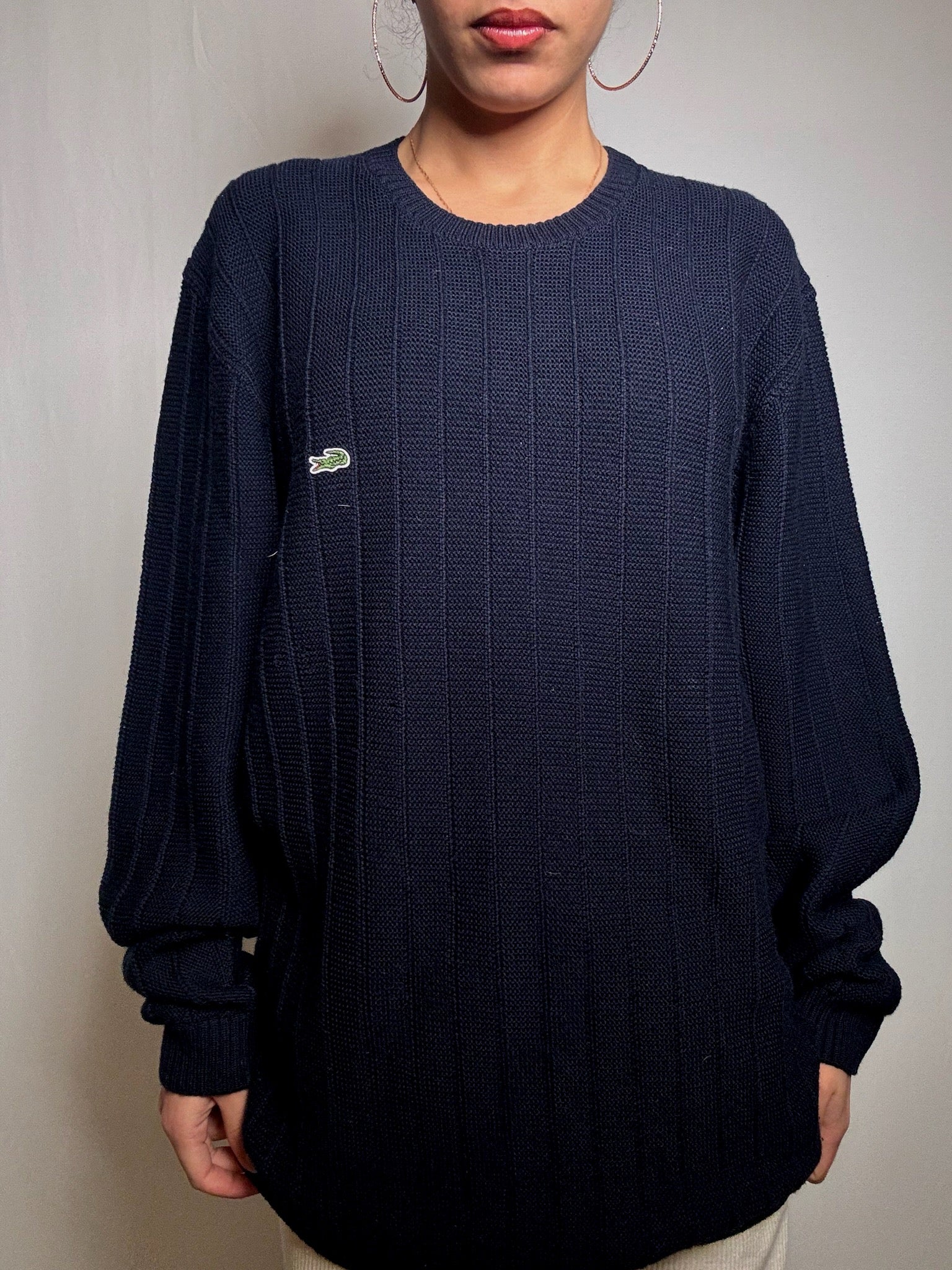 Pull en maille marine Lacoste XL vintage