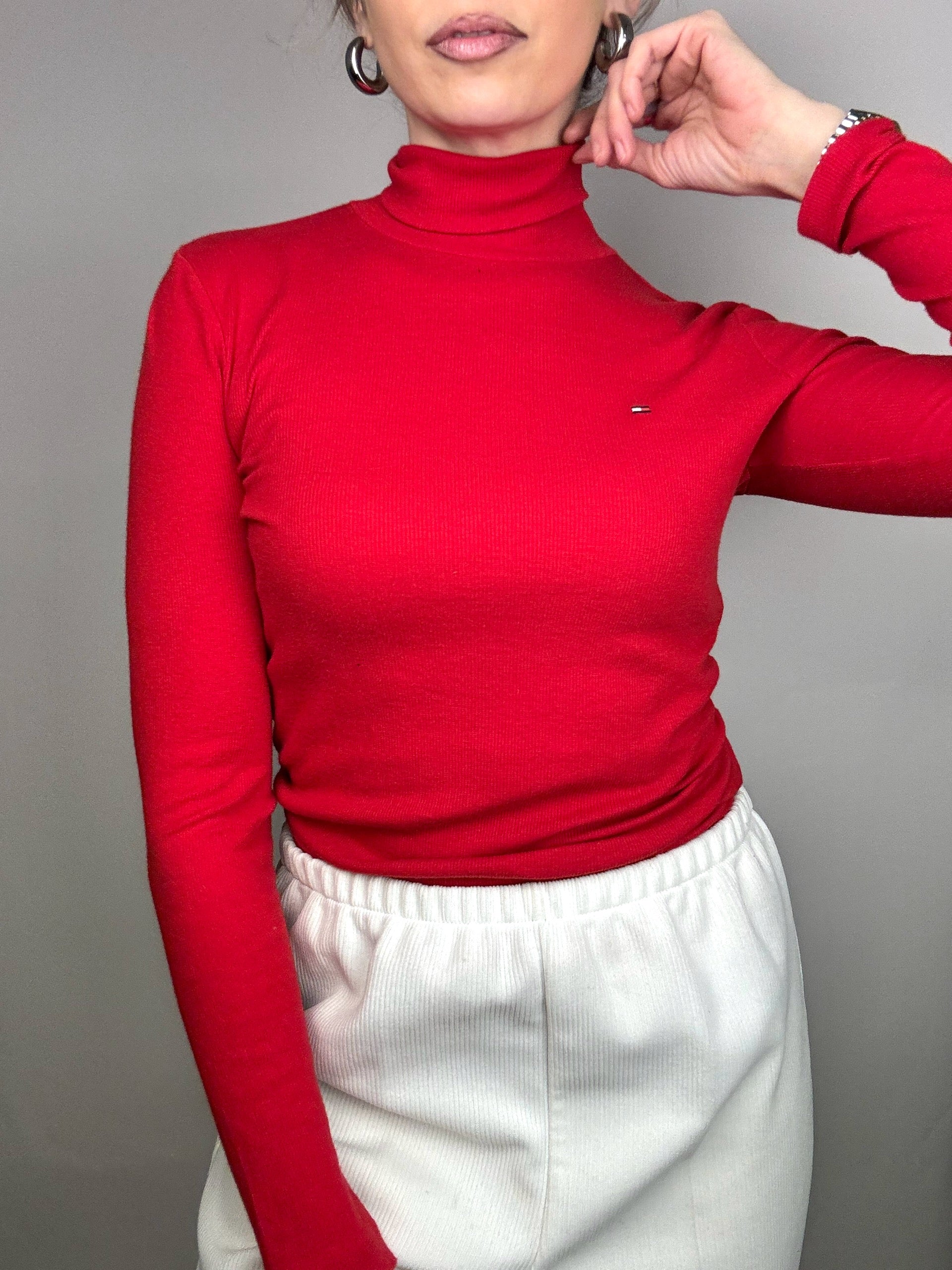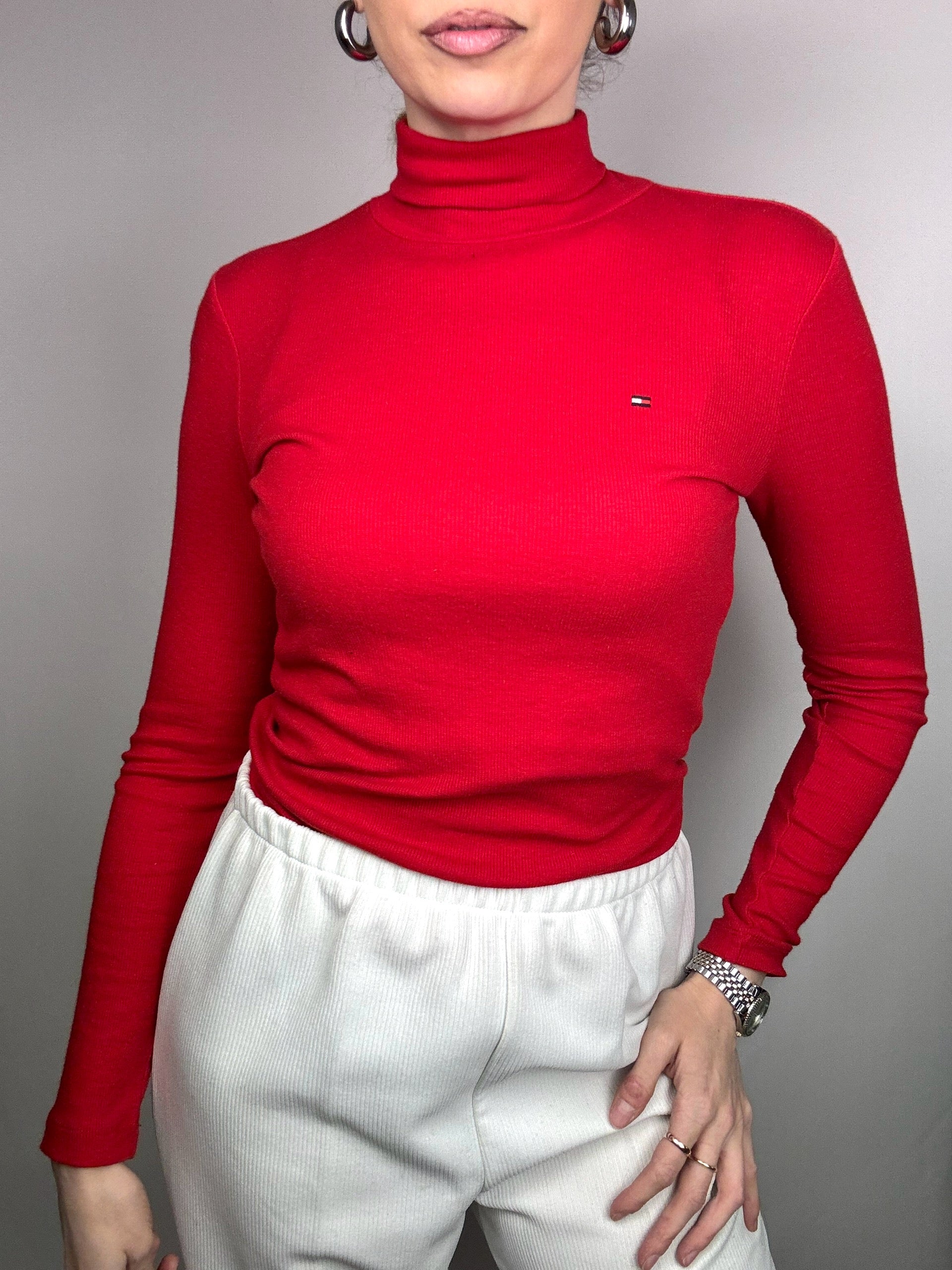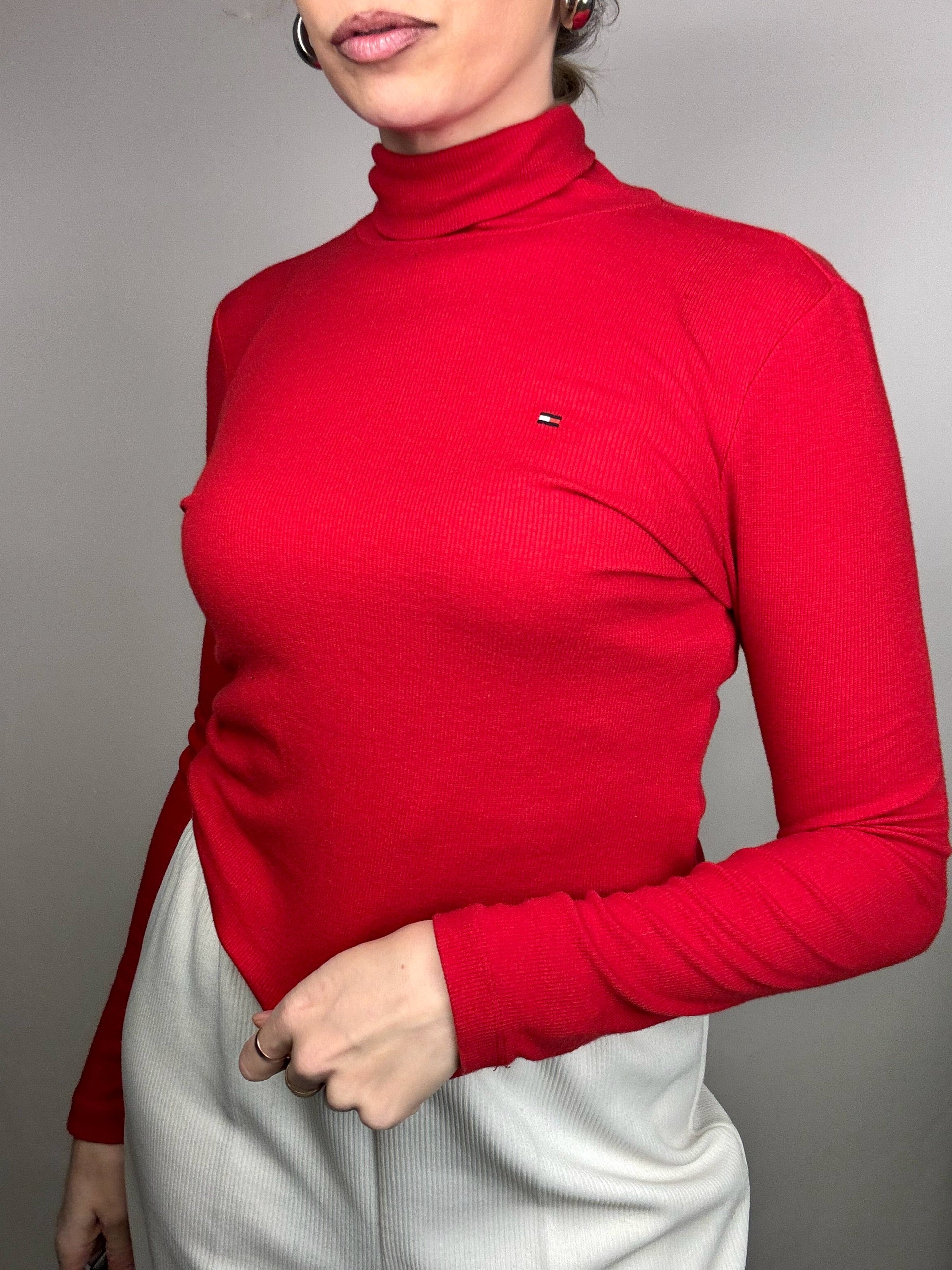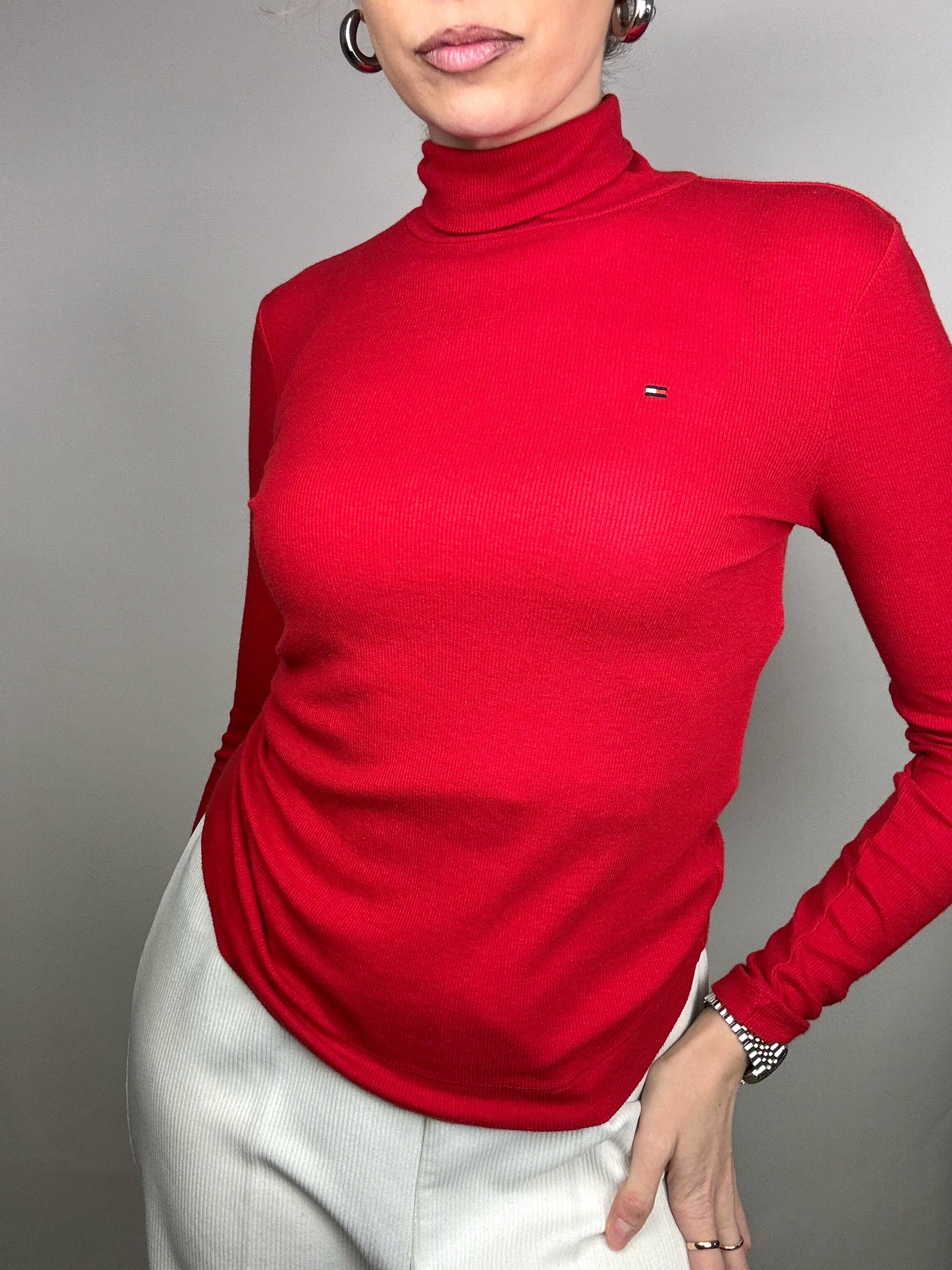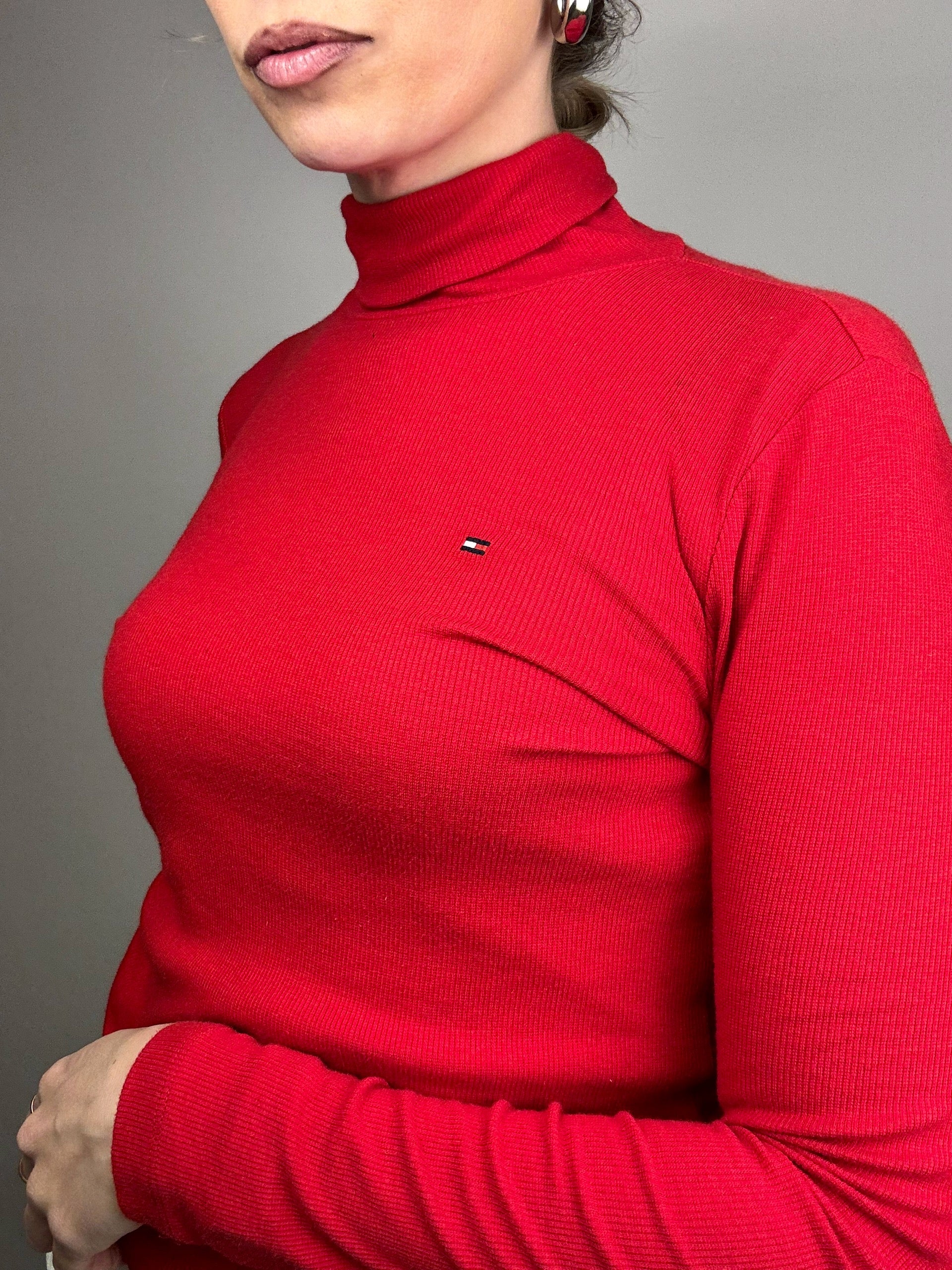 Vintage Tommy Hilfiger S Red Turtleneck Slim Fit Sweater