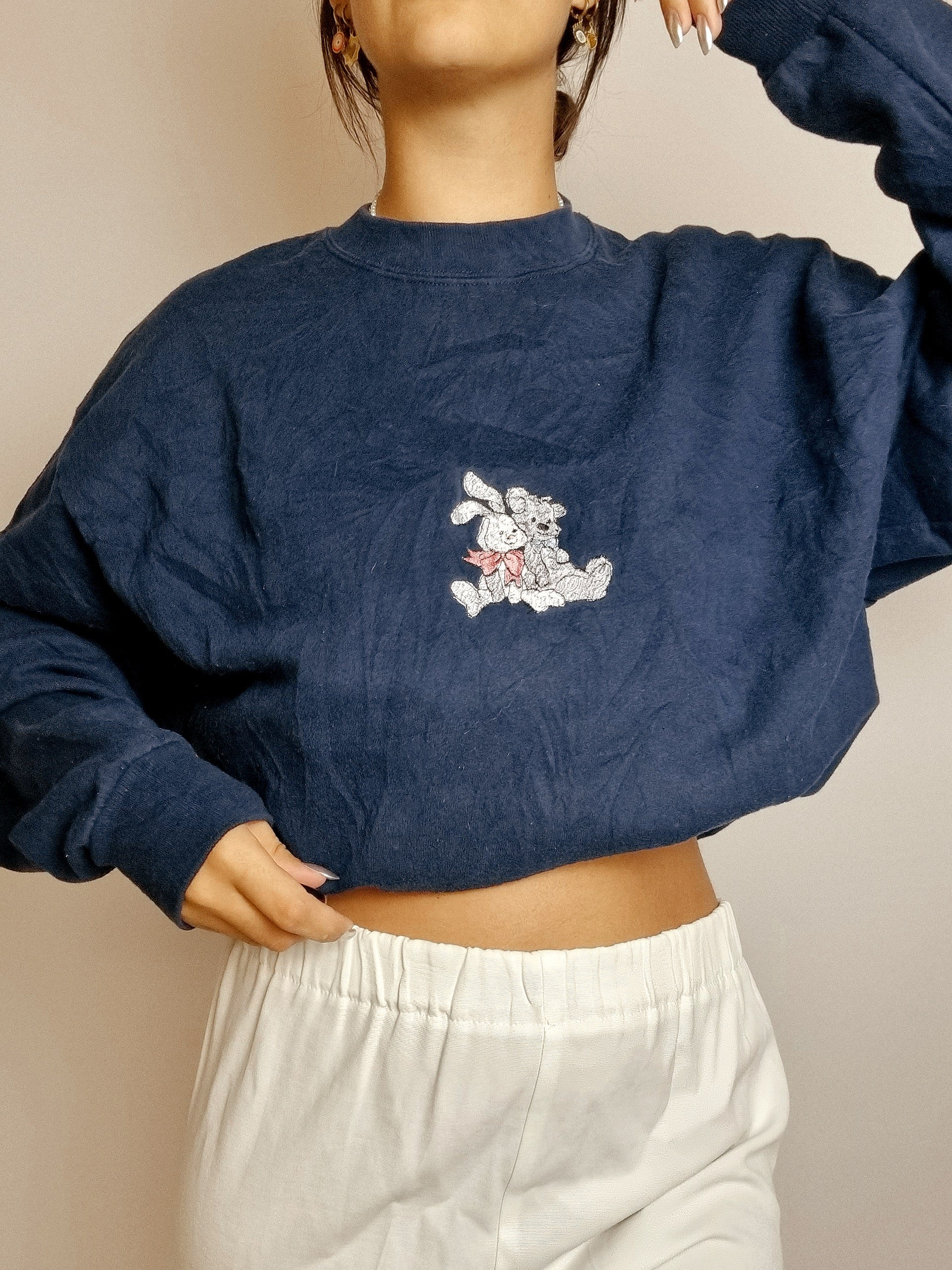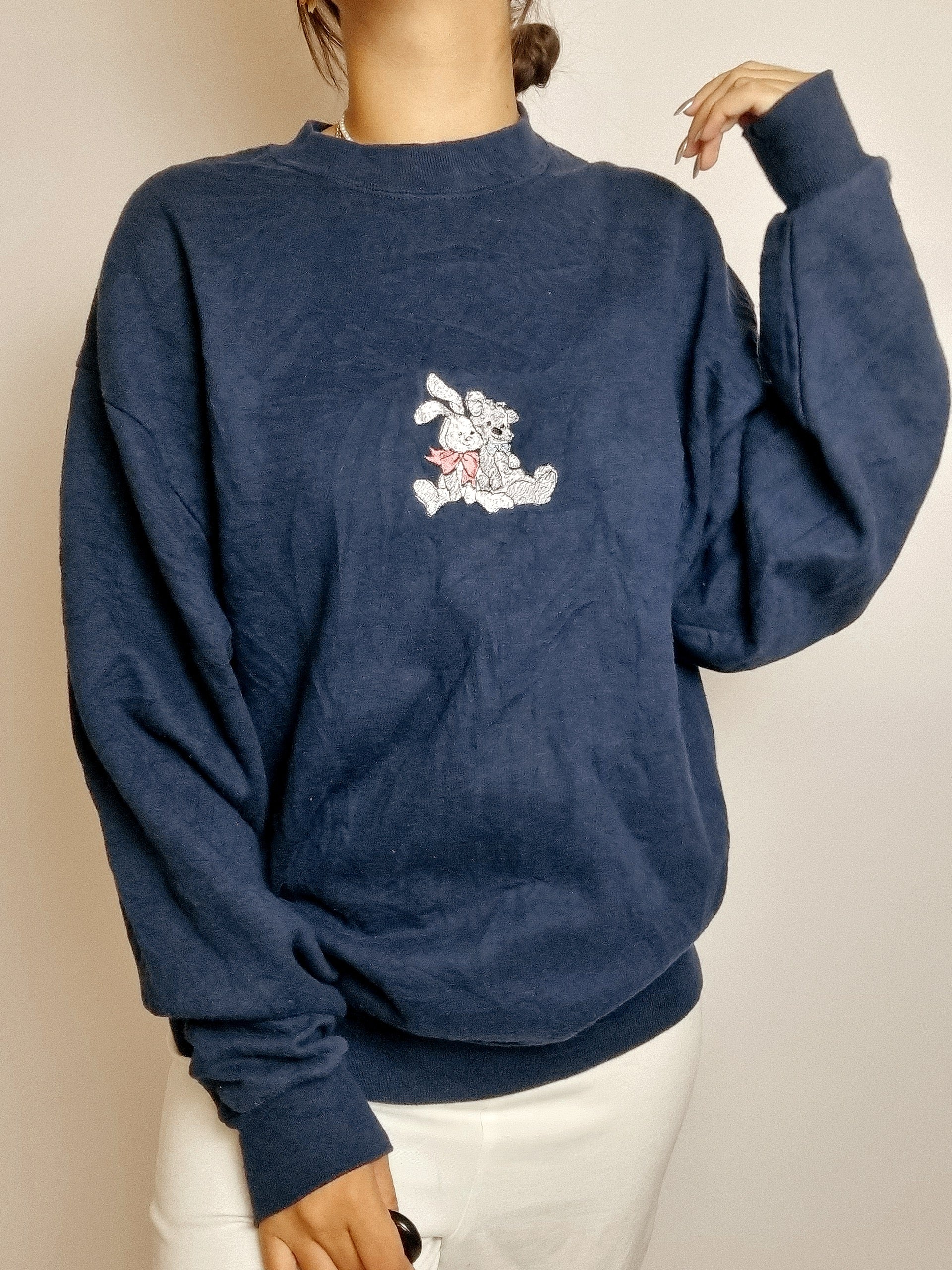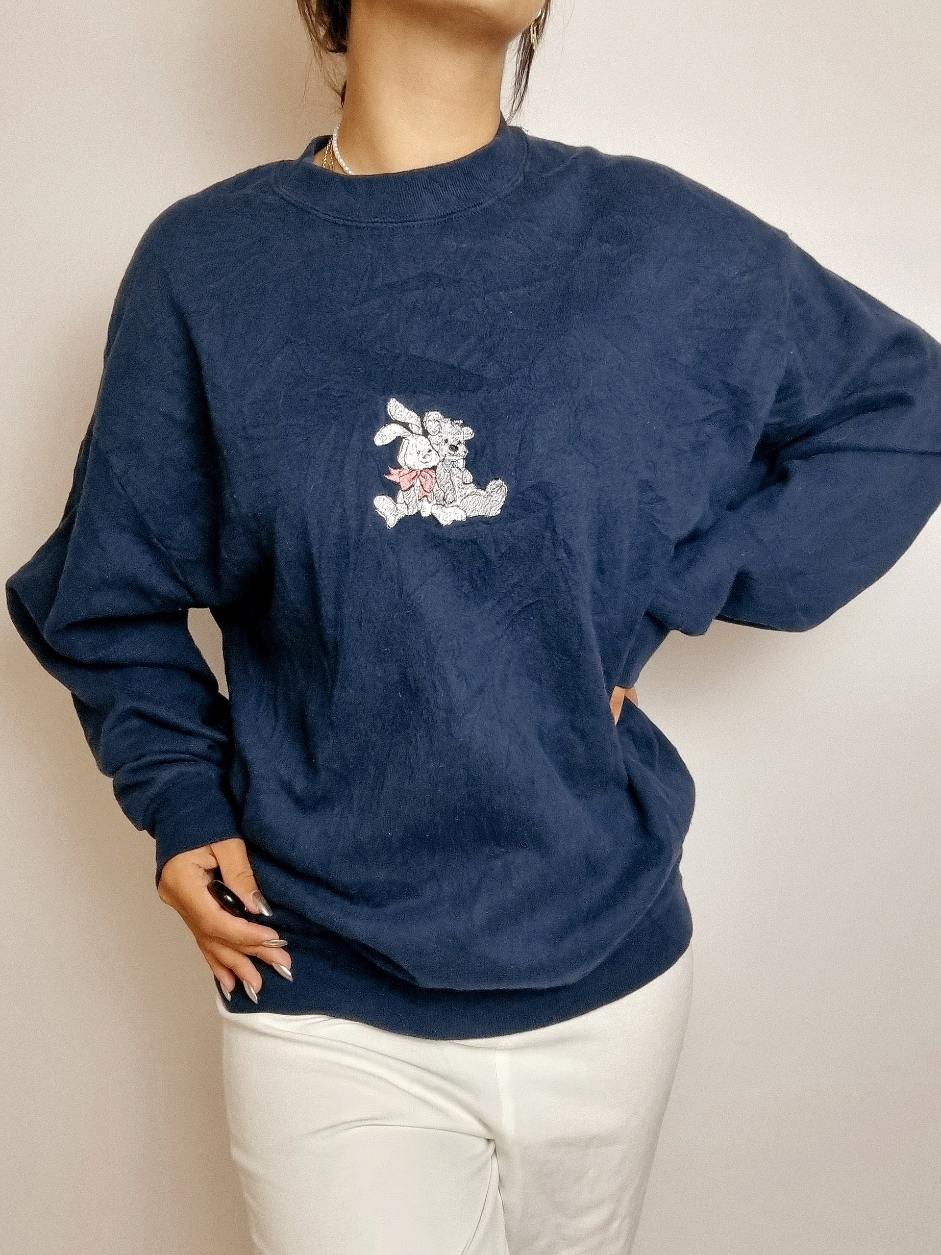 American vintage dark blue embroidered sweater L