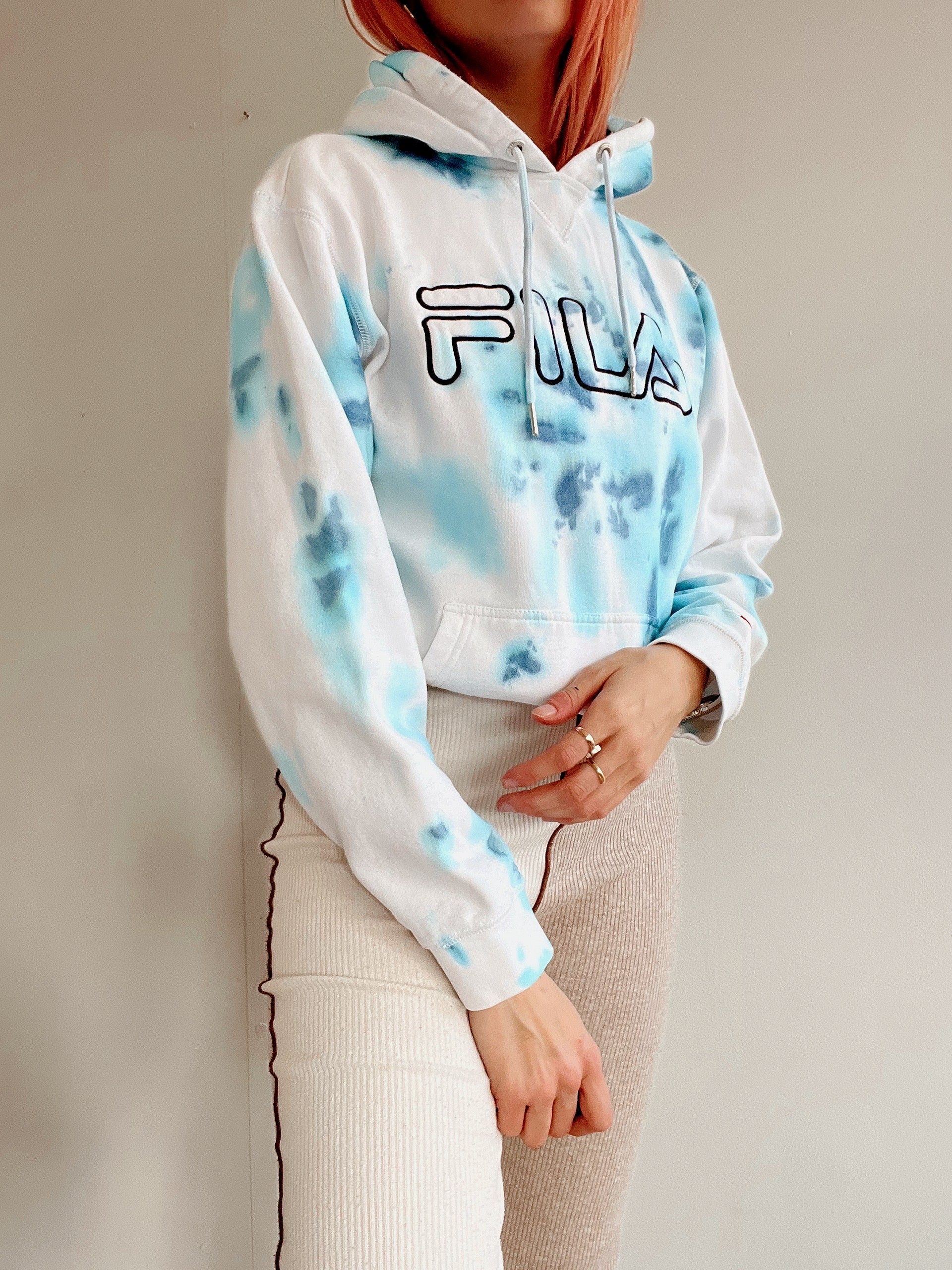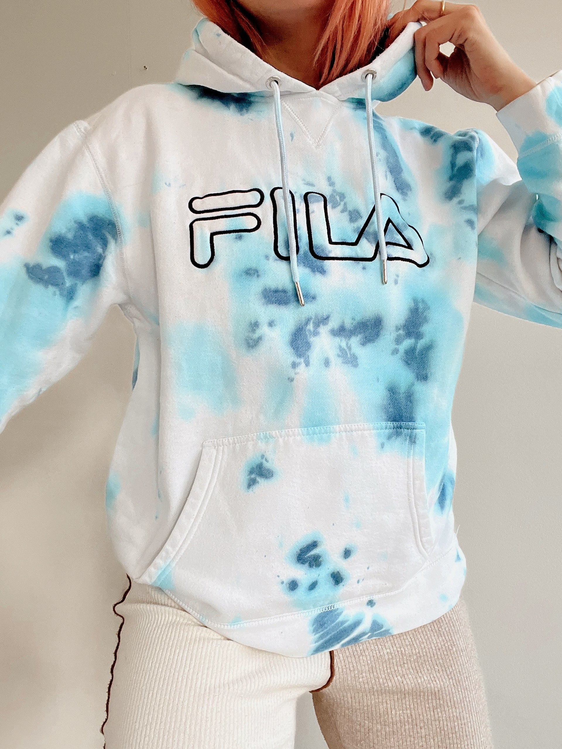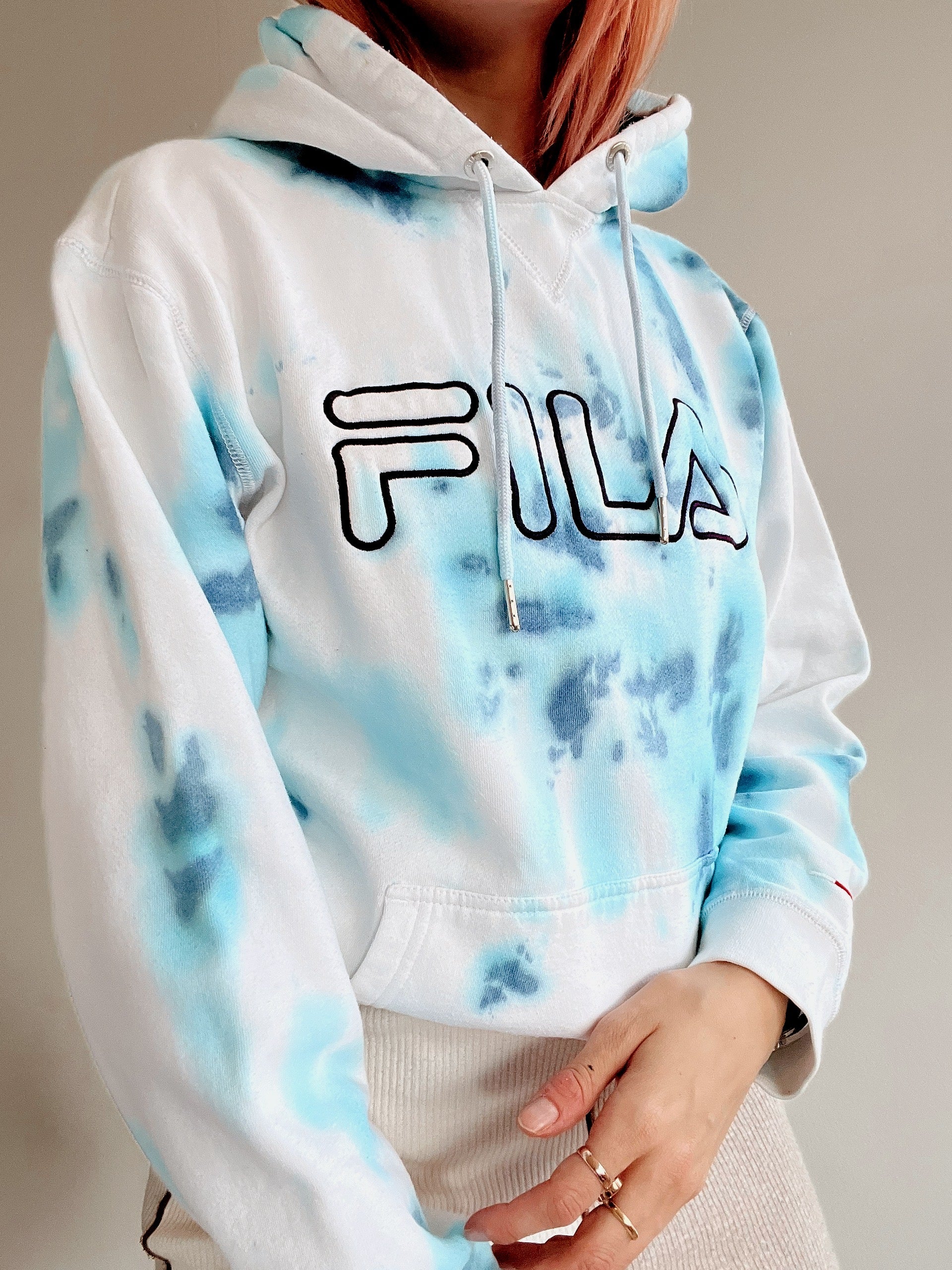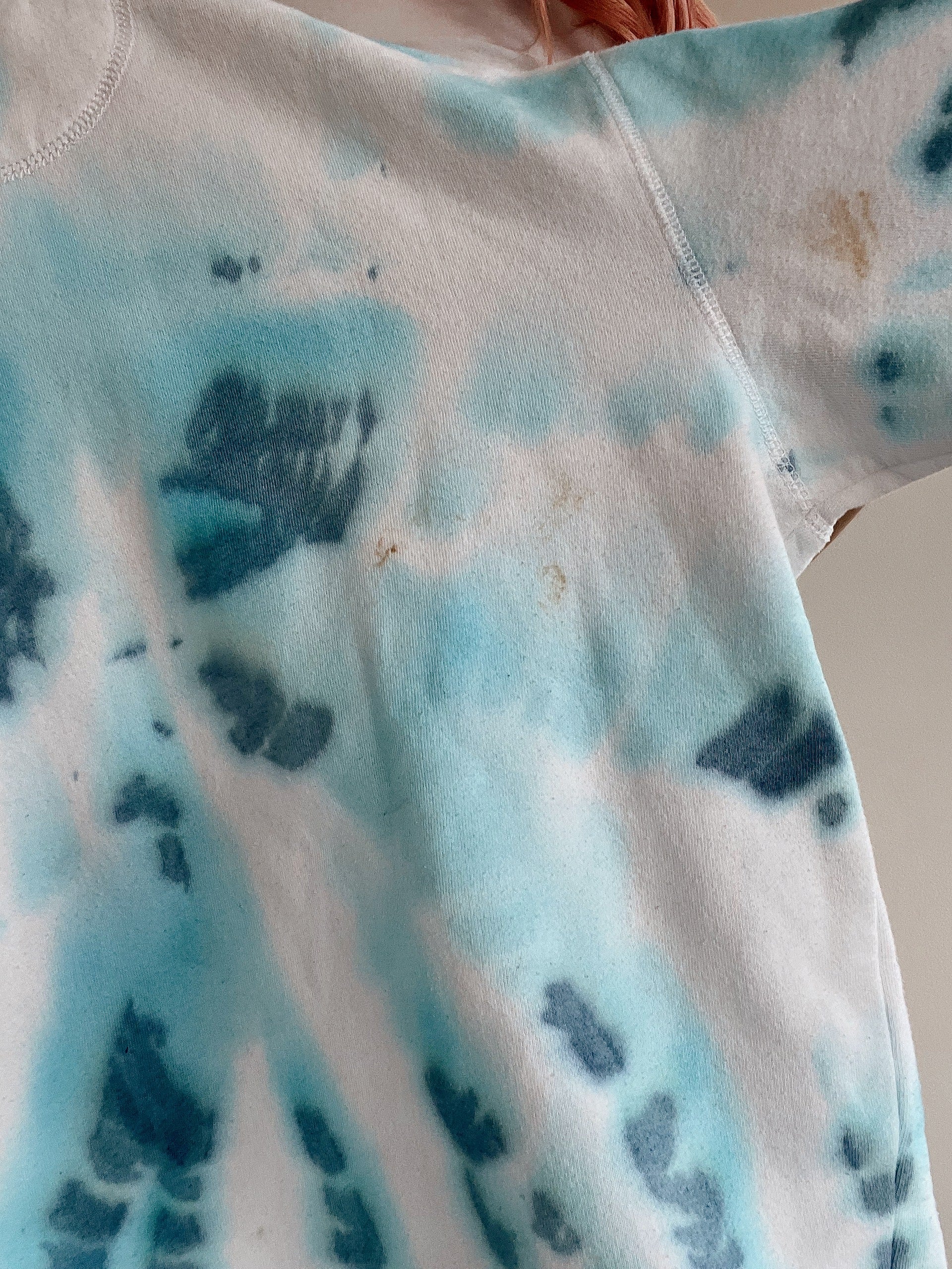 Good condition, but the item may contain small stains because all tie and dye products have been upcycled to camouflage a small stain so as not to throw away the outfit.