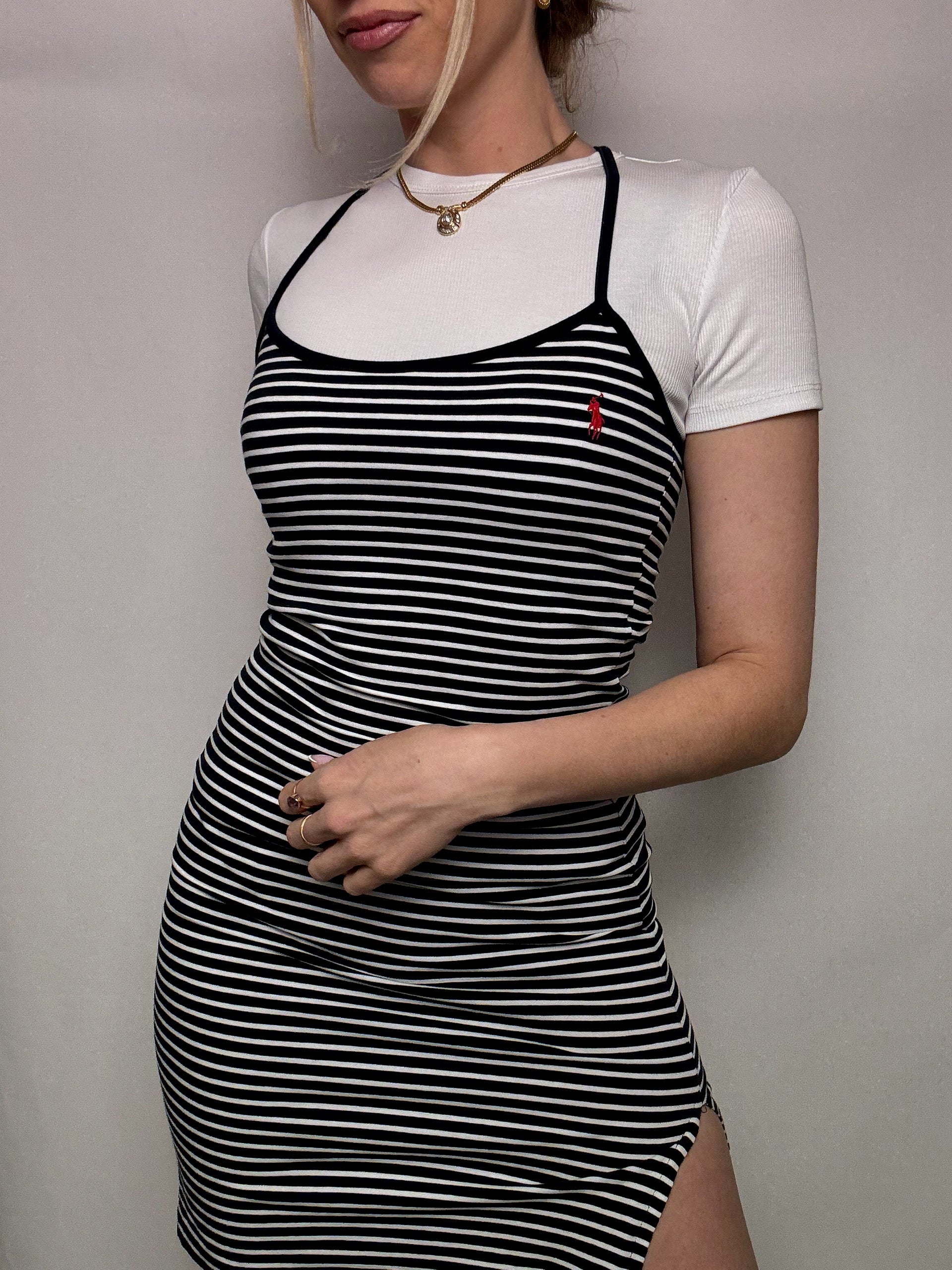 Pas trop courte, une fente vient joliement terminer cette pièce, au dos les bretelles se croisent pour un look plus féminin !