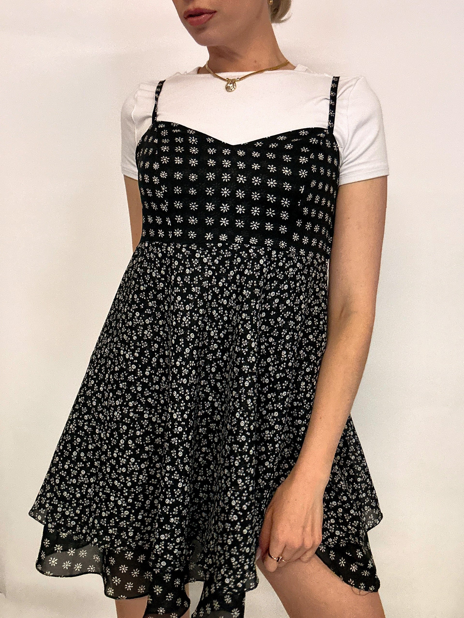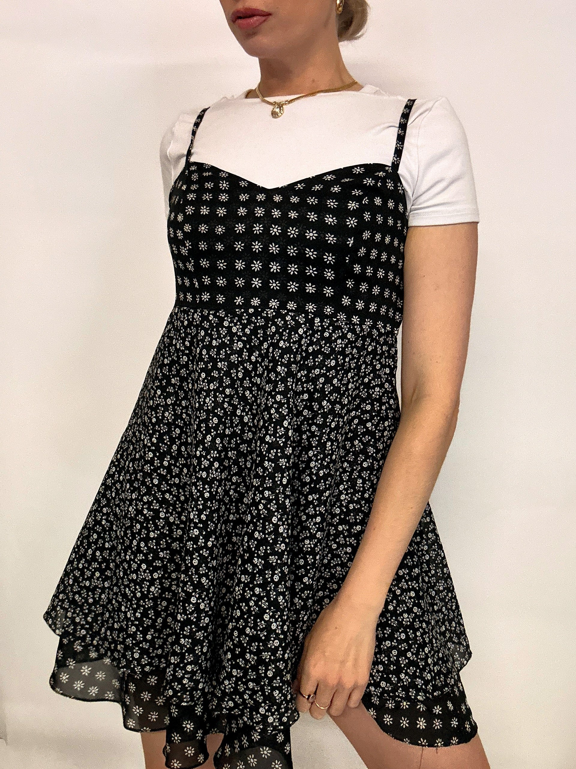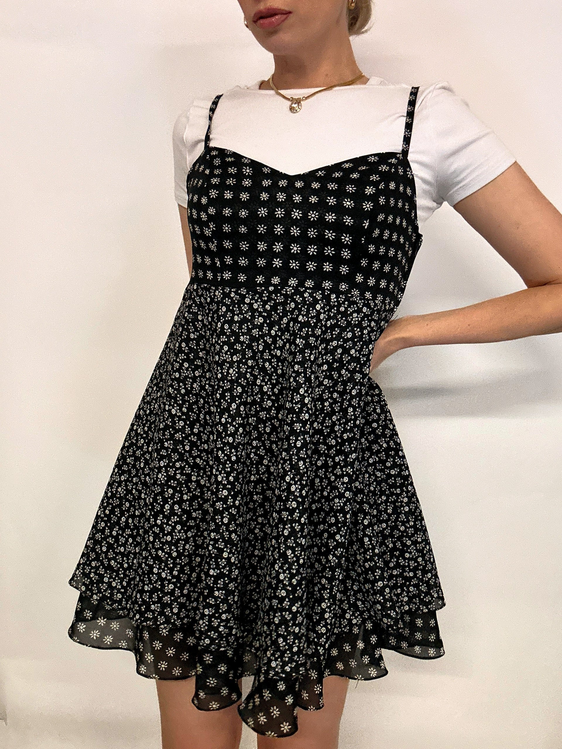 Black and white floral dress S/M vintage