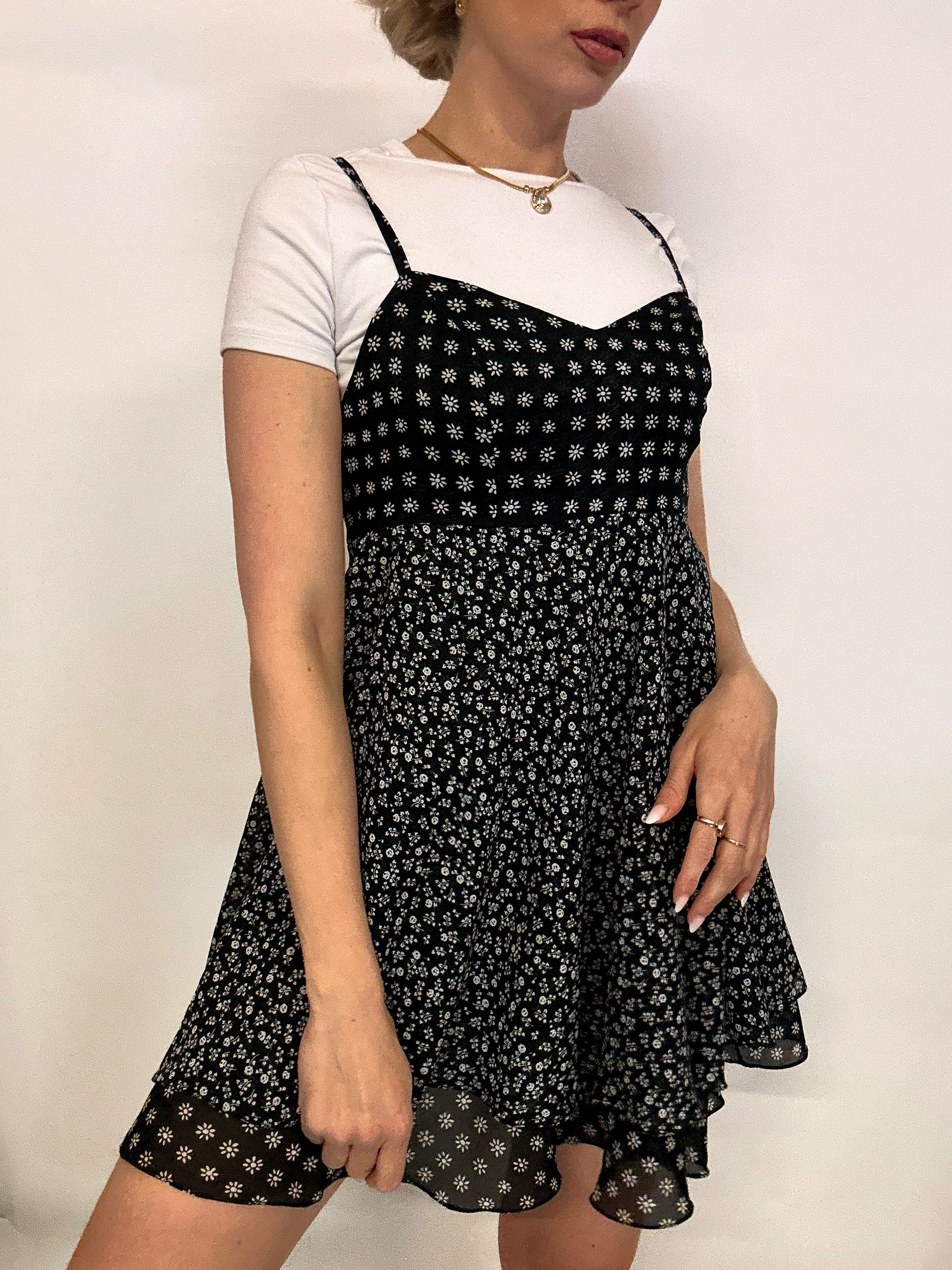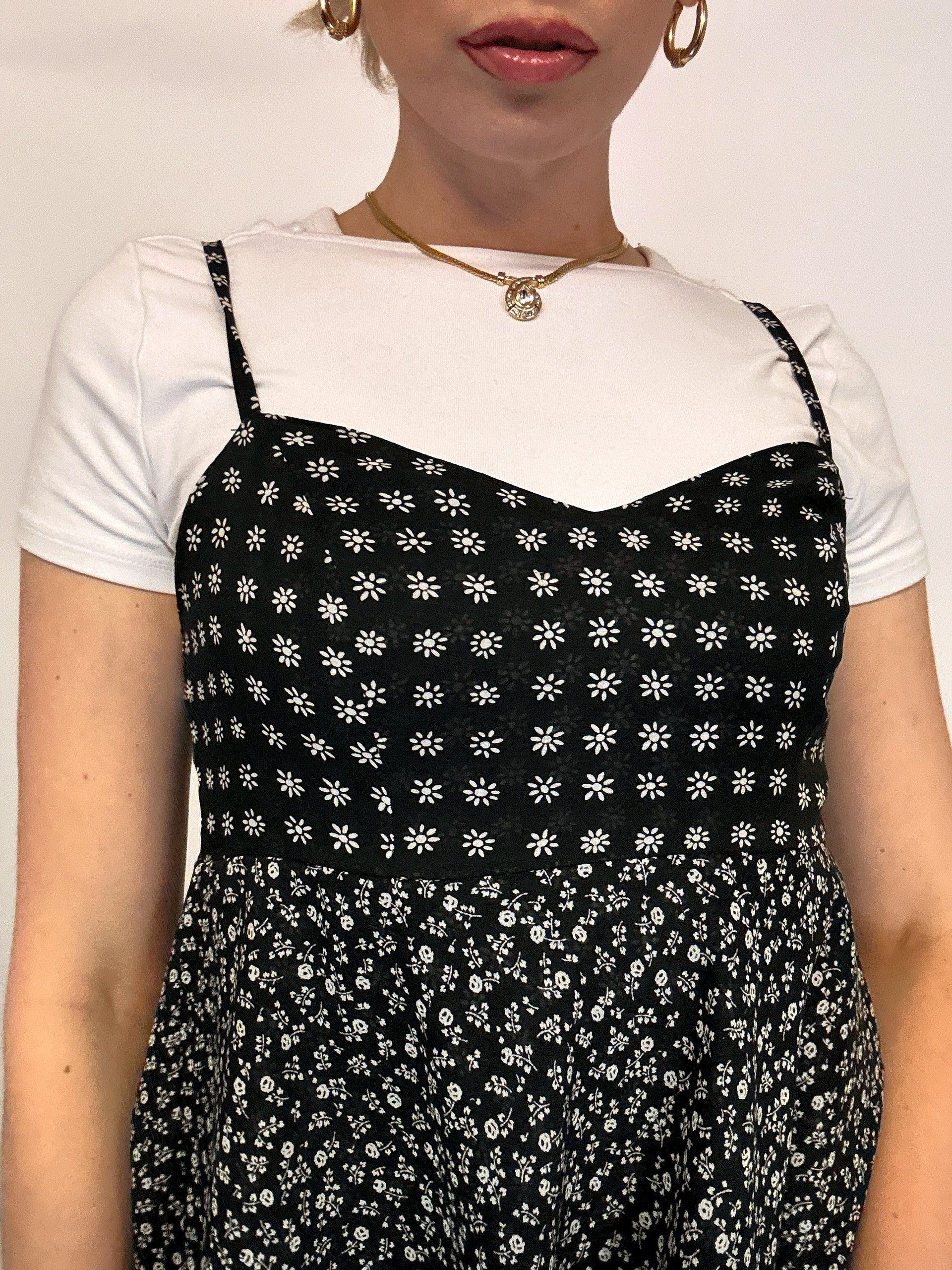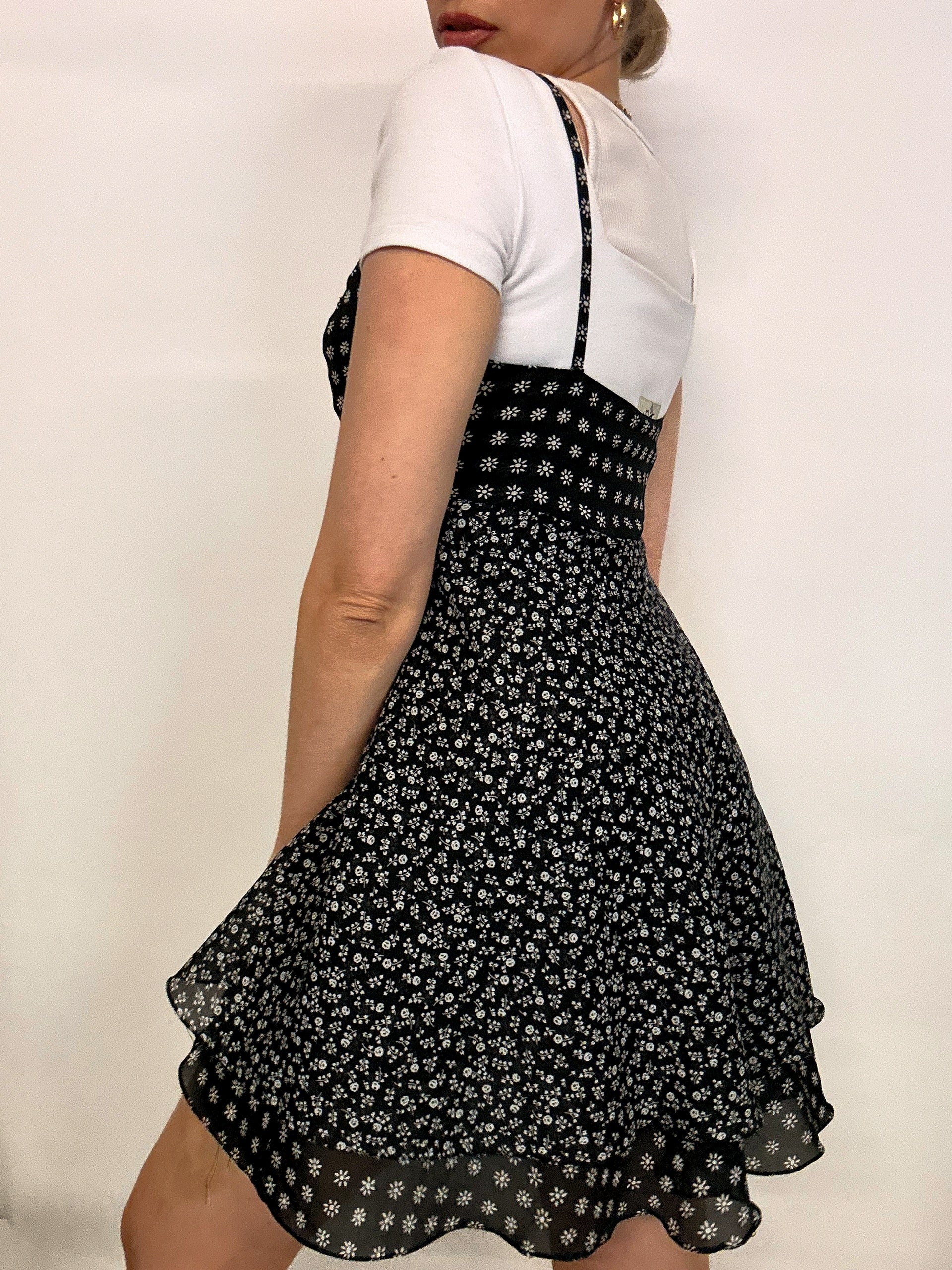 Black and white floral dress S/M vintage