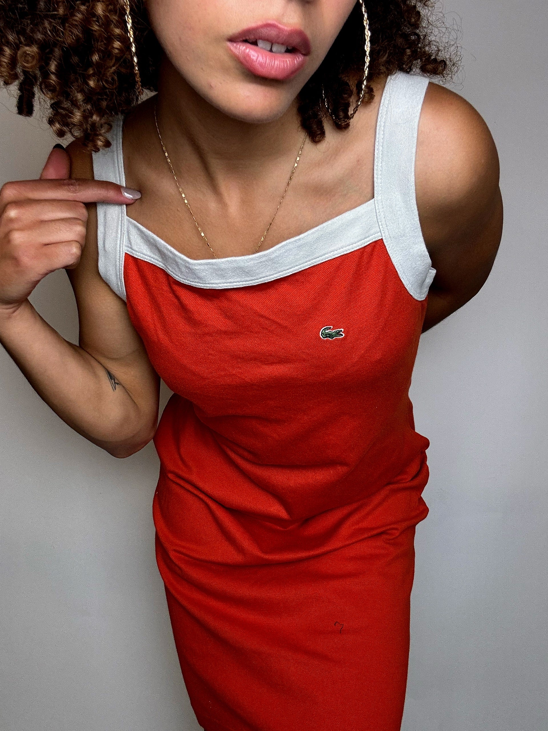 Robe manche à bretelles orange LACOSTE L/XL vintage
