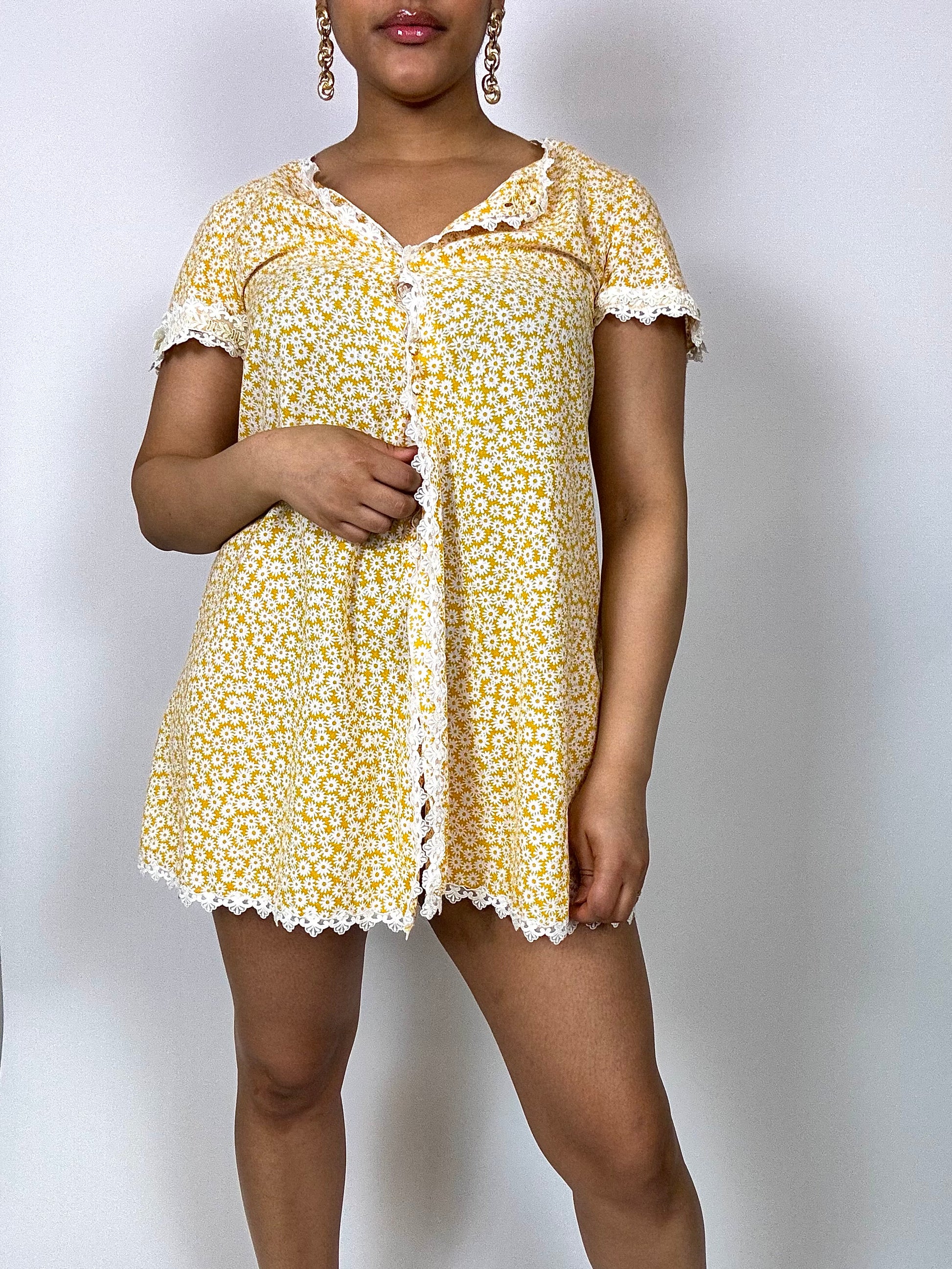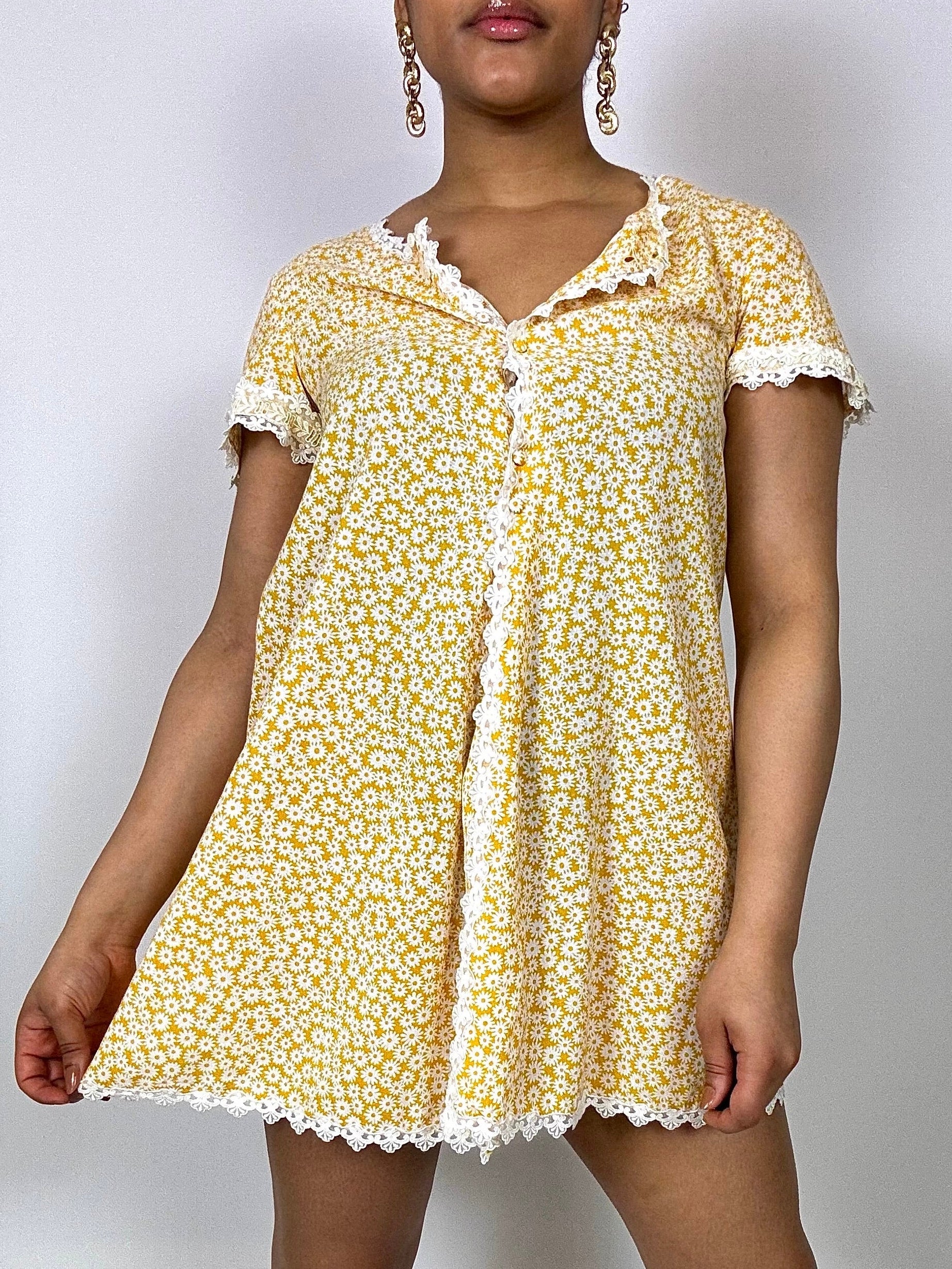 Vintage patterned mesh mini dress M