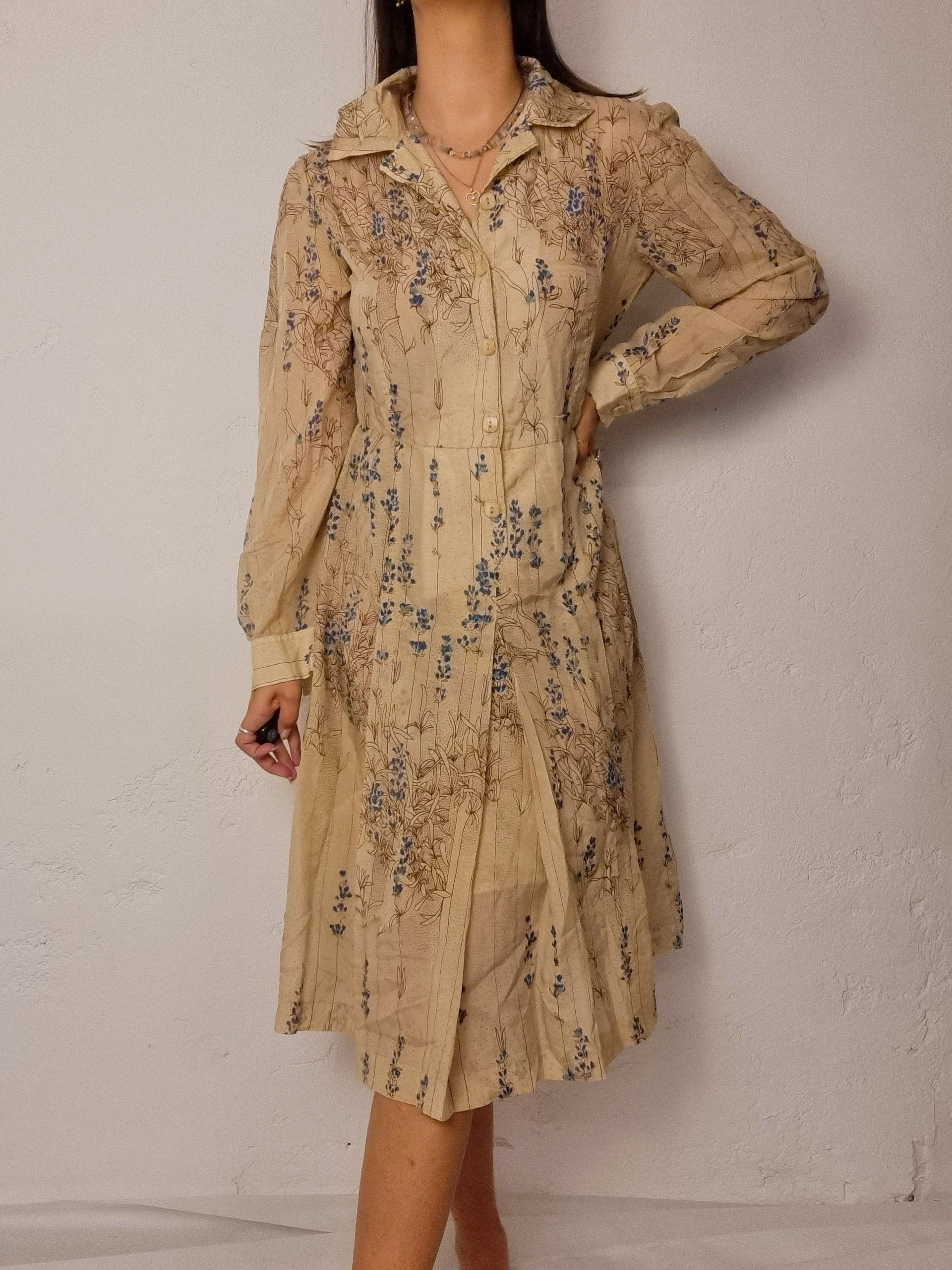Vintage beige floral dress M