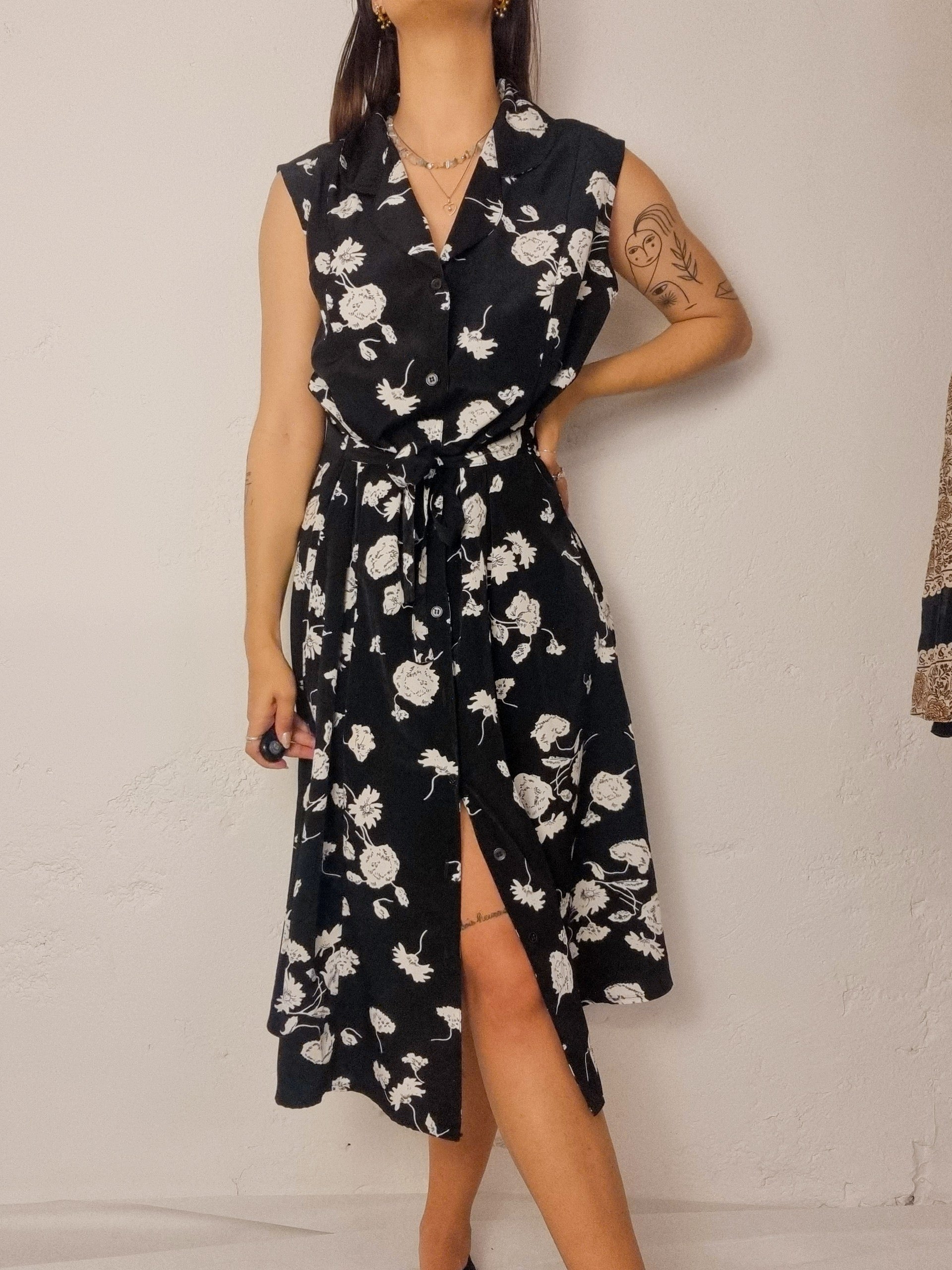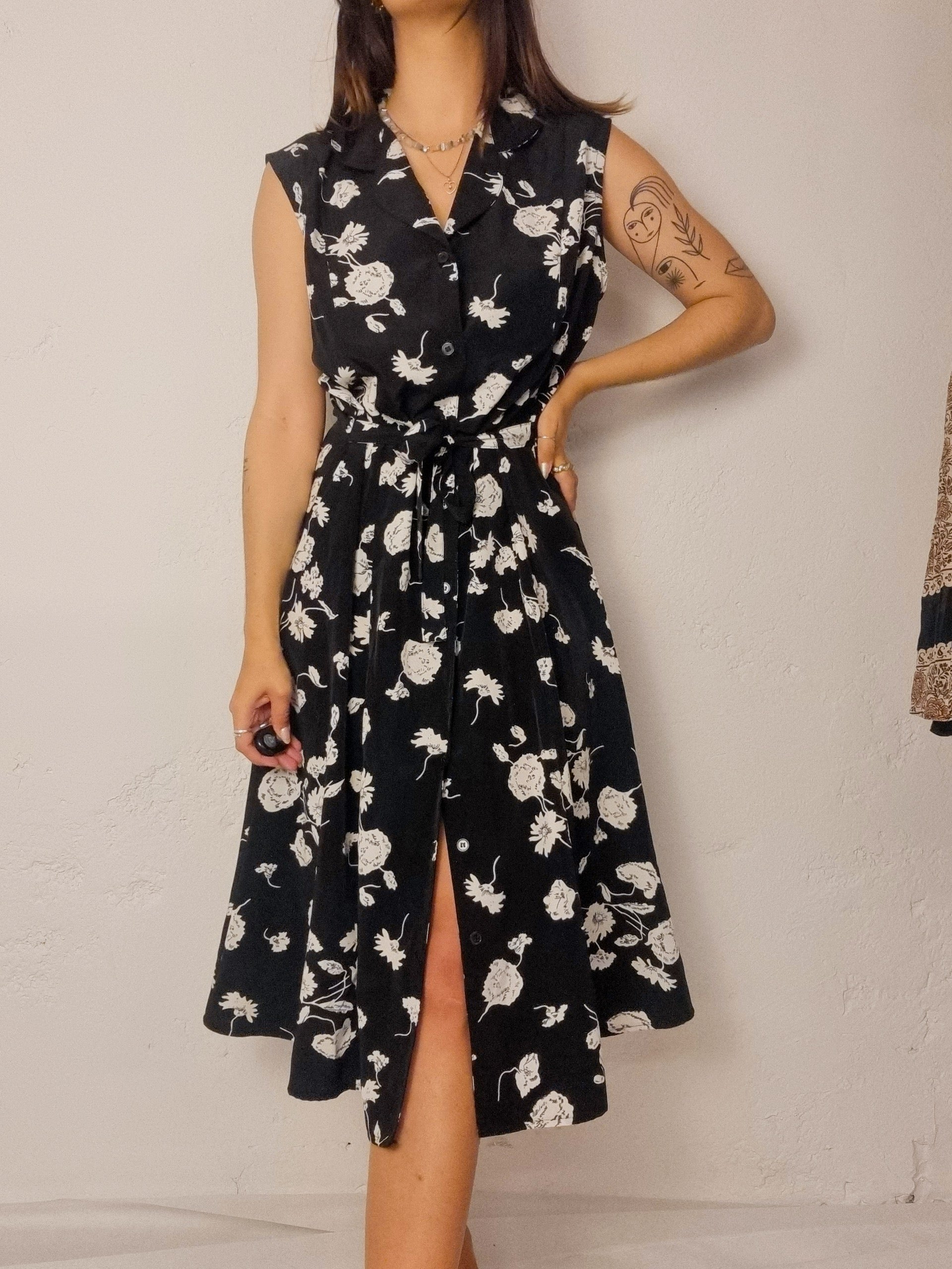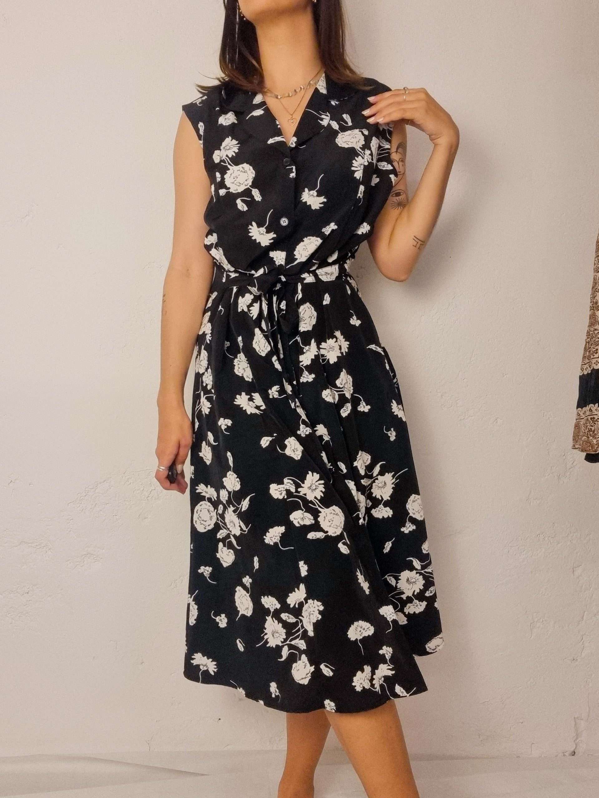 Vintage black and white floral dress