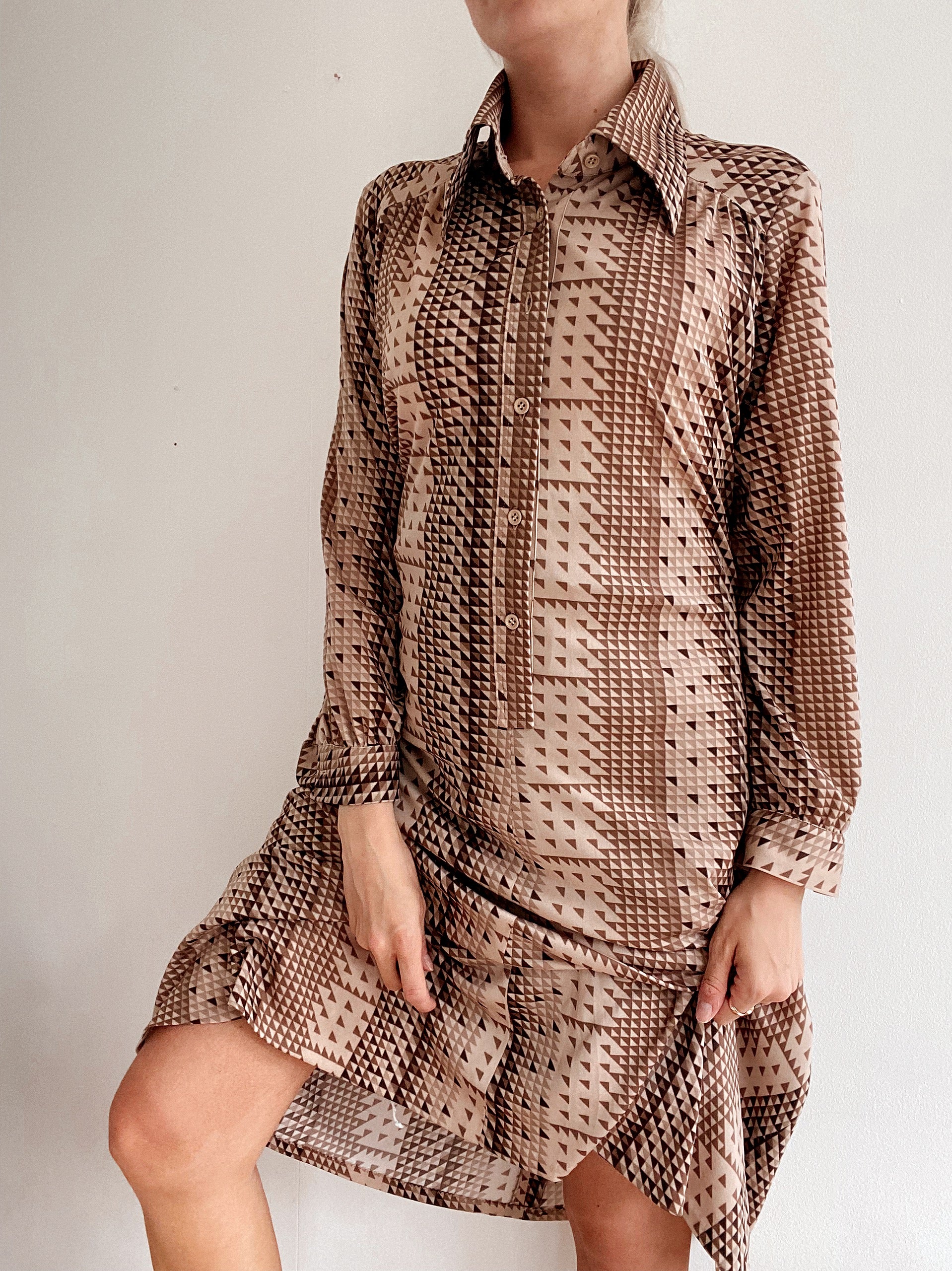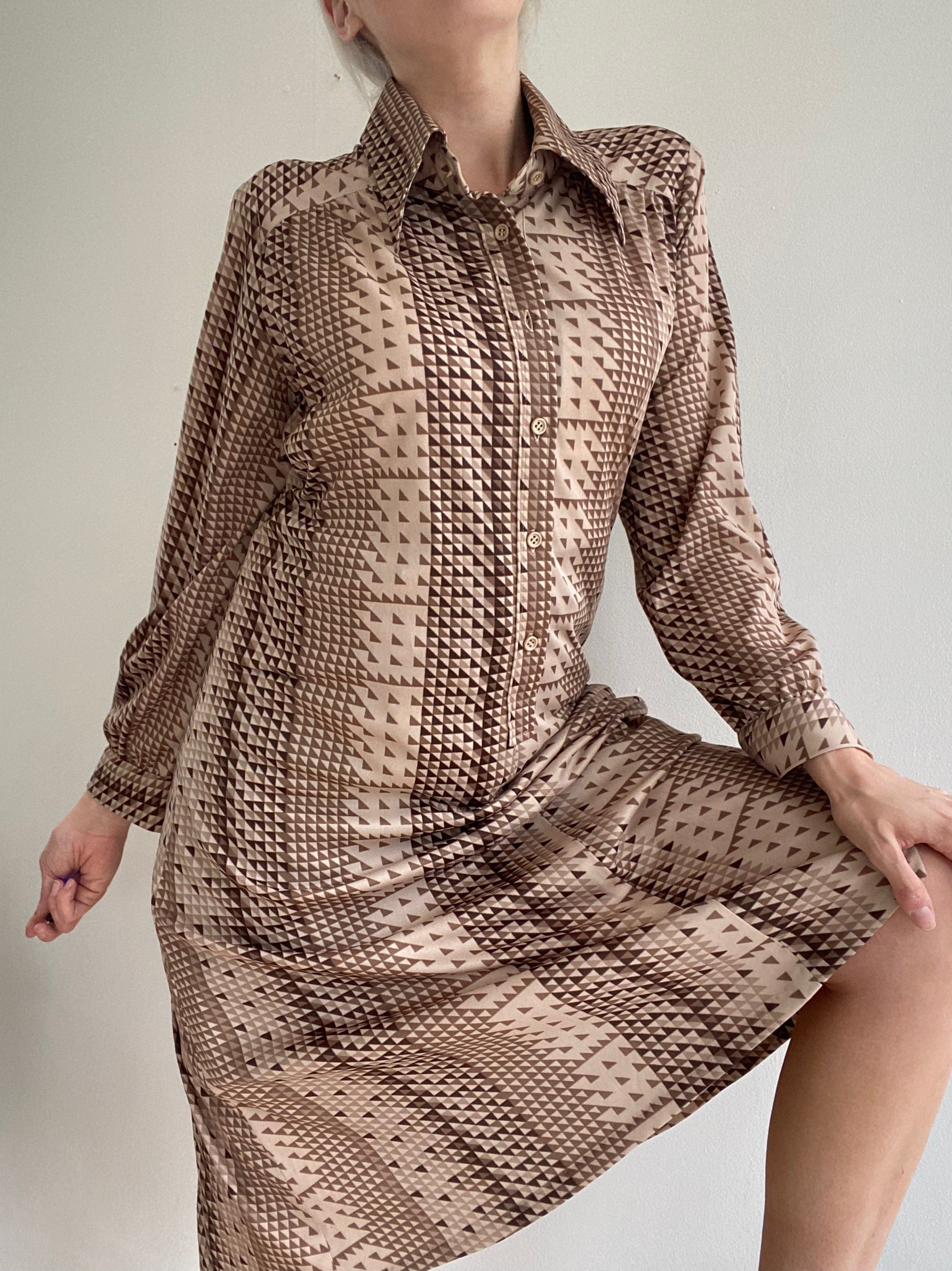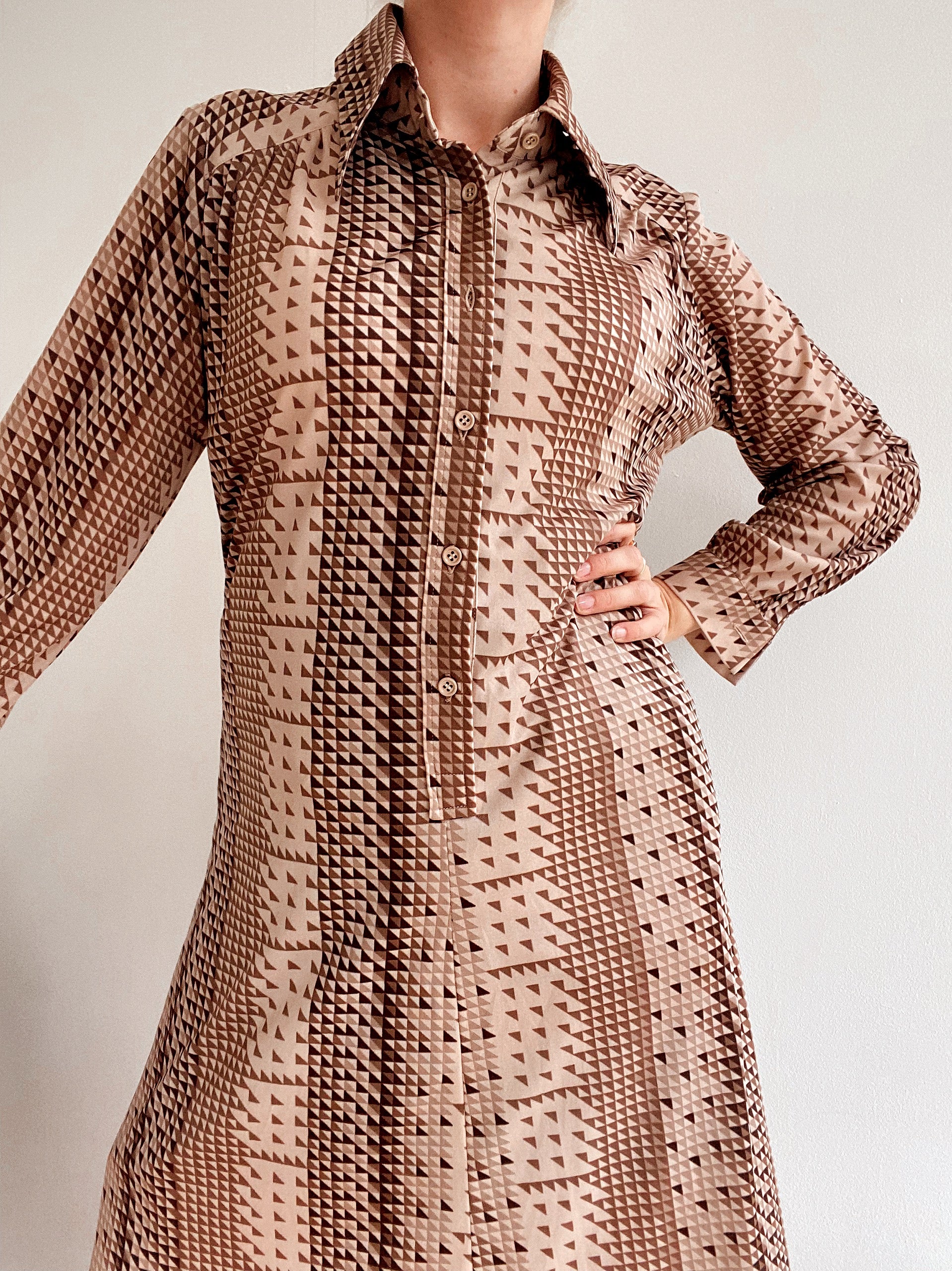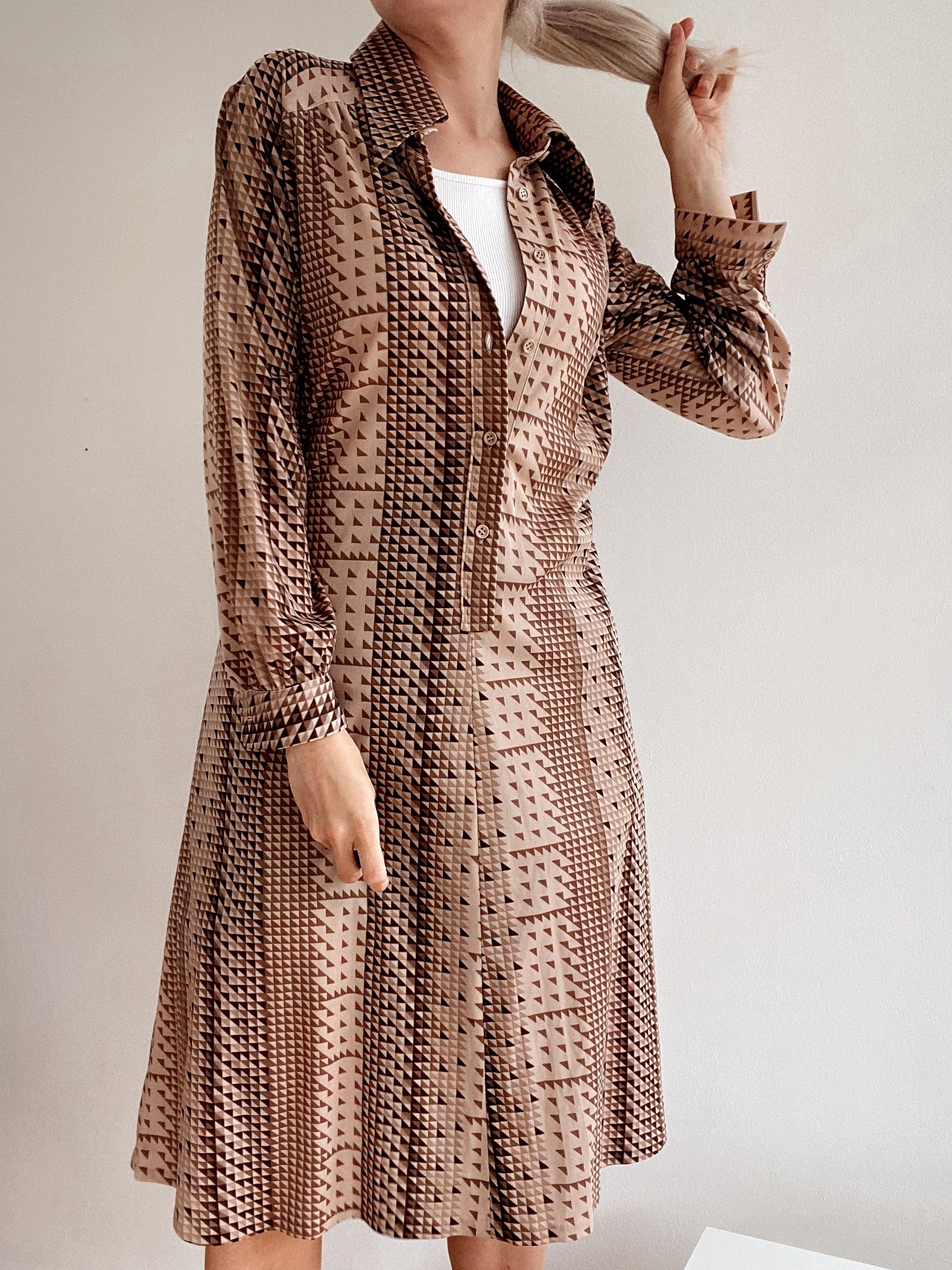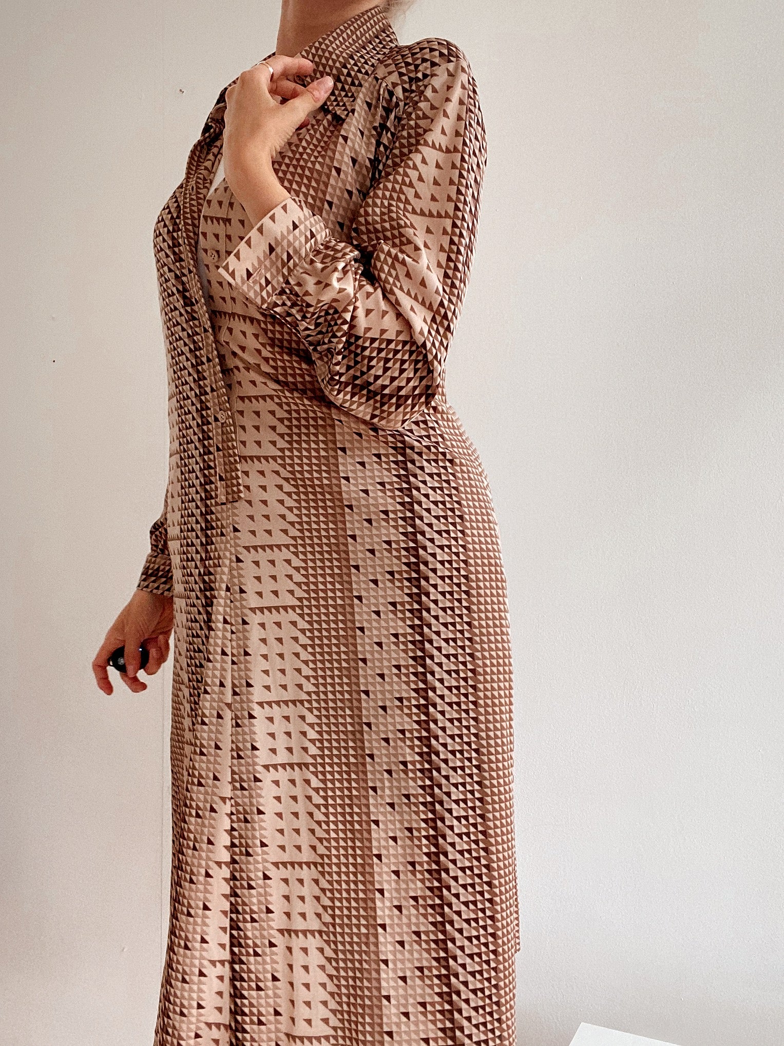 Long vintage beige patterned dress M/L