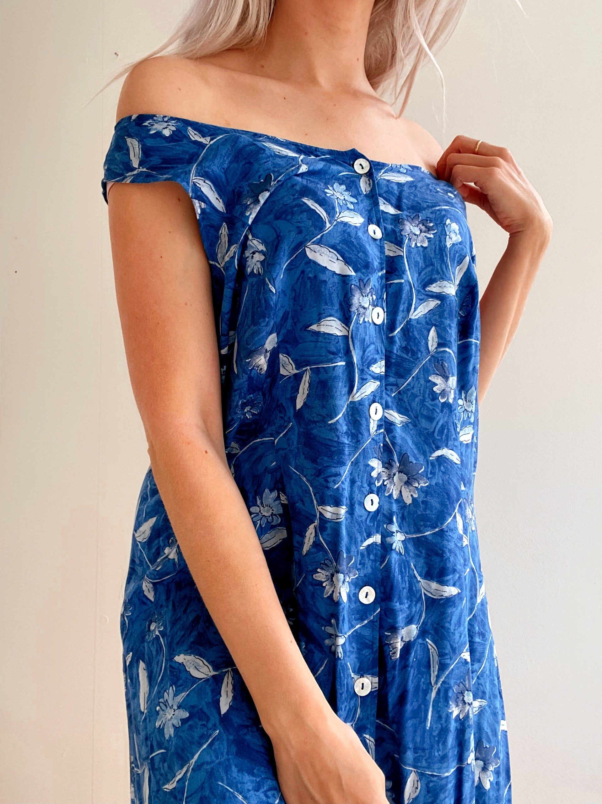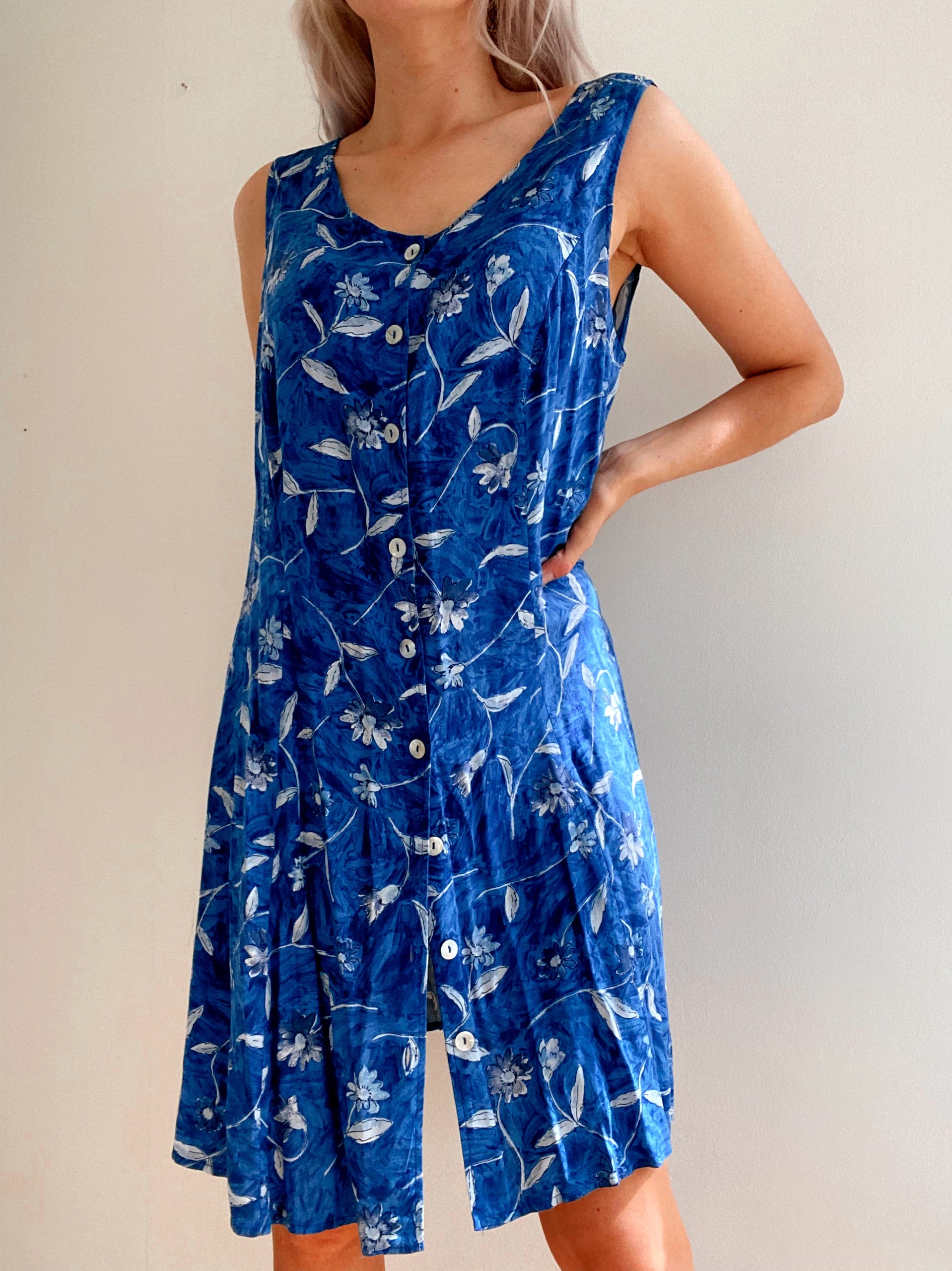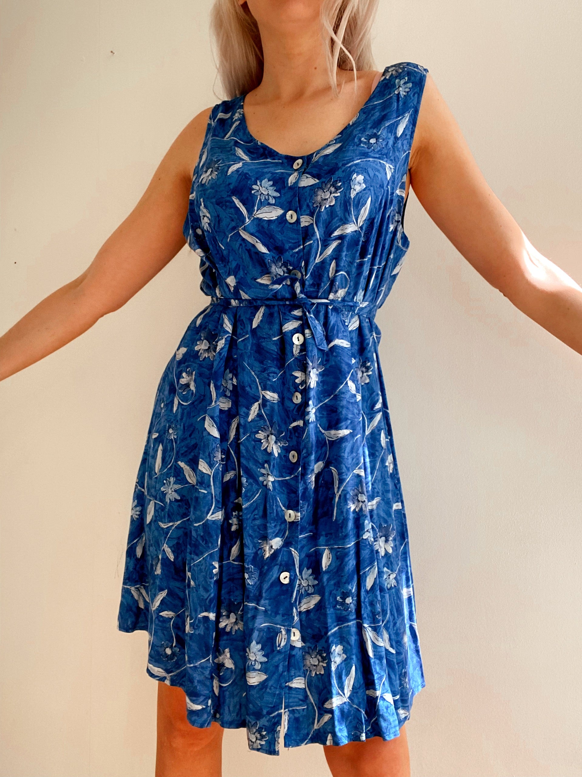 Vintage blue floral dress L