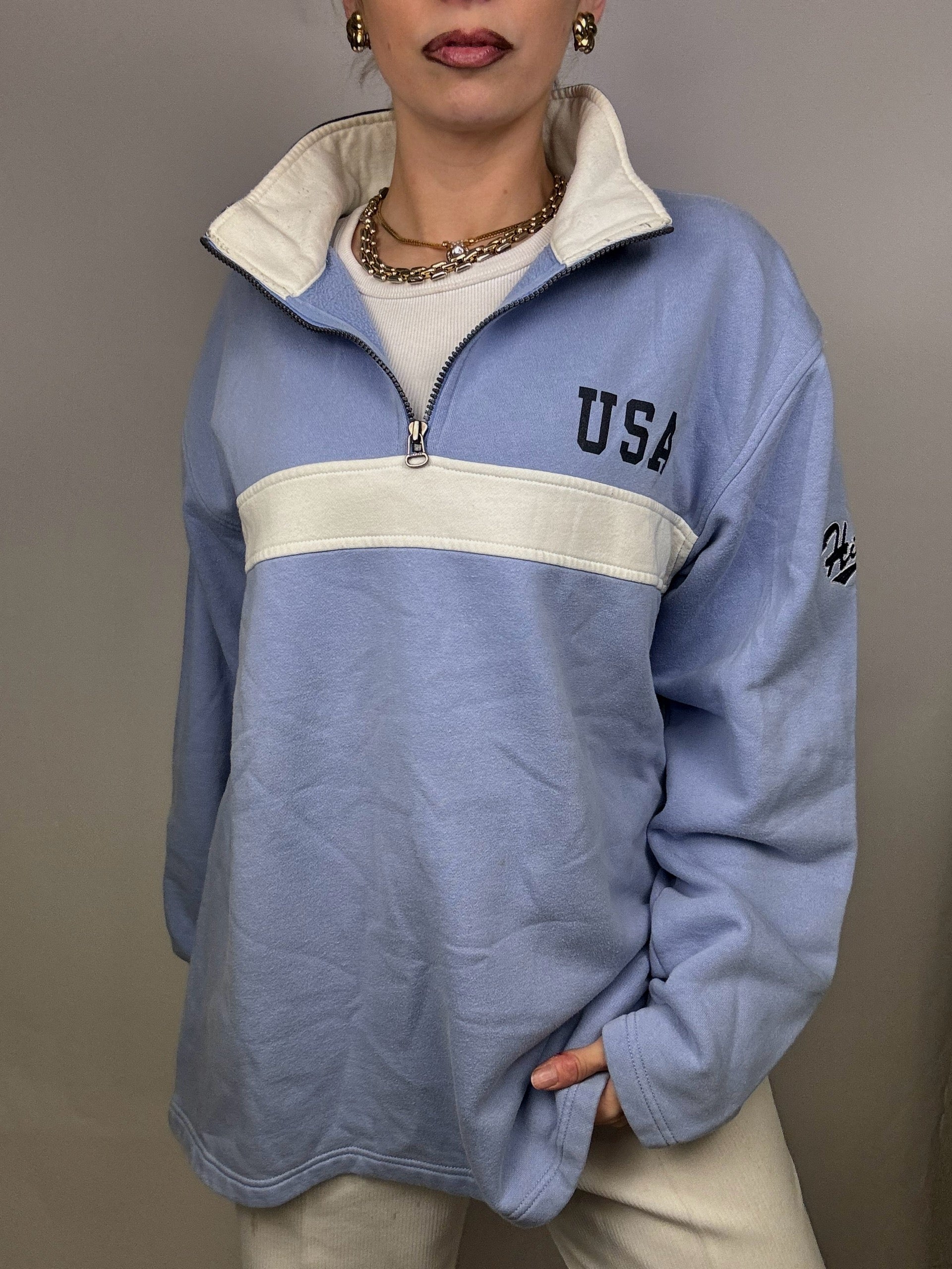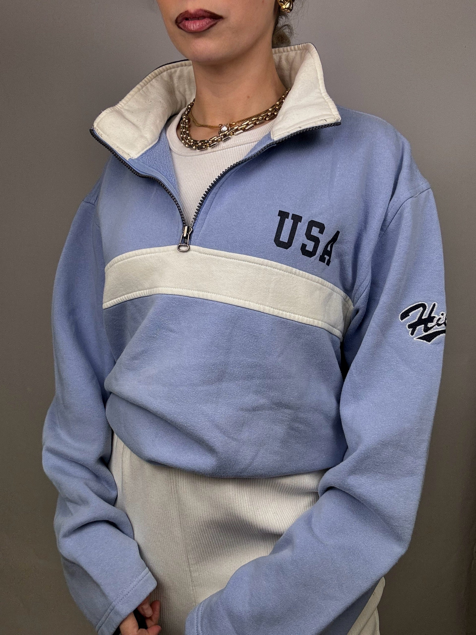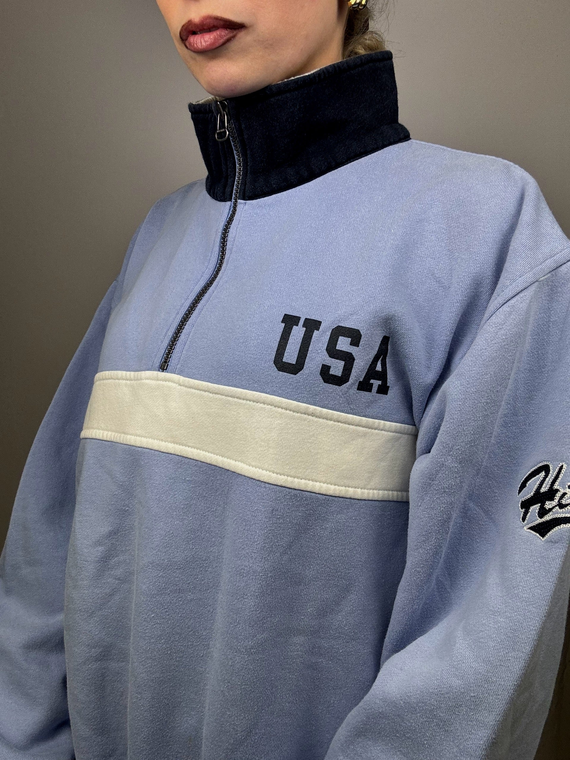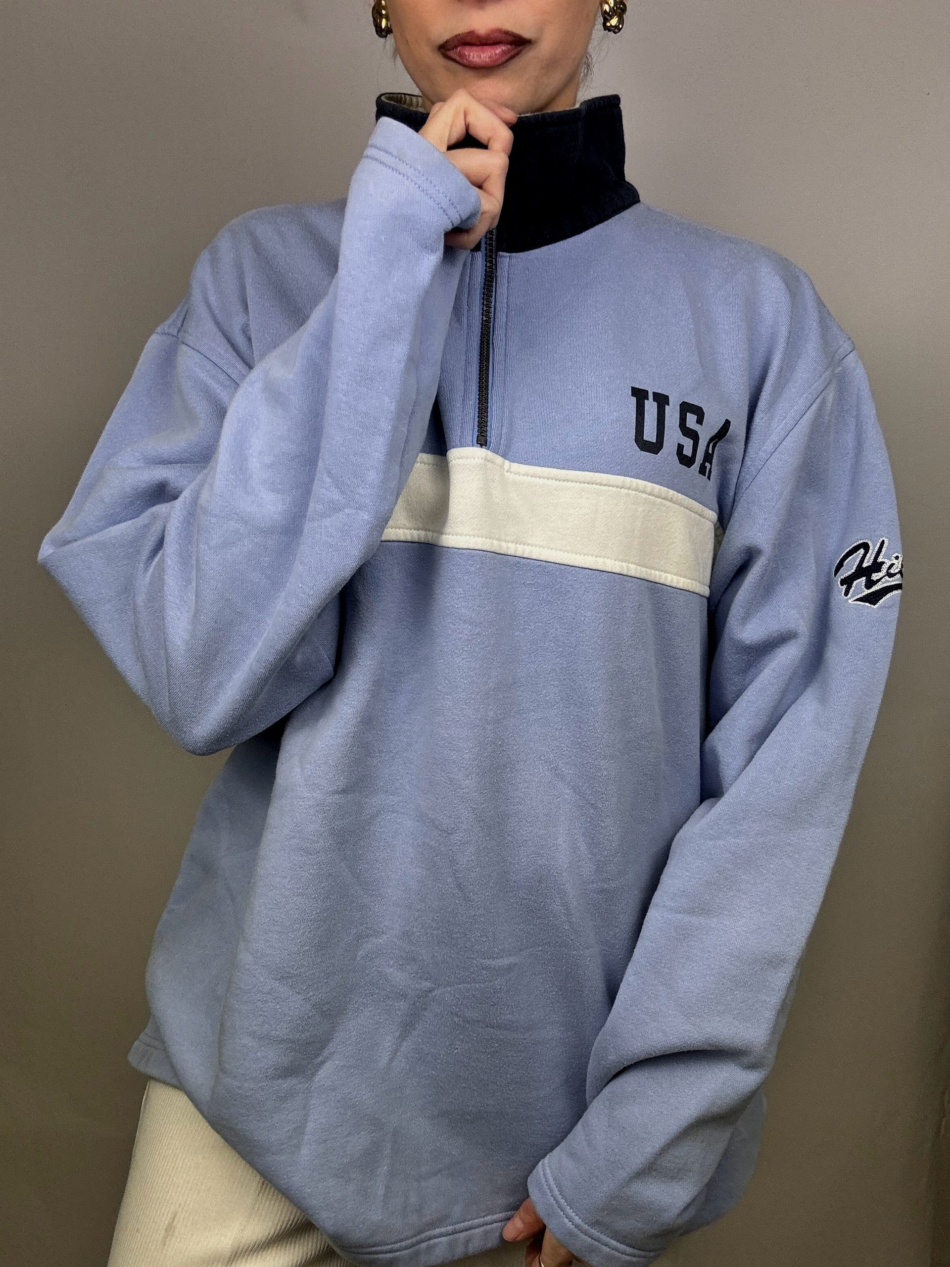 TOMMY HILFIGER L vintage sky blue zip-up sweatshirt