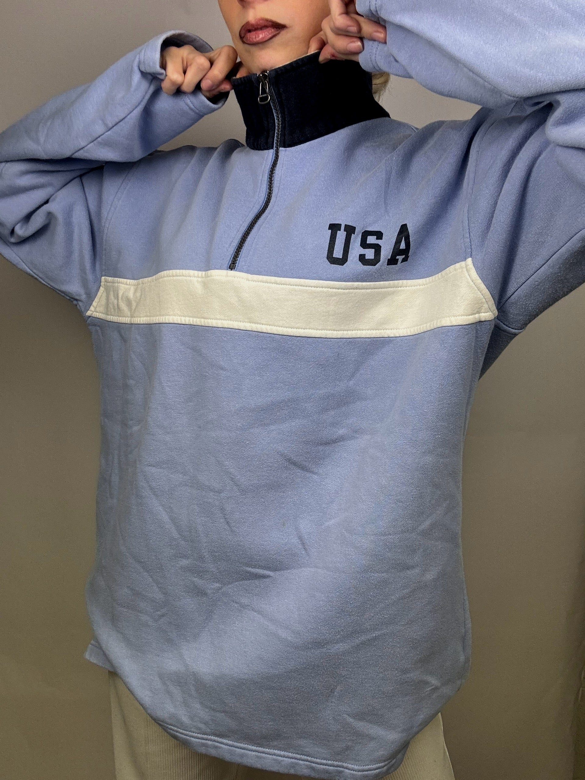 A soft blue sweatshirt that will pair perfectly with light outfits, cream and/or beige tones...