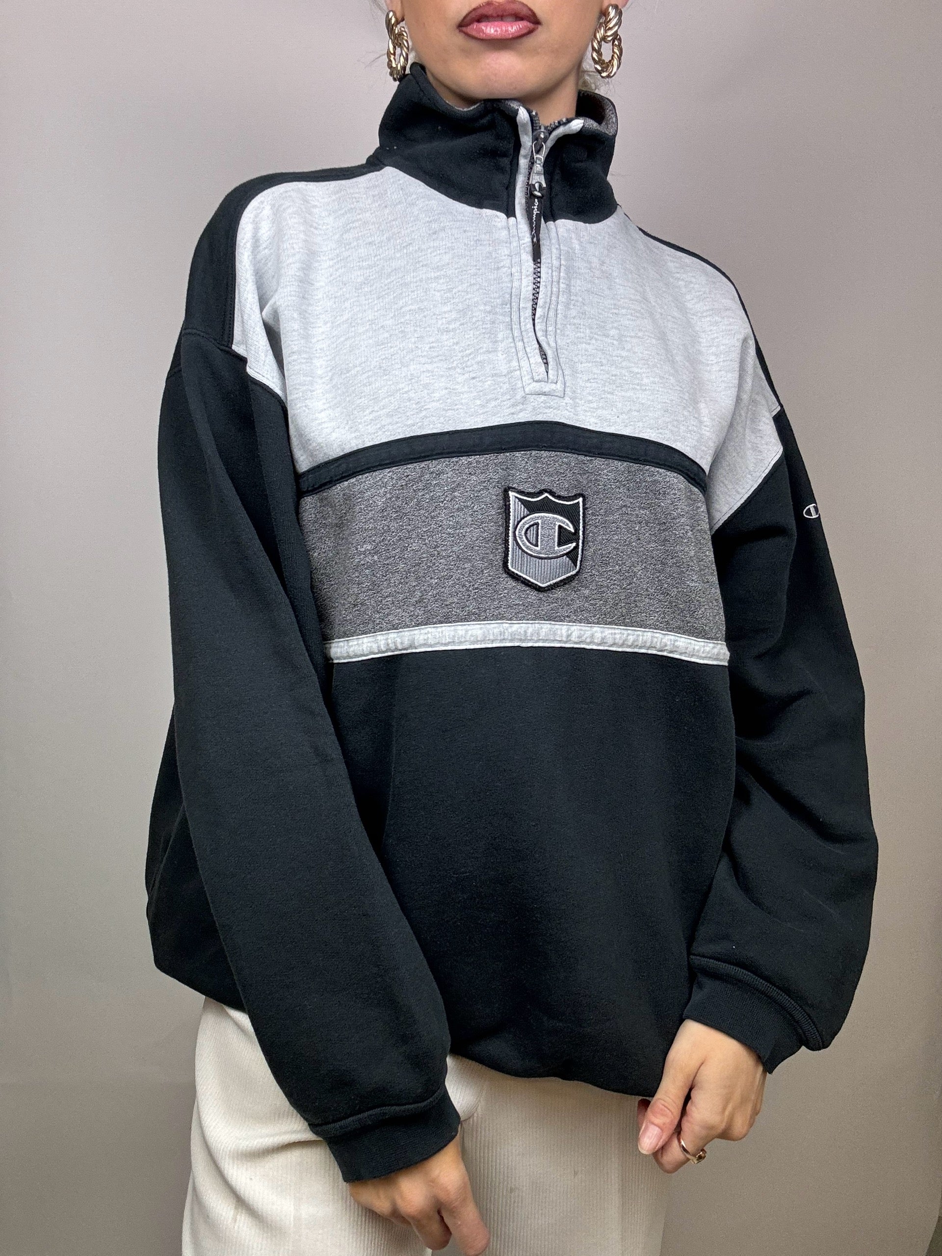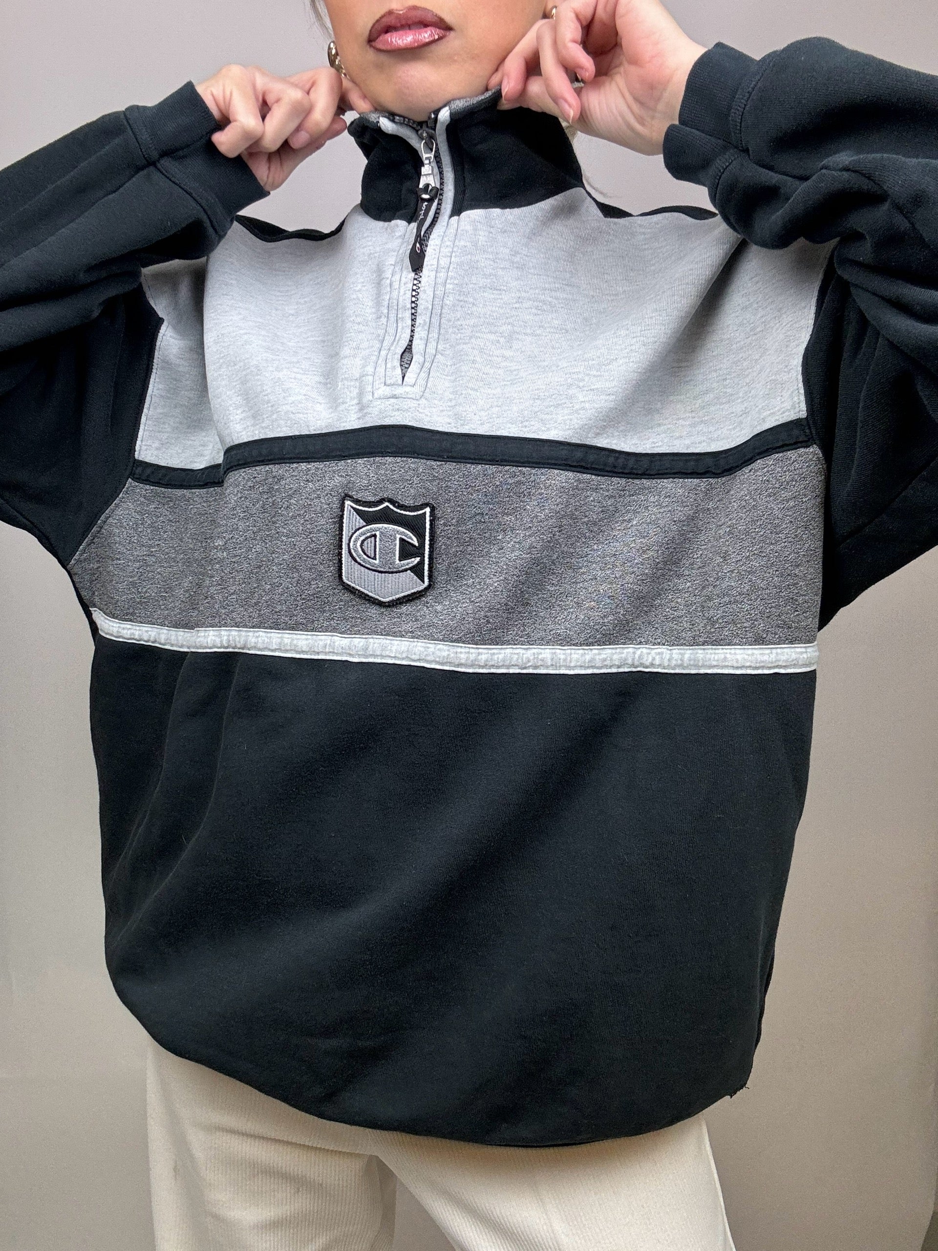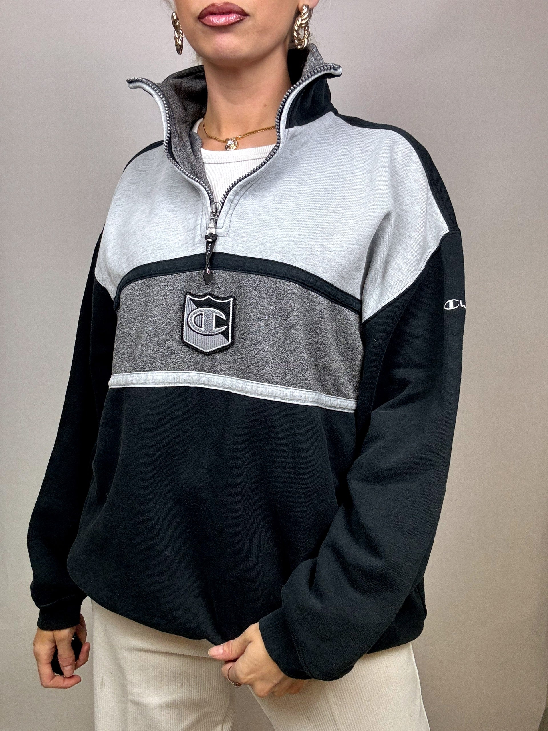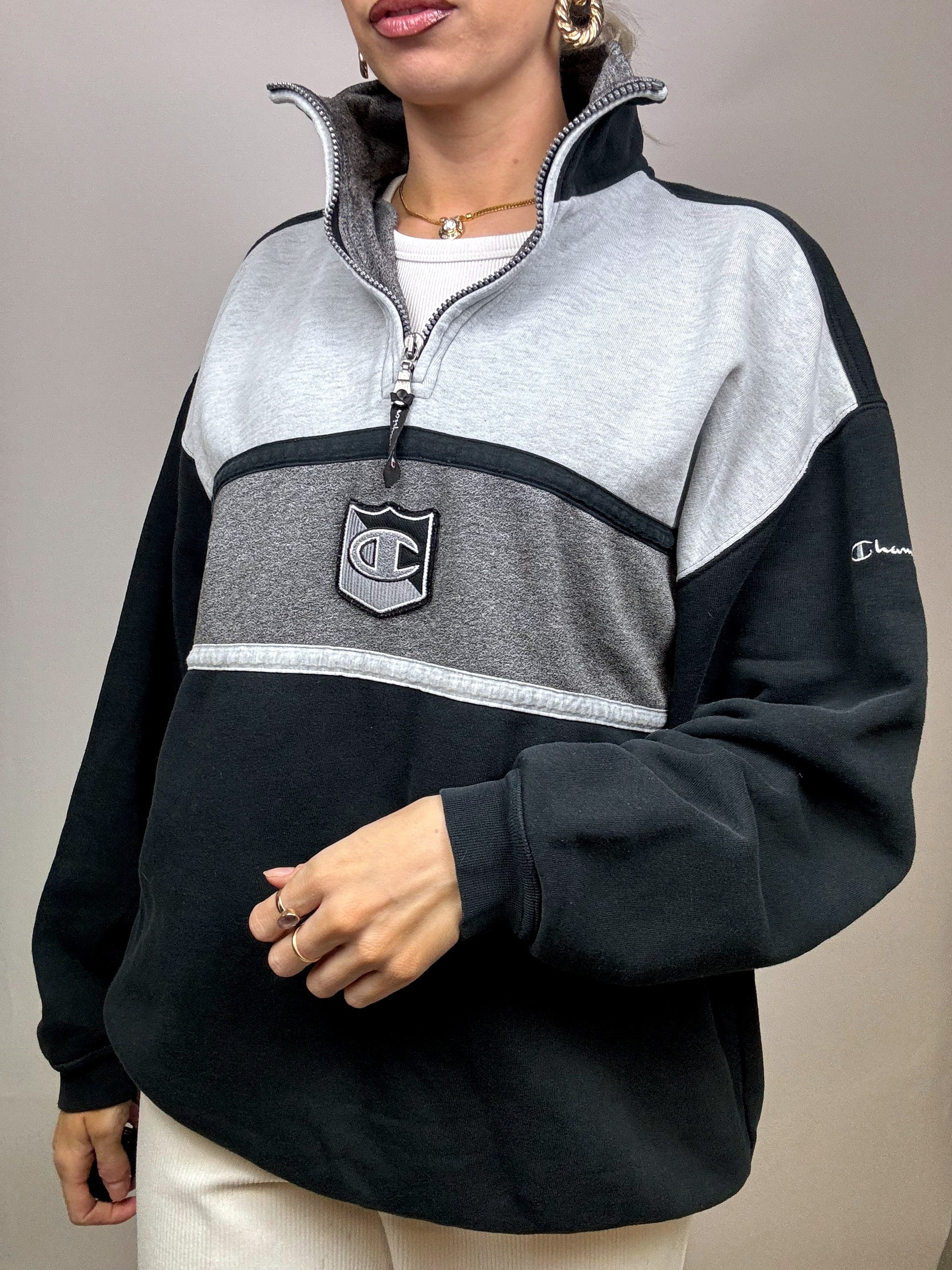 CHAMPION XL Vintage Gray Block Zip Sweatshirt