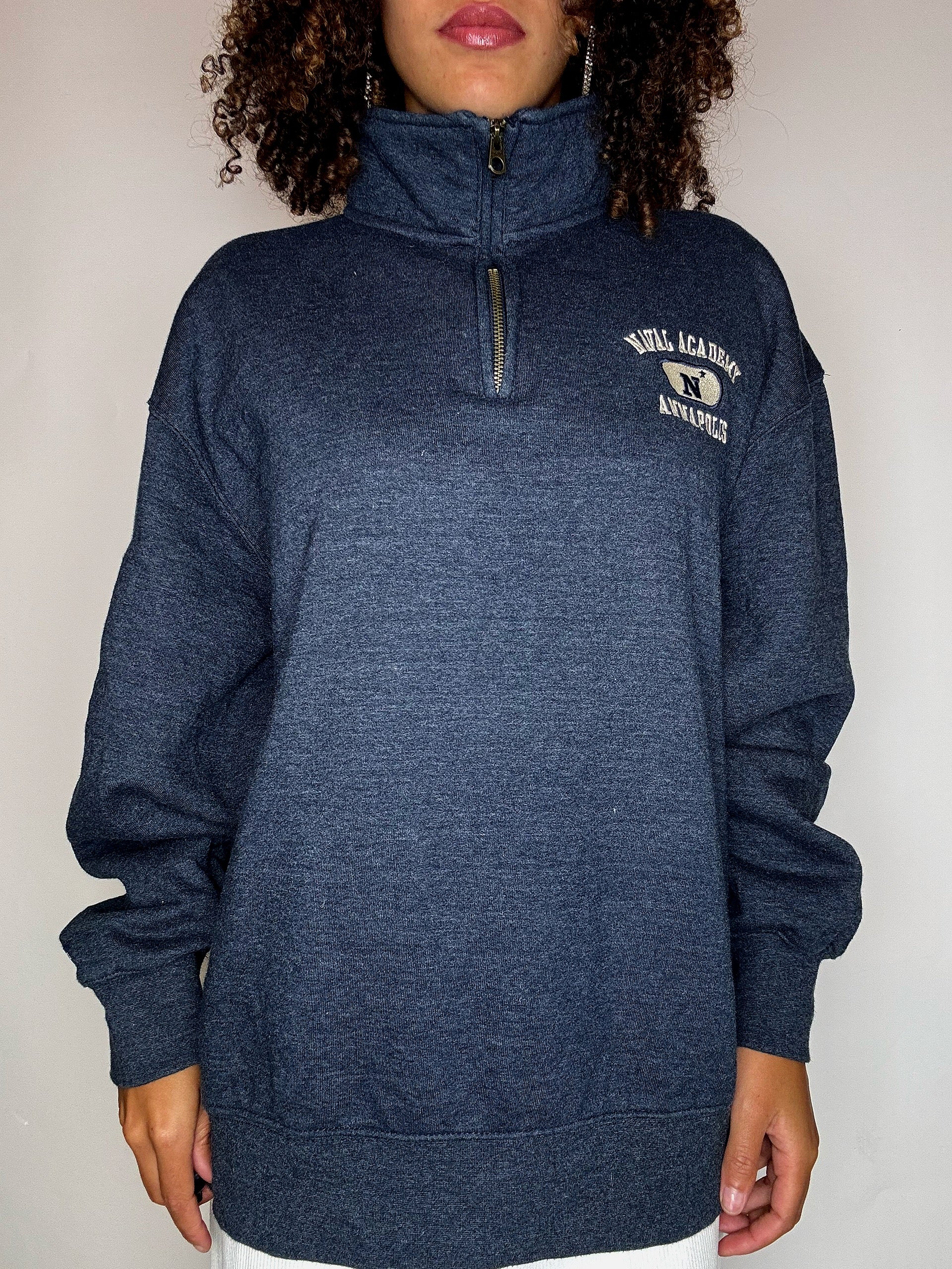 Sweat bleu chiné col cheminée JANSPORT XL vintage