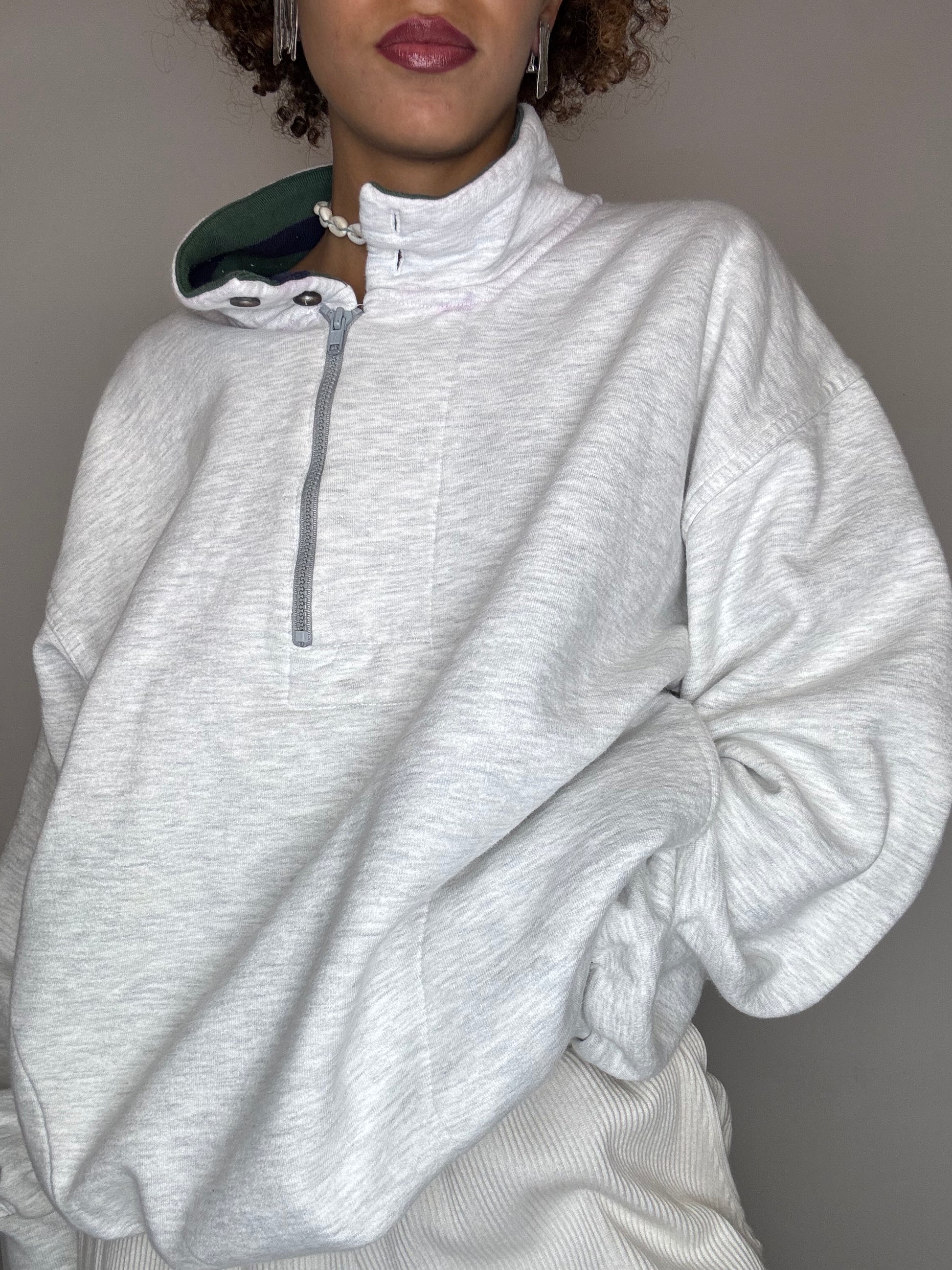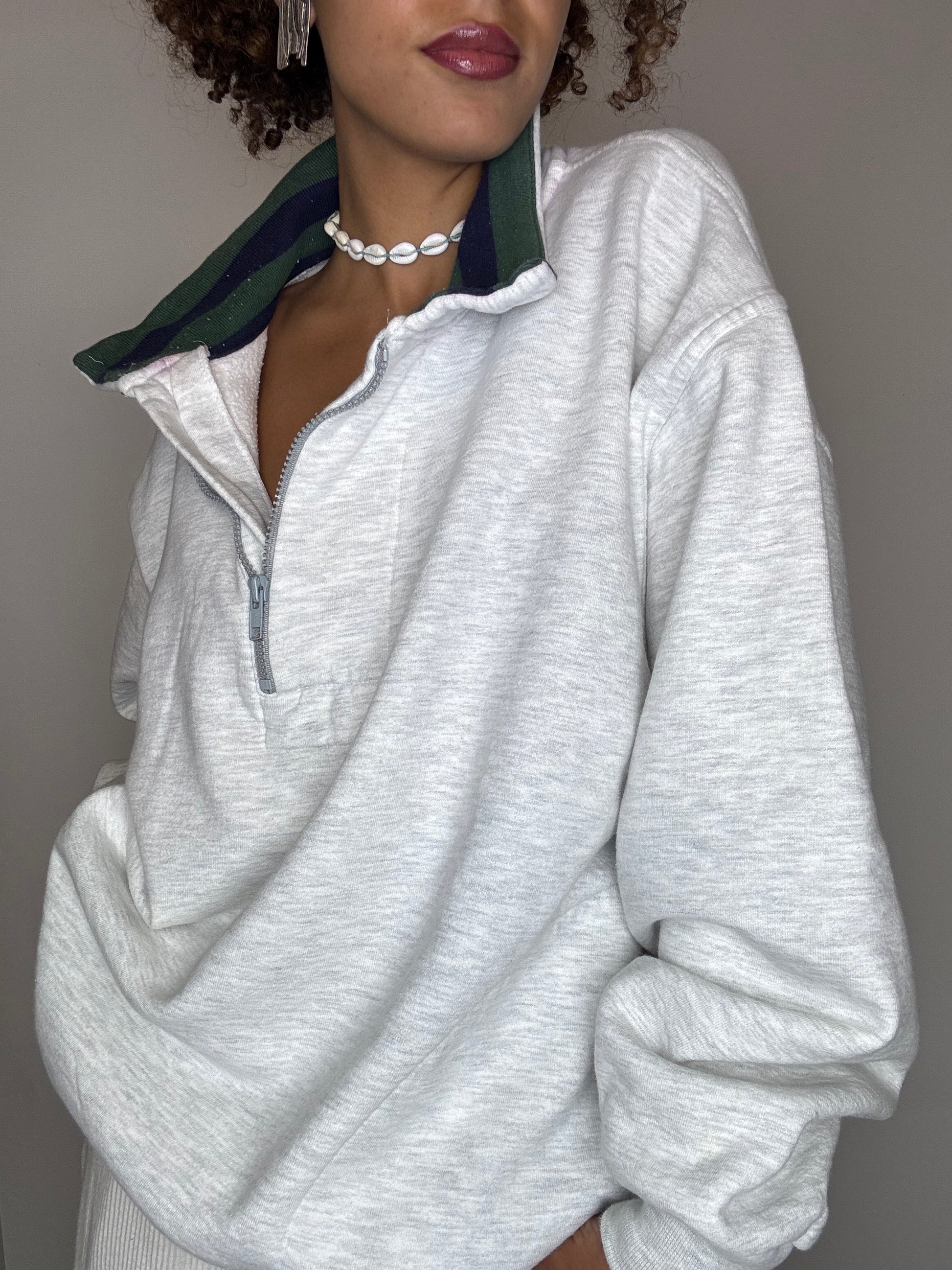 COULEUR : gris chiné avec interieur du col vert et bleu
