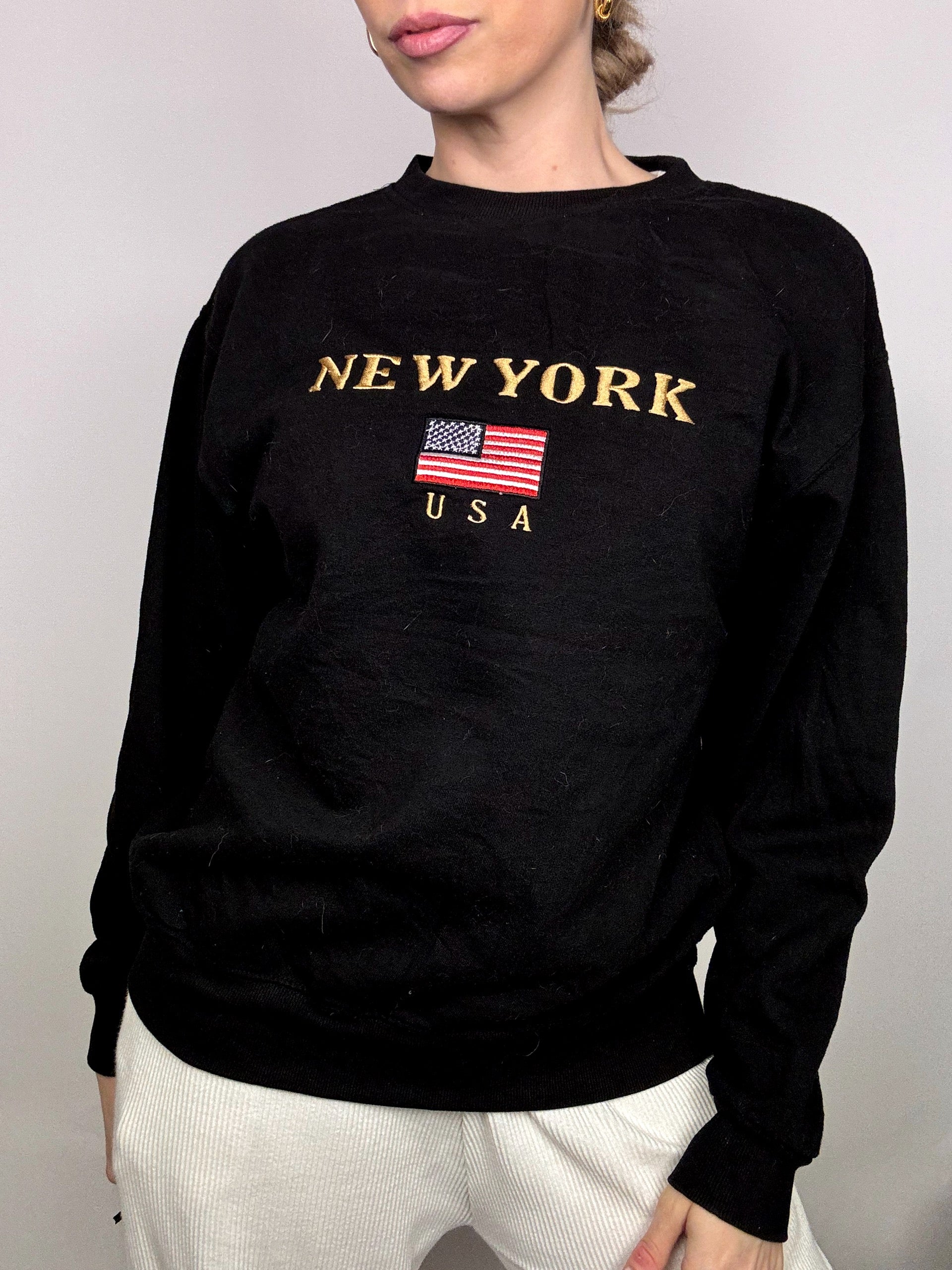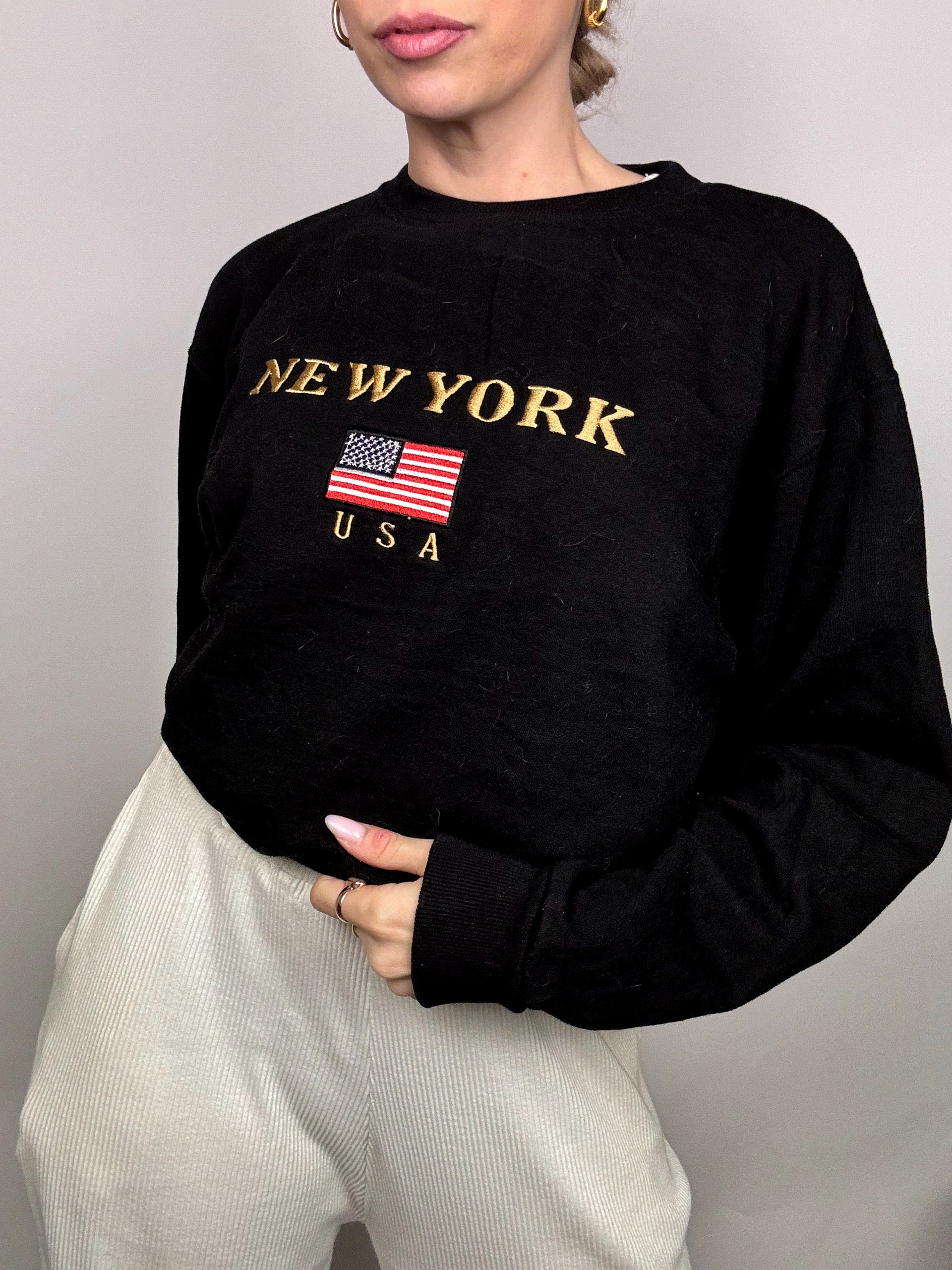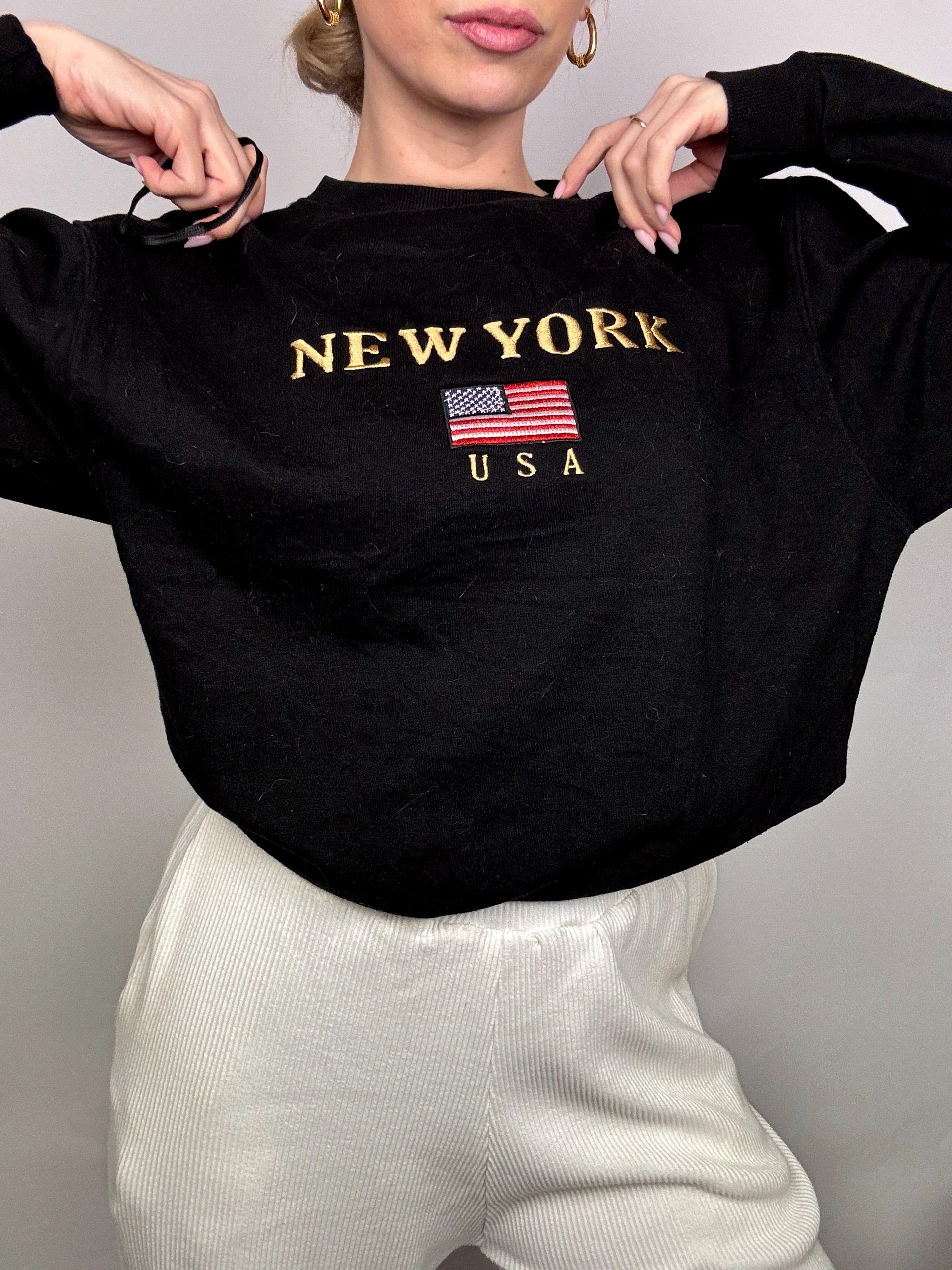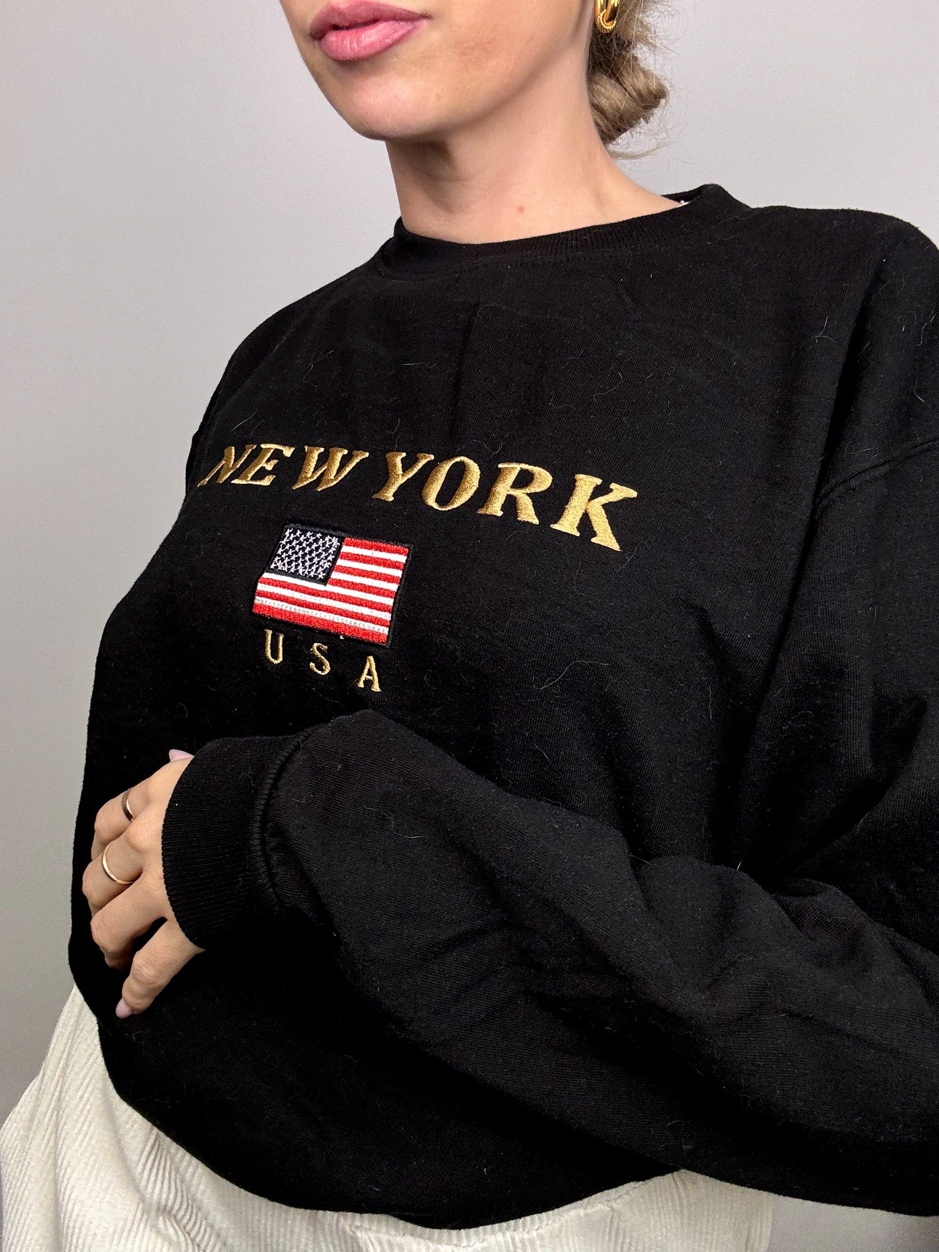 A sweatshirt that goes everywhere thanks to its black color, the embroidery is gold and will go really well with a big pair of earrings or a necklace, why not?