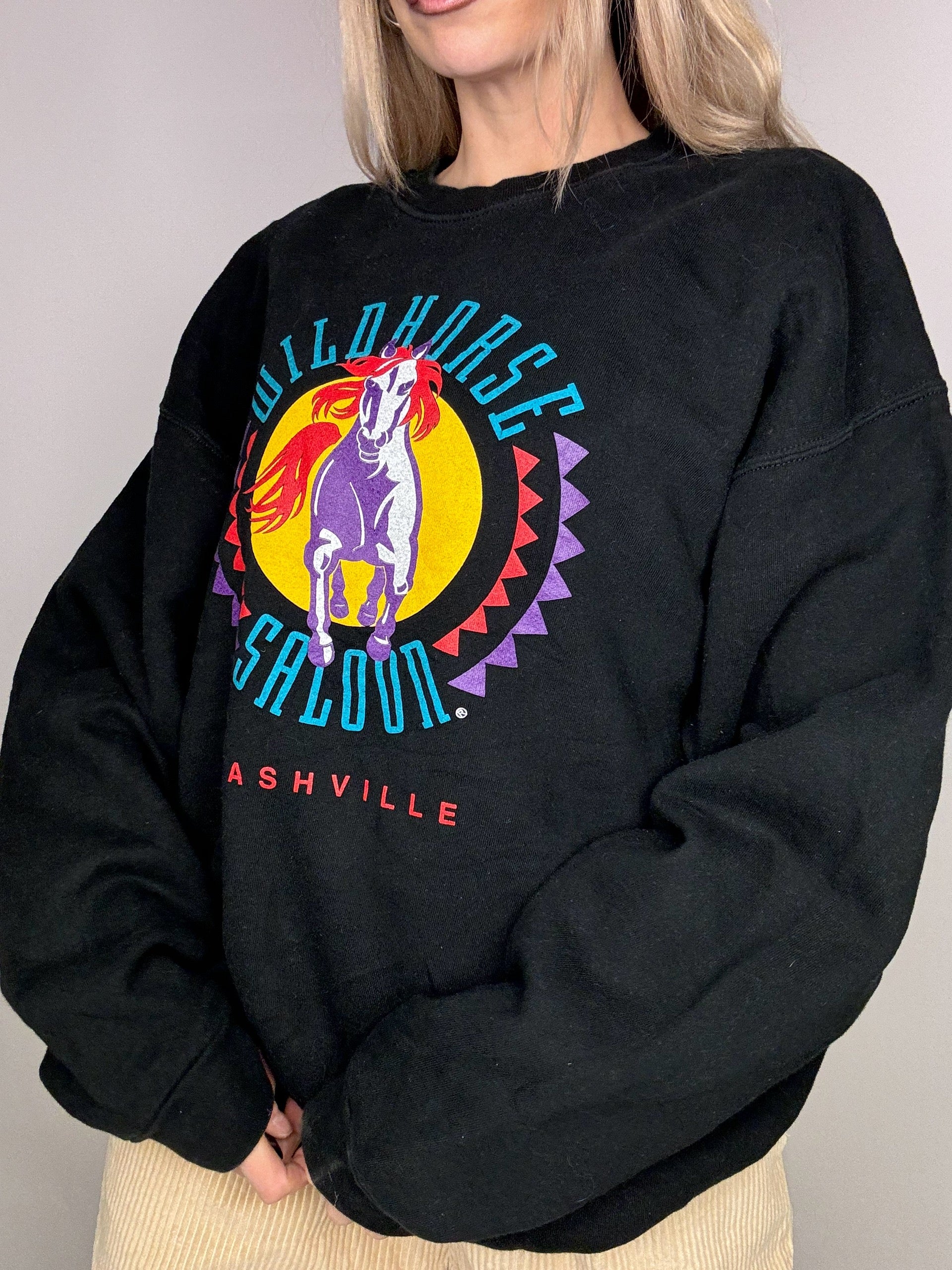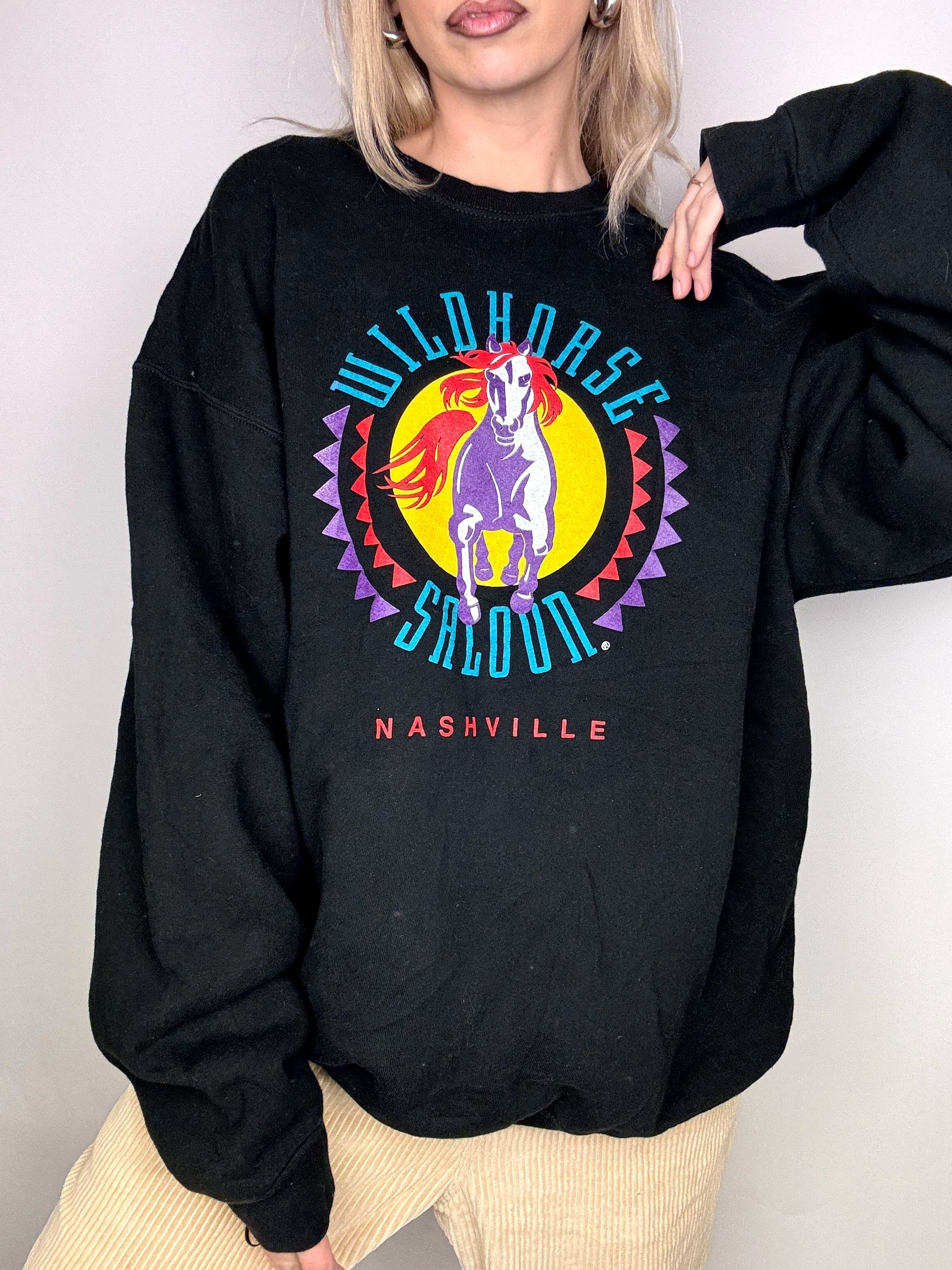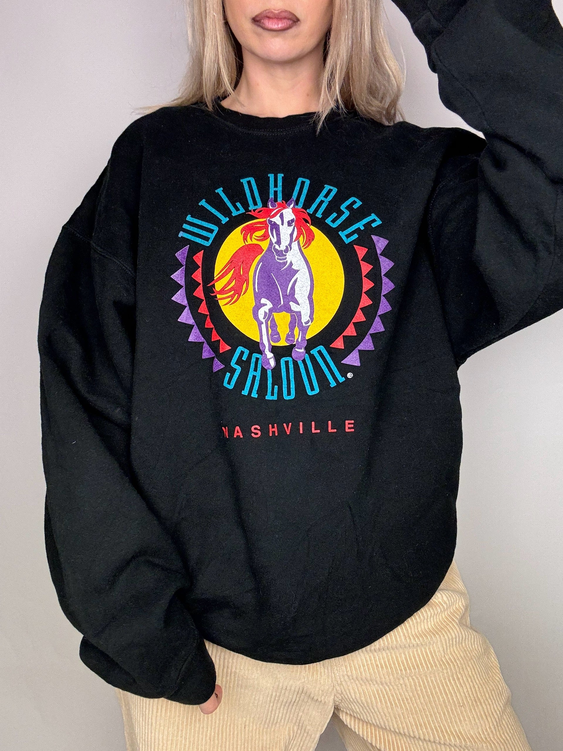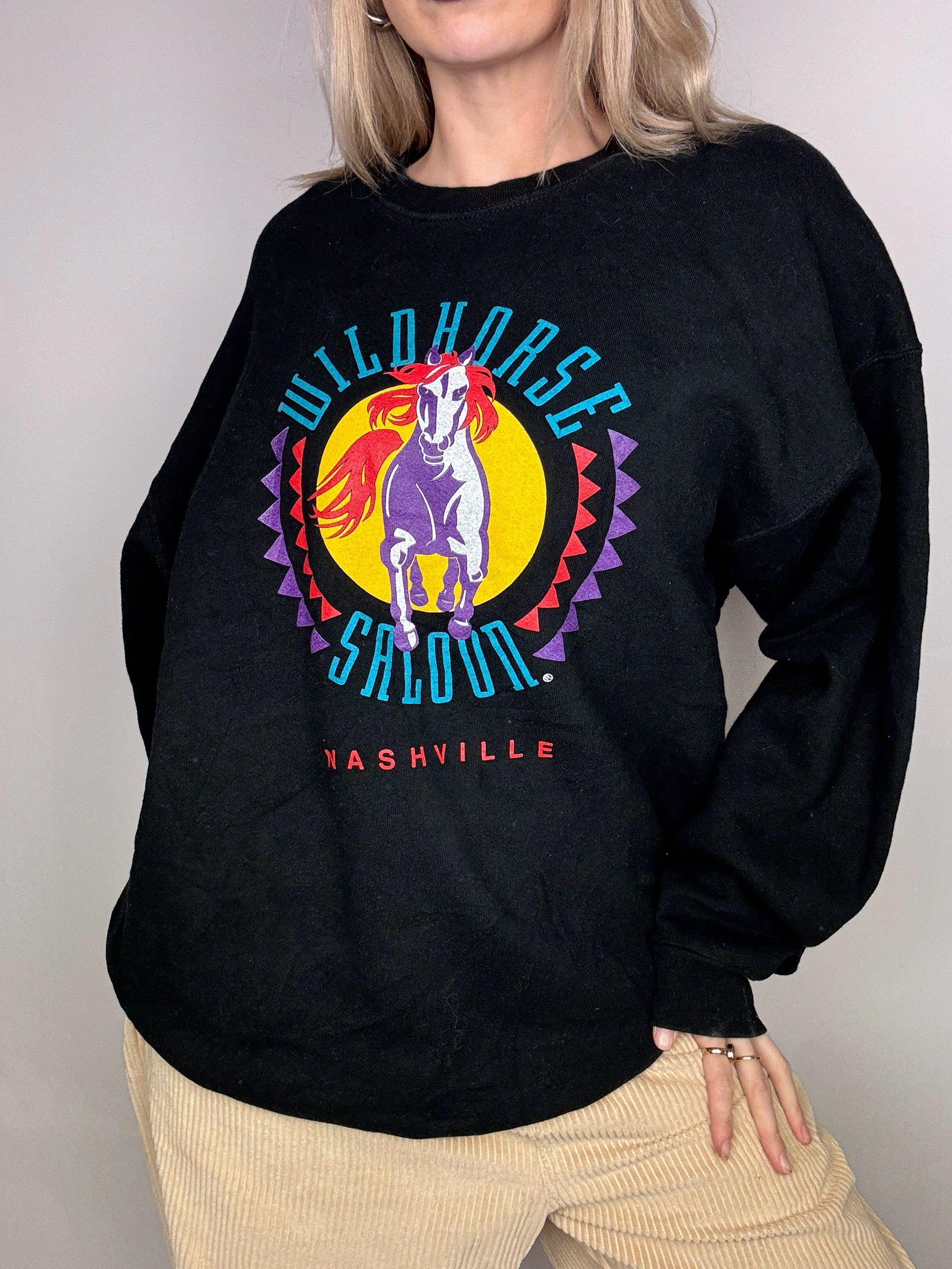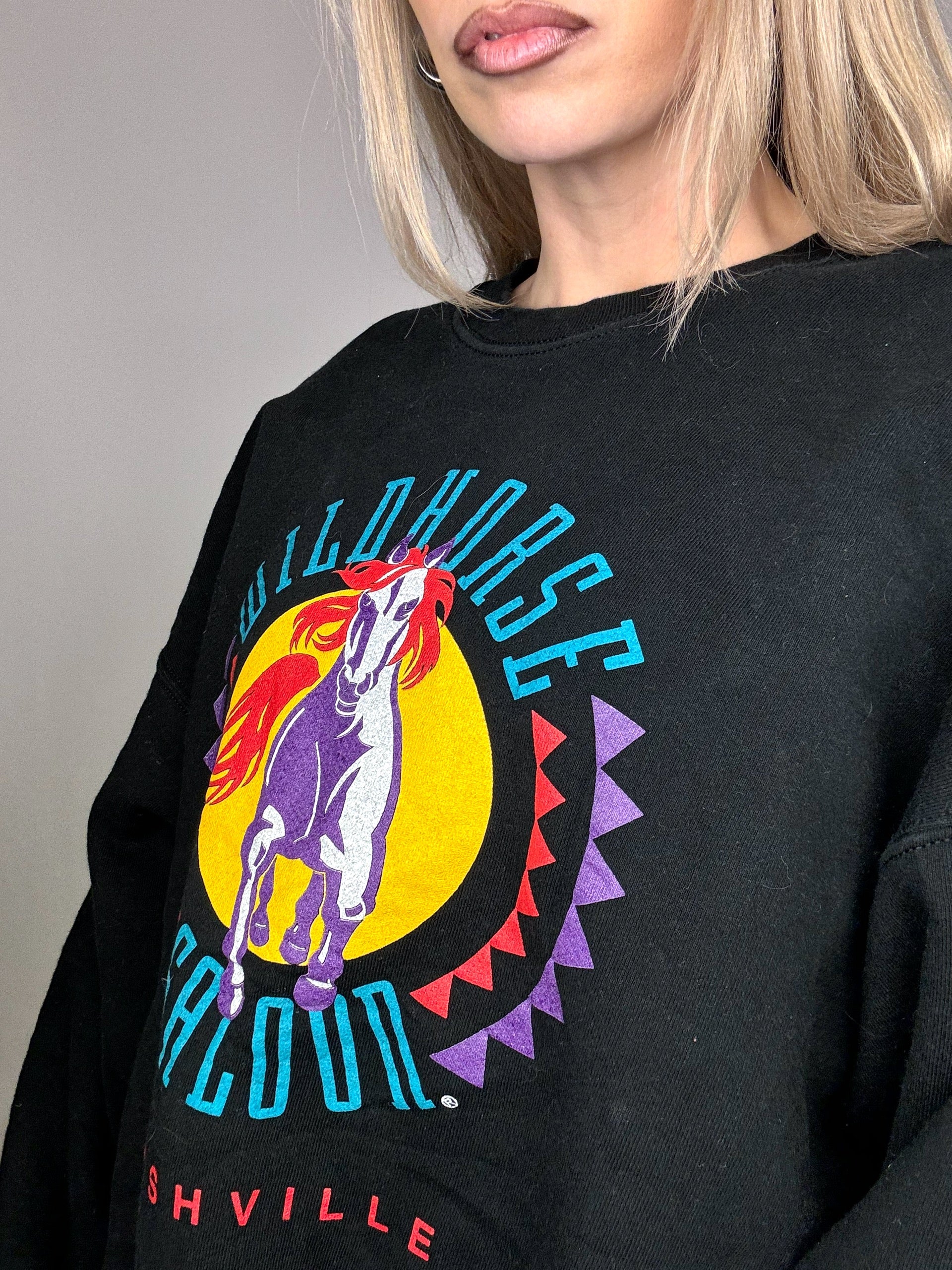 Black round neck sweatshirt WILDHORSE SALOON L/XL vintage