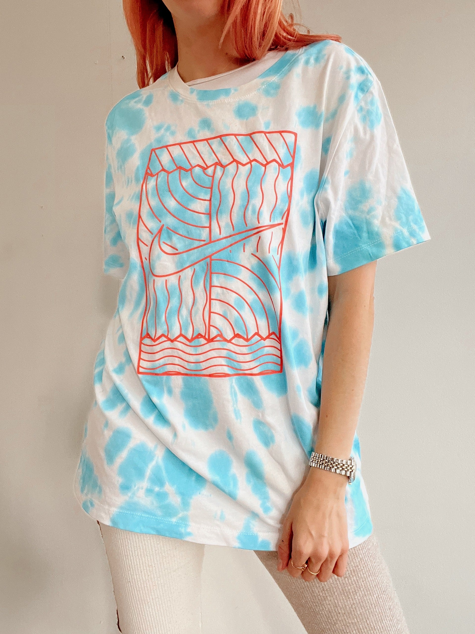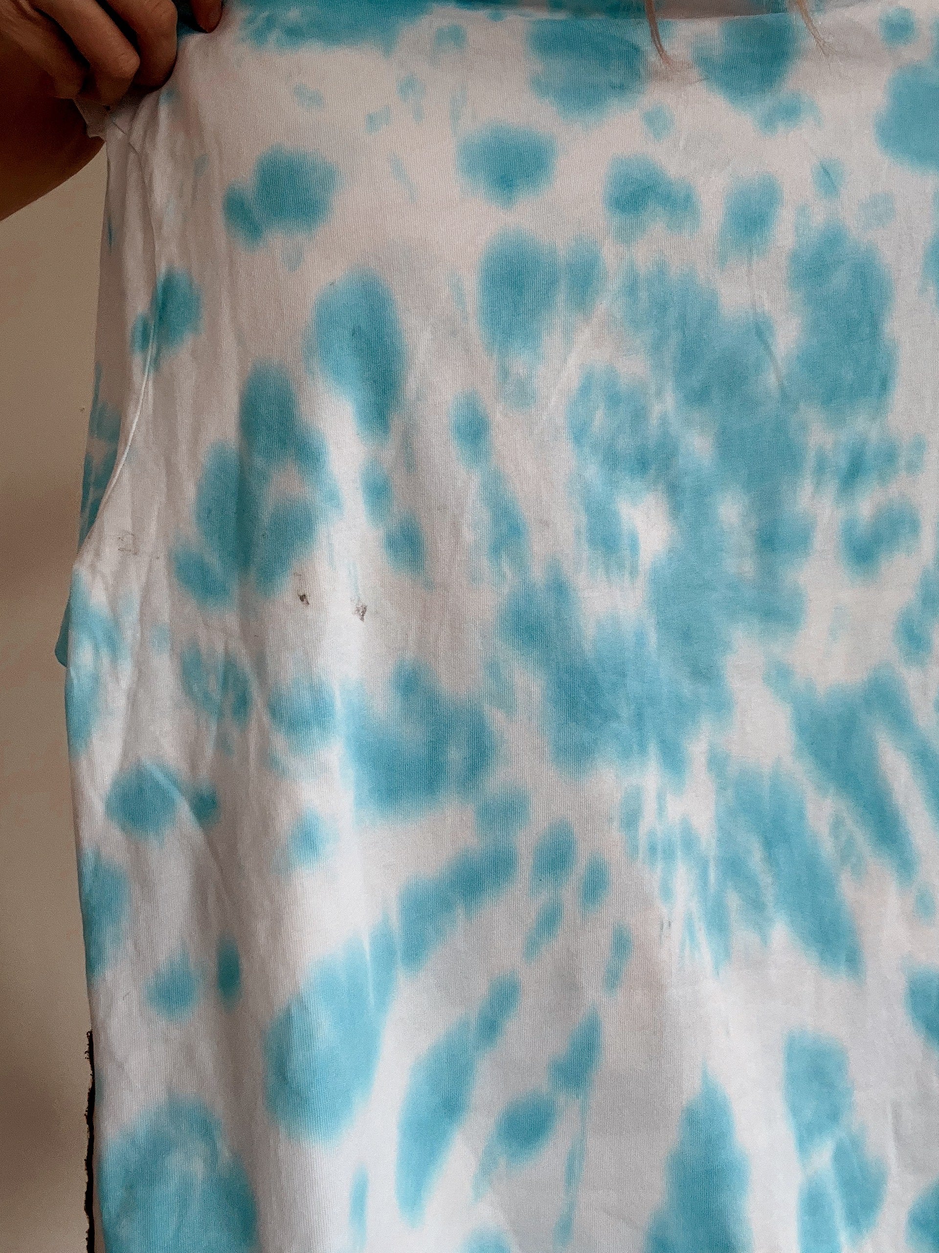 Good condition, but the item may contain small stains because all tie and dye products have been upcycled to camouflage a small stain so as not to throw away the outfit.